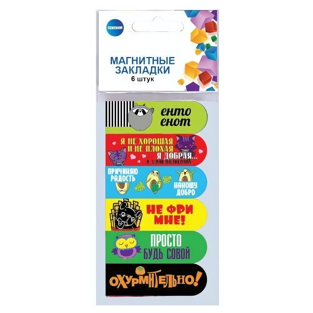 Набор из 6 магнитных закладок с мотивирующими надписями станет вашим надежным спутником в чтении и планировании. Яркие дизайны с забавными иллюстрациями поднимают настроение и помогают быстро находить нужные страницы.