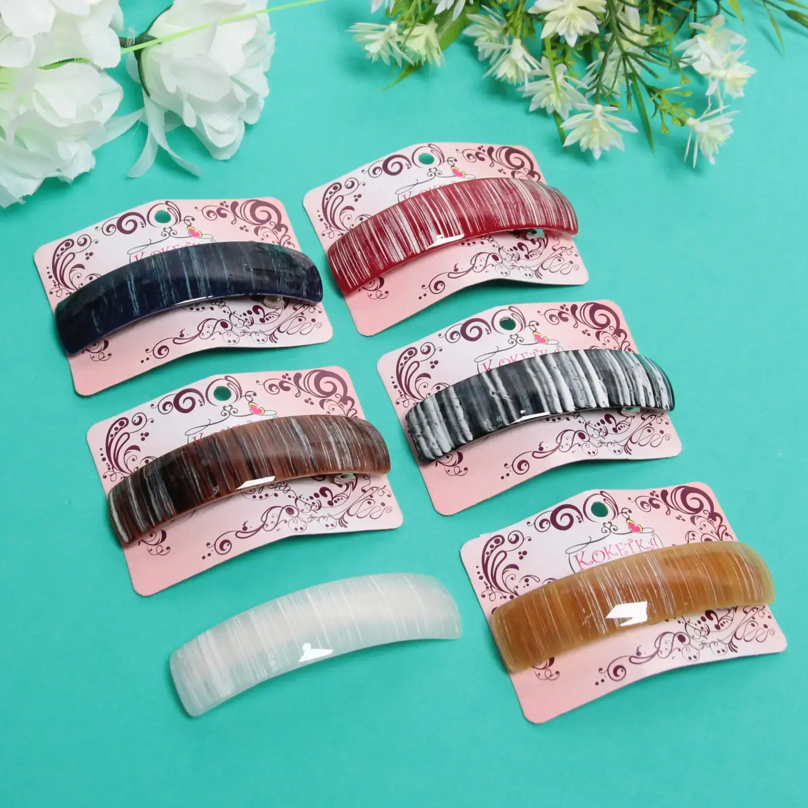 Почему стоит выбрать именно эту заколку? Во-первых, она выполнена из качественных материалов — пластика и металла, что обеспечивает долговечность и надежность. Во-вторых, заколка представлена в шести различных цветах: черном, прозрачном, красном, коричневом, темно-синем и белом, что позволяет выбрать идеальный вариант под любой наряд. В-третьих, её размеры 9*2,5 см делают её компактной и удобной для хранения в сумочке.
