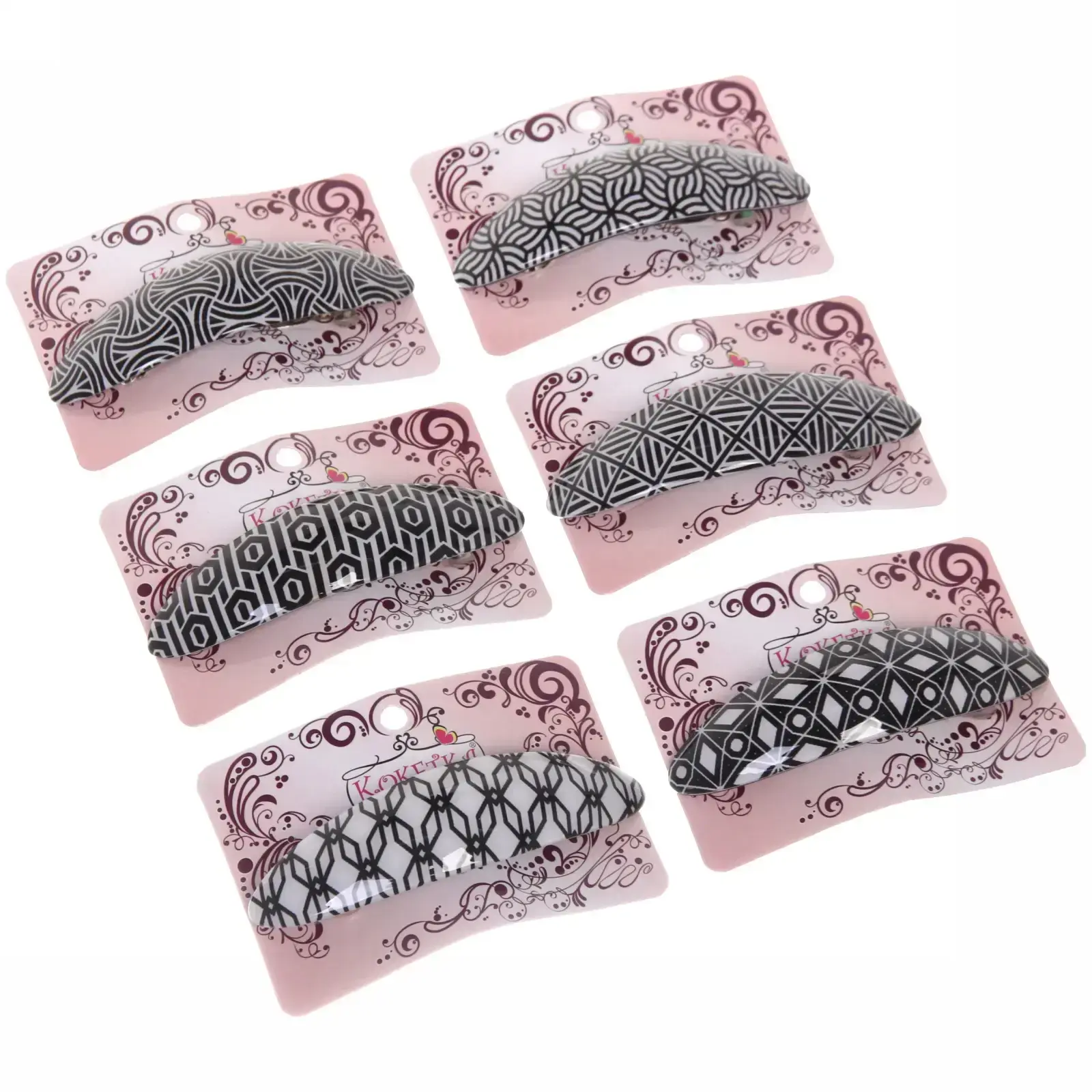 Эта заколка идеально подходит для всех типов волос и может использоваться как в повседневной жизни, так и на торжественных мероприятиях. Благодаря своей овальной форме и гладким краям, она не только надежно фиксирует волосы, но и не повреждает их. Заколка доступна в шести стильных цветах, что позволяет выбрать идеальный вариант под ваш наряд.