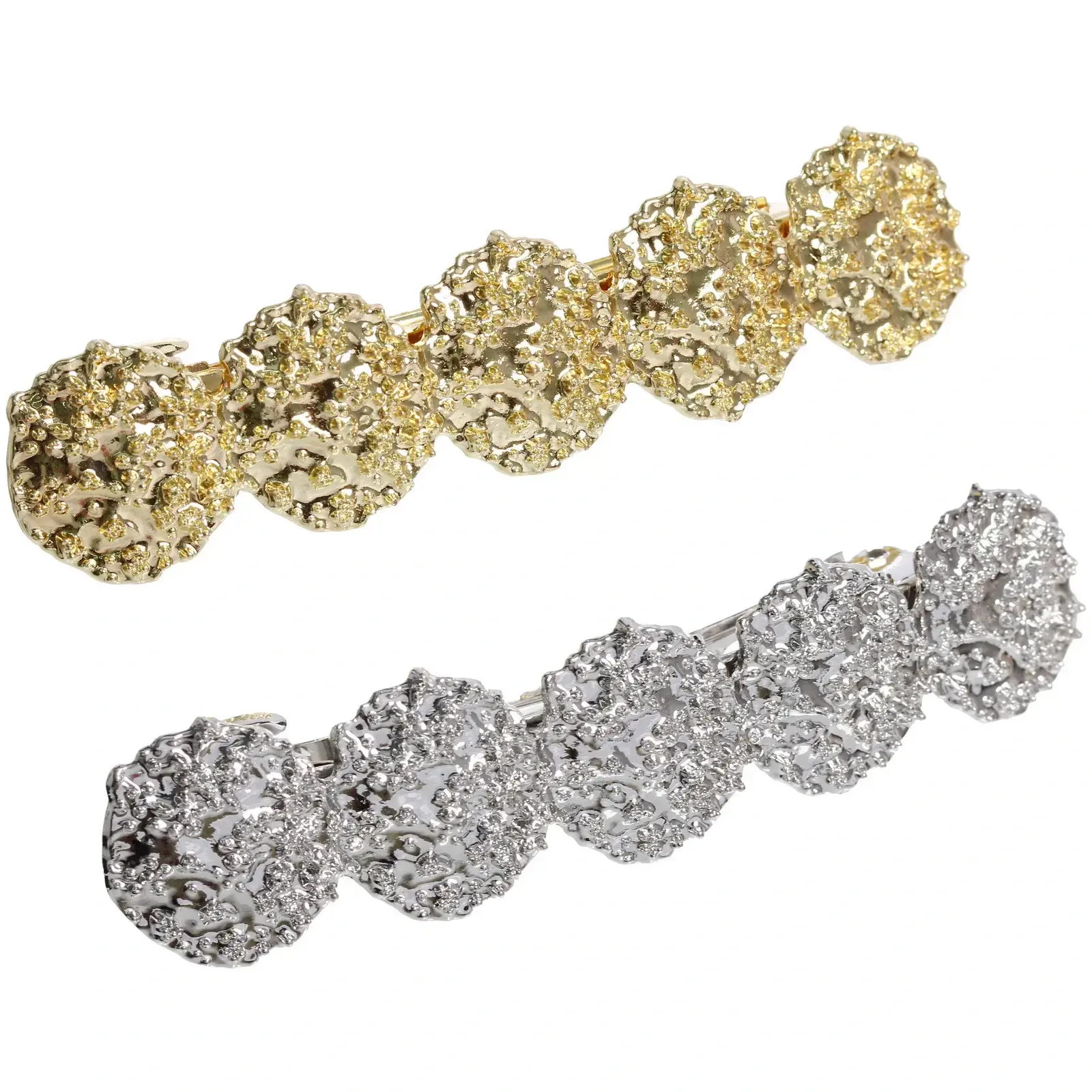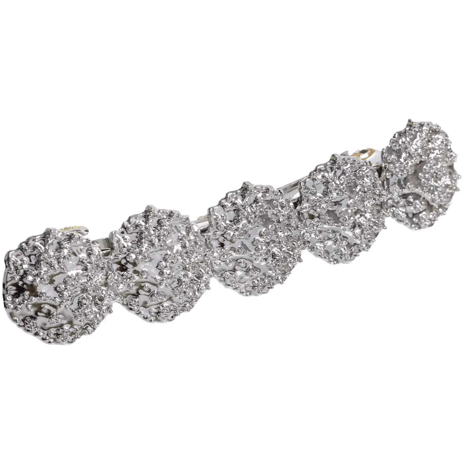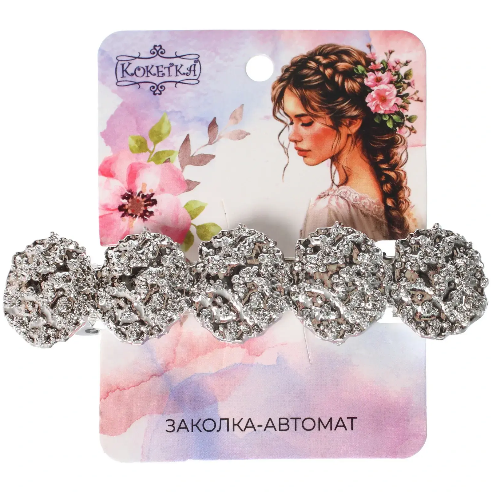 Благодаря качественному металлическому исполнению, заколка сохранит свой презентабельный вид надолго. Глянцевая поверхность элементов создает дополнительный блеск вашей прическе.