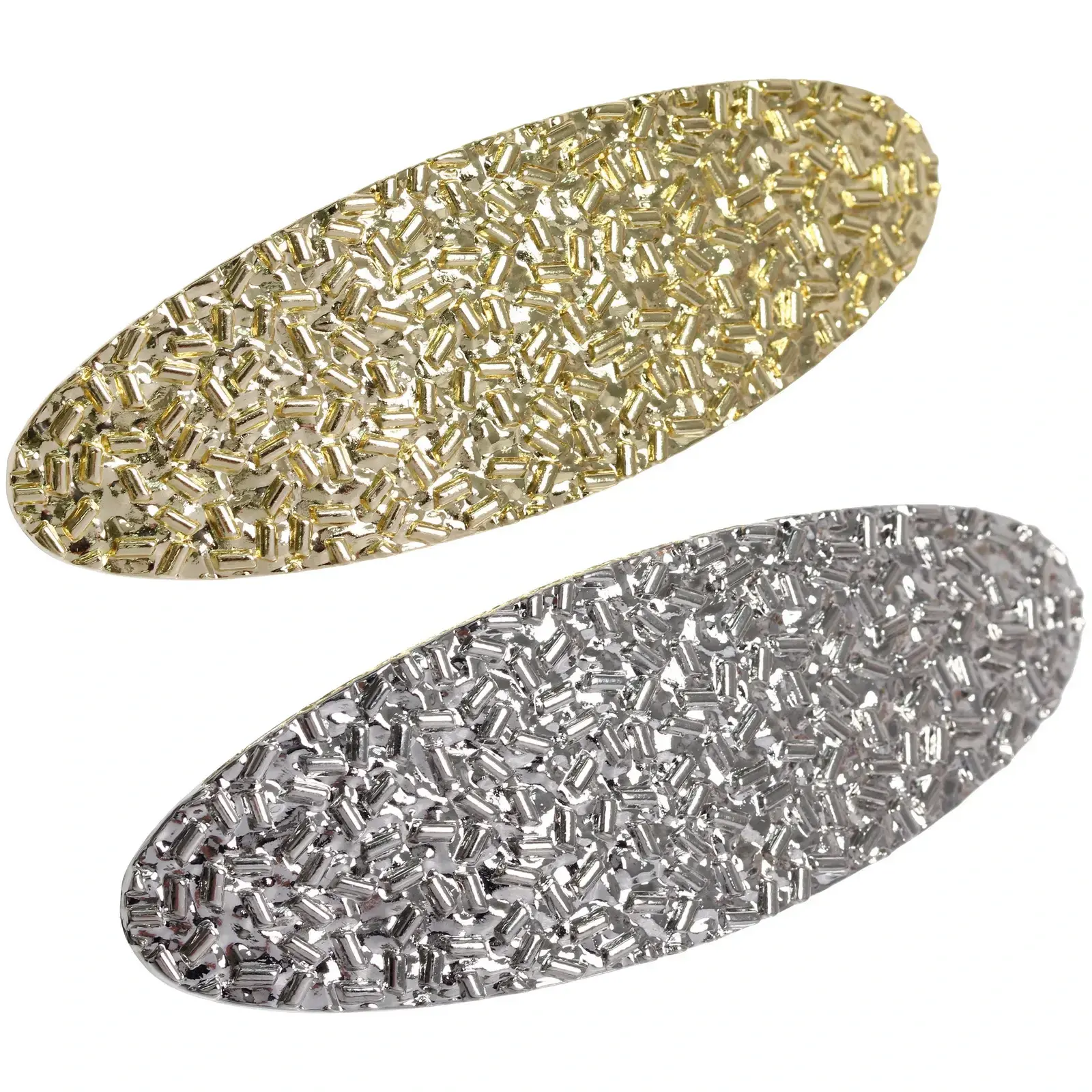 Заколка-автомат для волос 'AKS - DesignPRO', овал, цвет микс золото/хром, 1 штука, металл, 8*3см