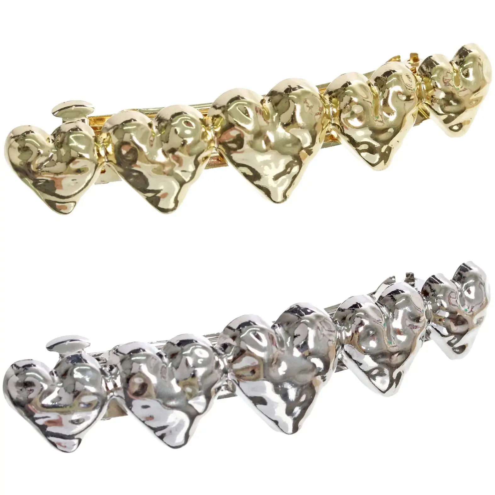 Заколка-автомат 'AKS - DesignPRO' — это стильный аксессуар, который не только надежно зафиксирует вашу прическу, но и добавит нотку романтики благодаря декоративным сердечкам.