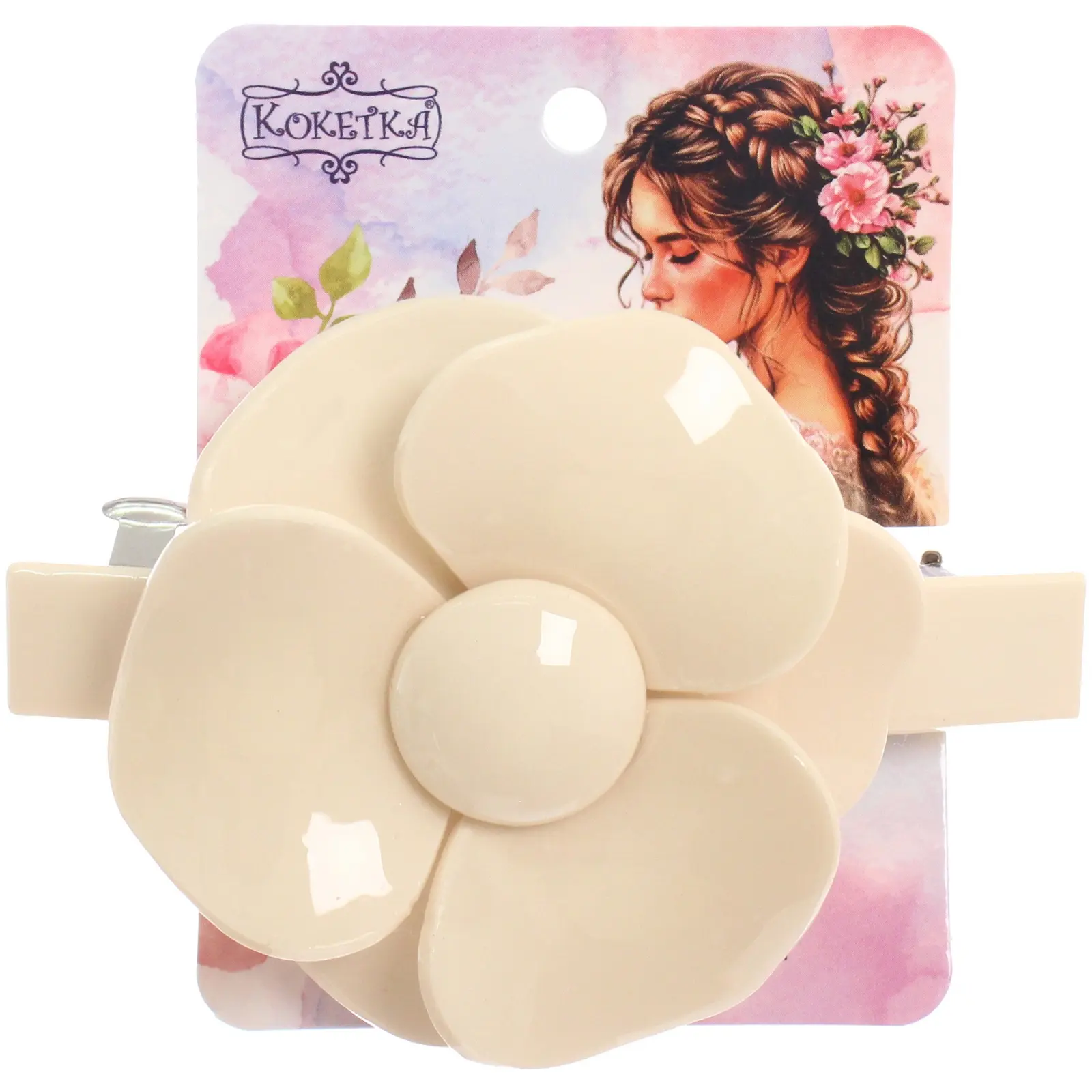 Заколка-автомат 'AKS-EMPIRE' цвет айвори 8.5*6.5см пластик/металл