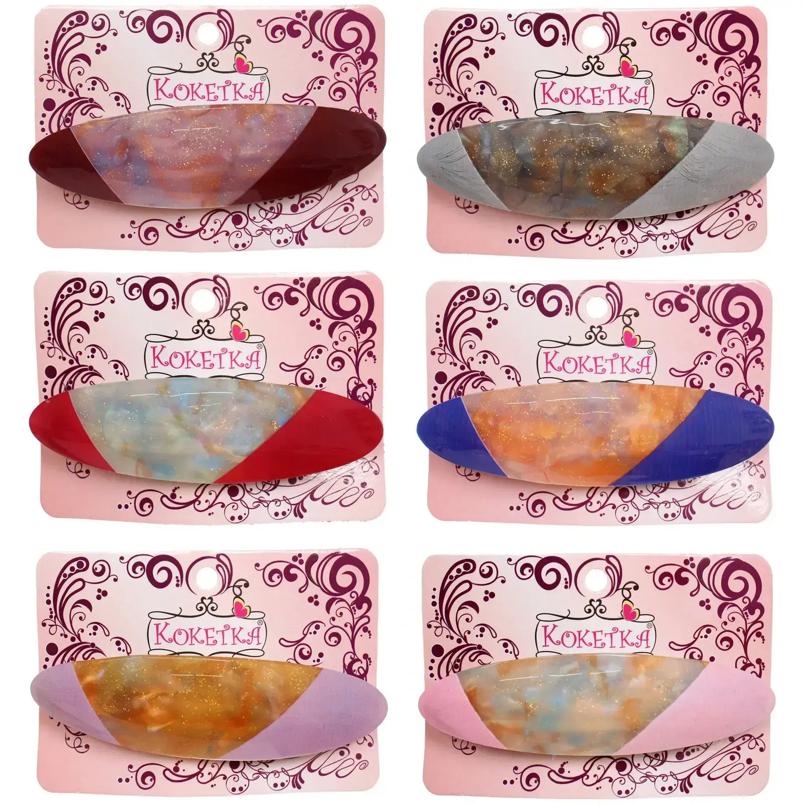 Заколка имеет размеры 9х2,7 см и представлена в миксе из 5 цветов: красного, серого, синего, розового и оранжевого, выбор цвета происходит случайным образом. Упаковка выполнена в стильном дизайне с надписью «Кокетка», что подчеркивает её женственный и элегантный стиль. Заколка-автомат «ЭКЛЕР» — это идеальный выбор для тех, кто ценит комфорт, качество и стиль в каждом элементе своего образа.