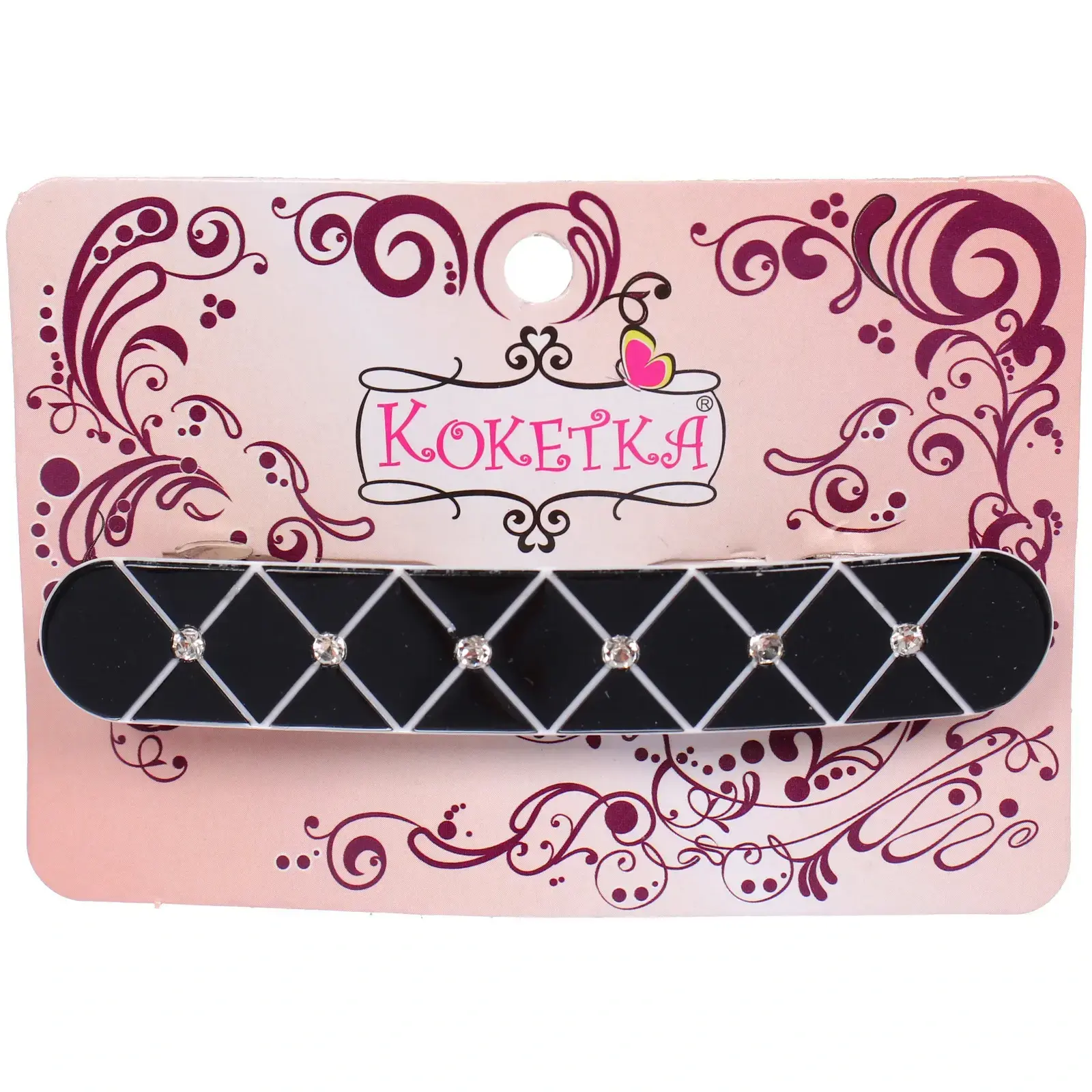 Заколка «ЭКЛЕР» выделяется среди других аксессуаров благодаря своему уникальному дизайну. Ромбовидный узор и прозрачные стразы придают ей элегантный вид, который дополнит любой наряд. Изготовленная из качественных материалов — металла и пластика, она гарантирует долговечность и надежность в использовании.