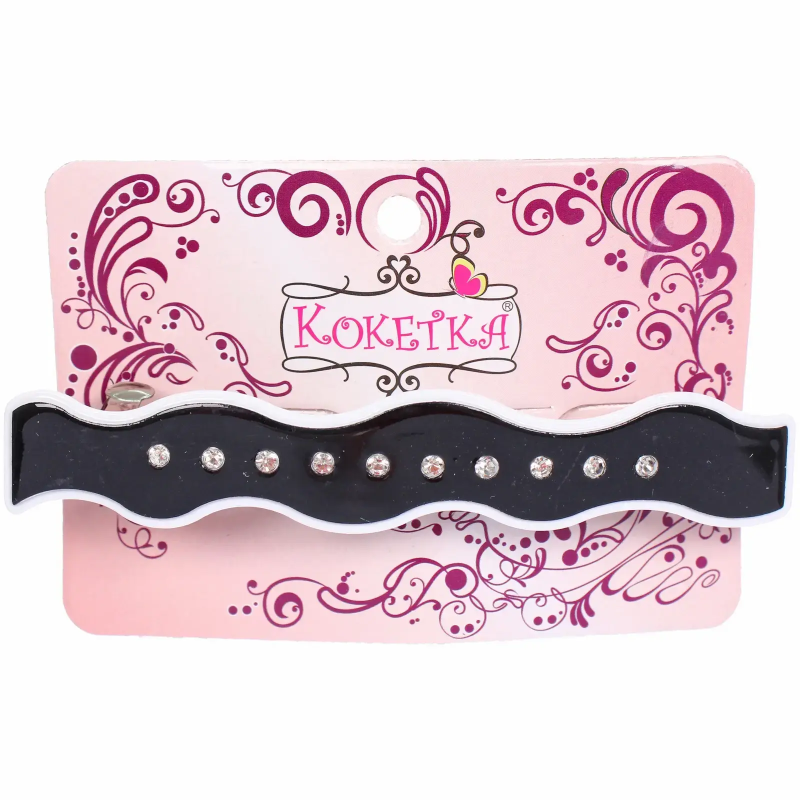 Размер заколки составляет 9 см в длину и 1,5 см в ширину, что делает её компактной и удобной для хранения. Черный цвет и гладкая поверхность позволяют использовать её в любых сочетаниях, а упаковка в розовом цвете с декоративными элементами делает её отличным подарком для близких. Заколка-автомат «ЭКЛЕР» — это ваш надежный помощник в создании стильных образов!