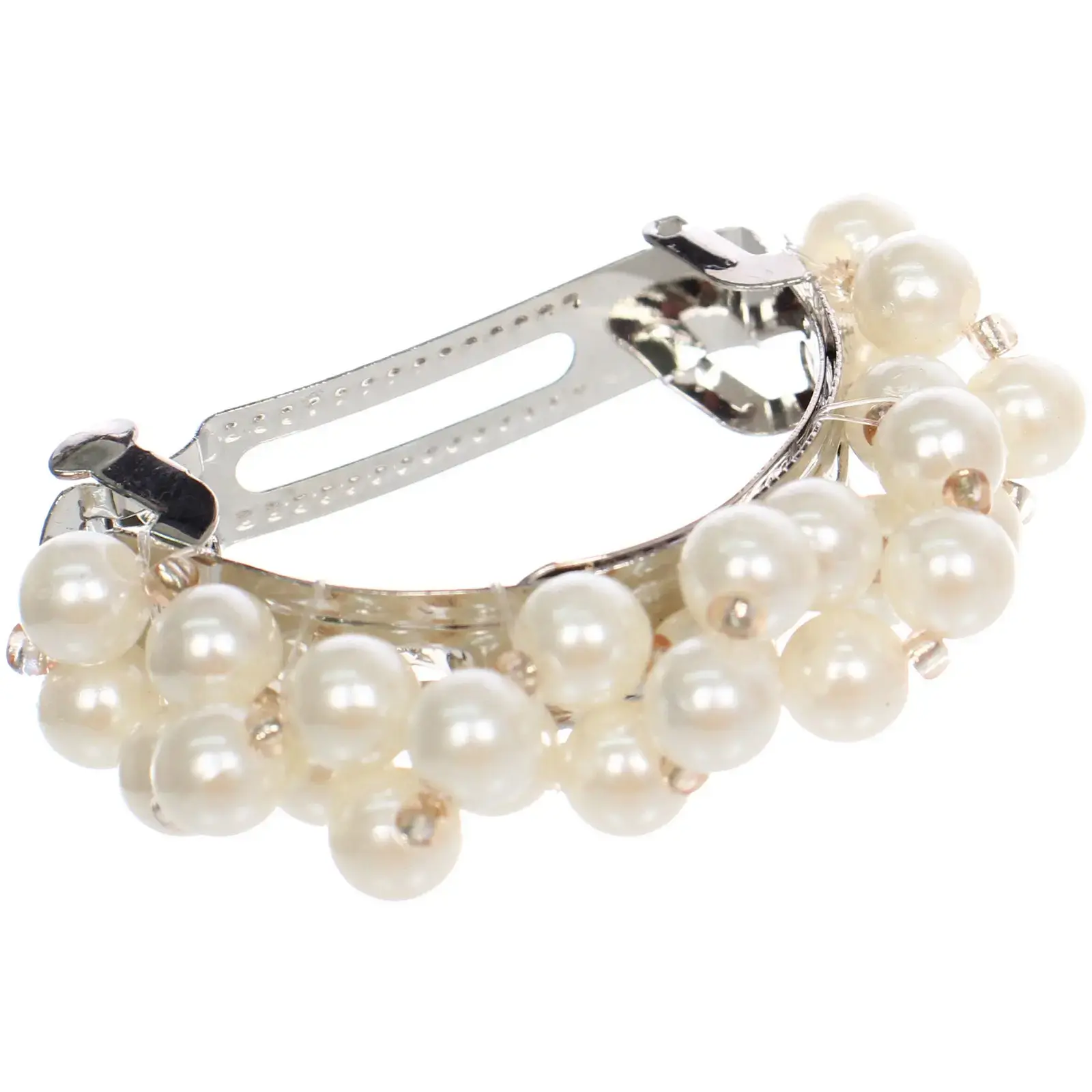 Заколка-автомат «ЭСТРА» в цвете айвори — это не просто аксессуар, а настоящая находка для создания стильных и элегантных причесок. Благодаря своему изысканному дизайну и качественным материалам, она добавит нотку утонченности в ваш образ. Металлическая основа обеспечивает надежное крепление, а перламутровые бусины придают заколке особый шарм.