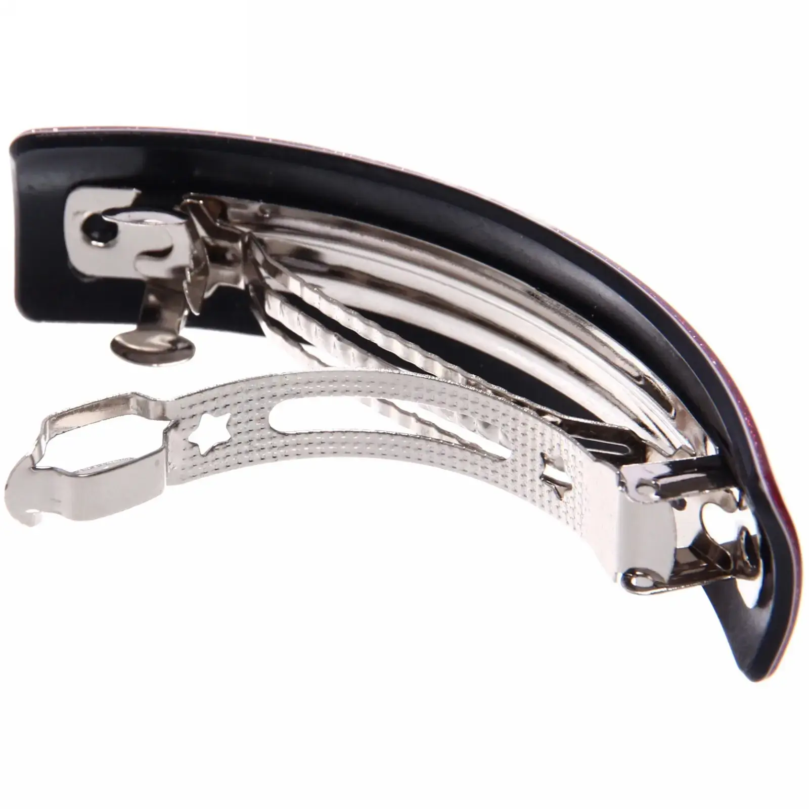 Размер заколки составляет 10х2 см, что делает её удобной для использования на волосах средней длины. Микс из 6 цветов — красного, бордового, фиолетового, серого, синего и зеленого — позволяет вам экспериментировать с образом и подчеркивать свою индивидуальность. Заколка подходит для всех типов волос и станет отличным дополнением к вашему арсеналу аксессуаров для волос.