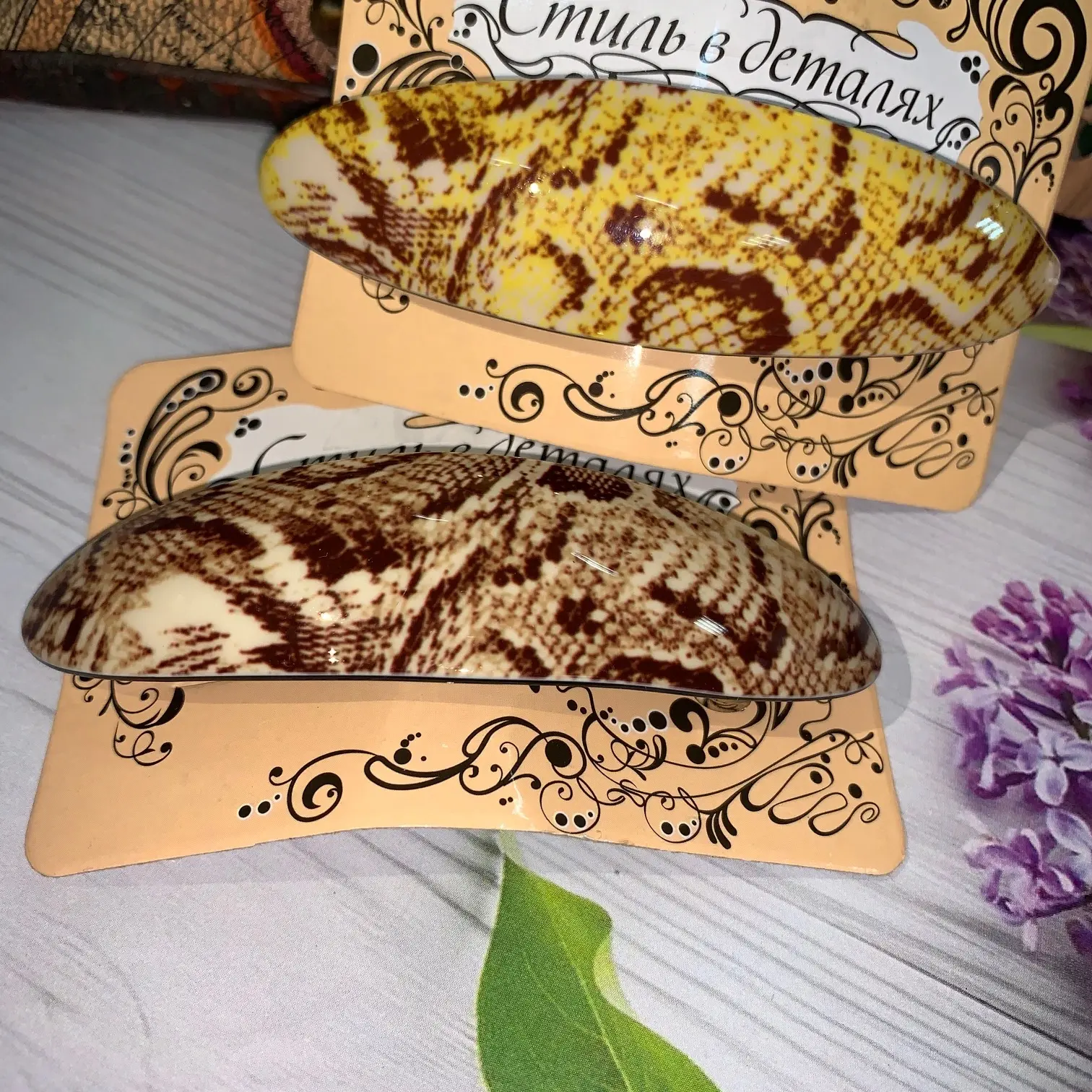 Дизайн с имитацией кожи питона добавит эксклюзивности любой прическе. Удобная плоская форма не создает объем под головными уборами, а закругленные края безопасны для кожи.
