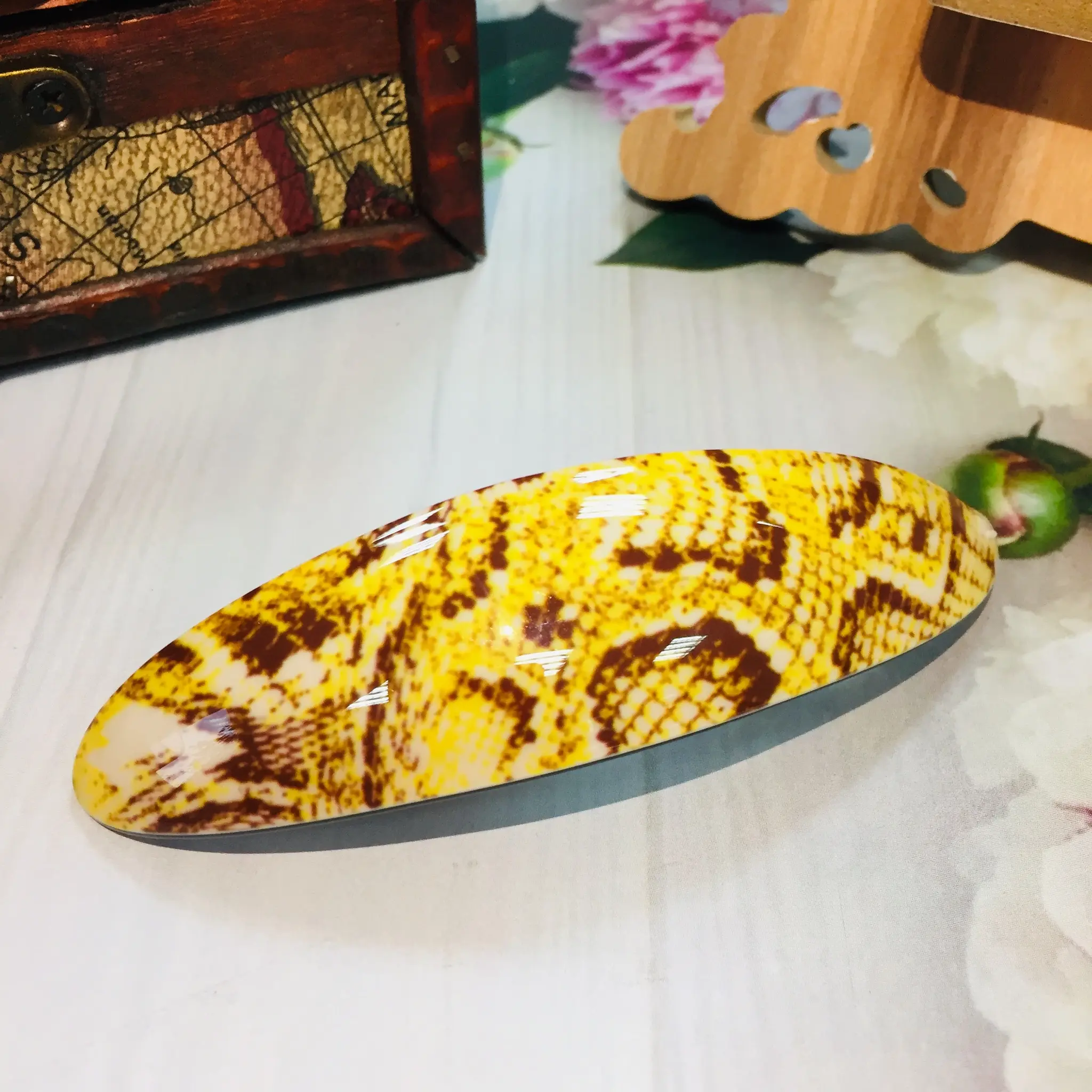 Заколка-автомат с эффектным дизайном и надежным механизмом — идеальный аксессуар для повседневных укладок и вечерних образов. Удобная овальная форма с текстурой рептилии сочетает практичность и модный акцент в деталях.