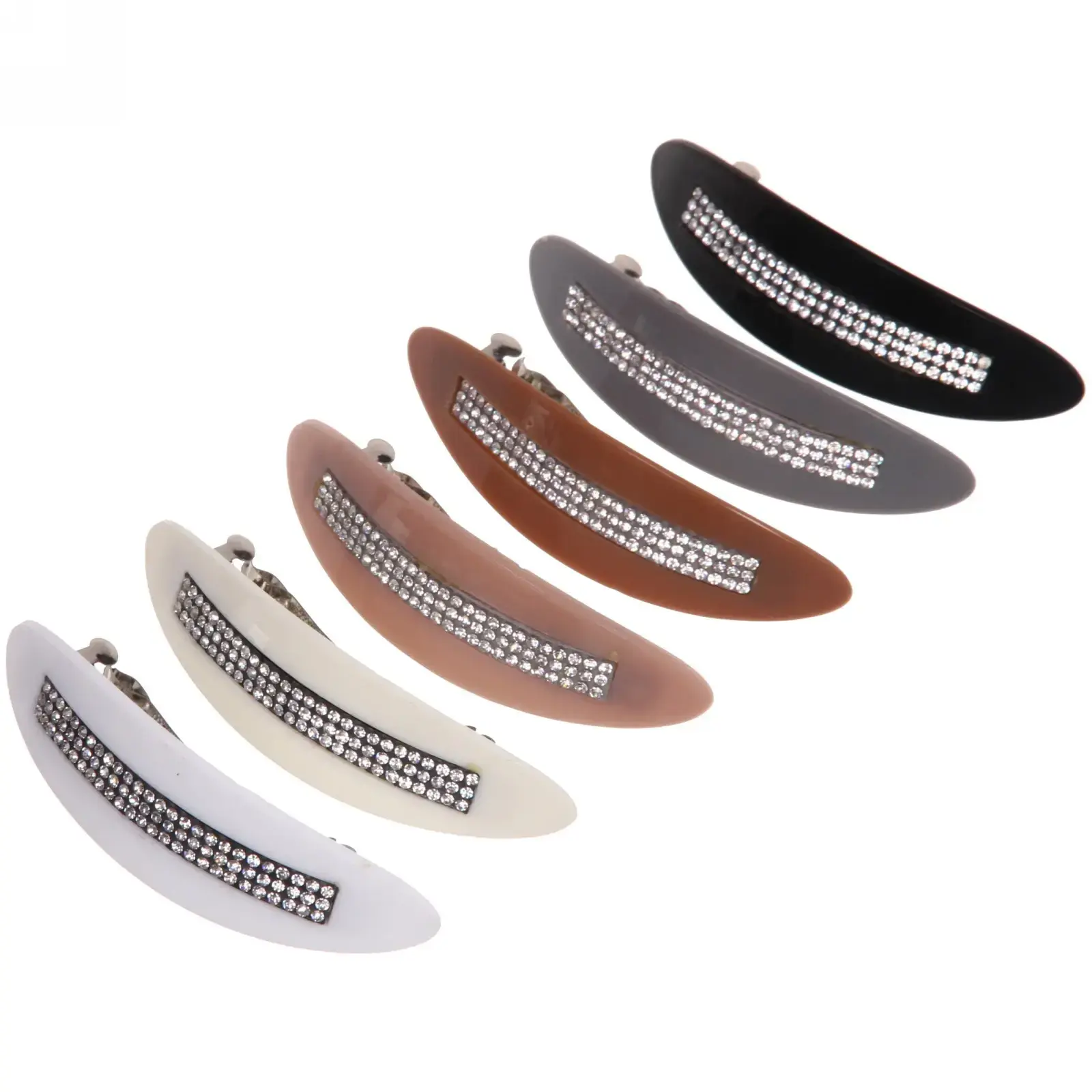 Заколка имеет размеры 10*2,5 см и доступна в шести различных цветах: белом, бежевом, коричневом, сером, черном и прозрачном. Это позволяет выбрать идеальный вариант под любой наряд и настроение. Заколка легко вписывается в любой стиль, будь то повседневный или вечерний.