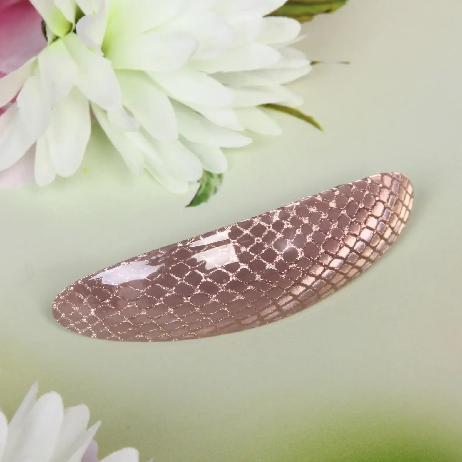 Выбирая заколку «Лали», вы получаете не только стильный аксессуар, но и практичное решение для укладки волос. Гладкая поверхность с текстурой, имитирующей кожу рептилий, придает заколке уникальный вид, а блестящее покрытие добавляет элегантности. Заколка легка в использовании и подходит для создания различных причесок, от простых до более сложных.
