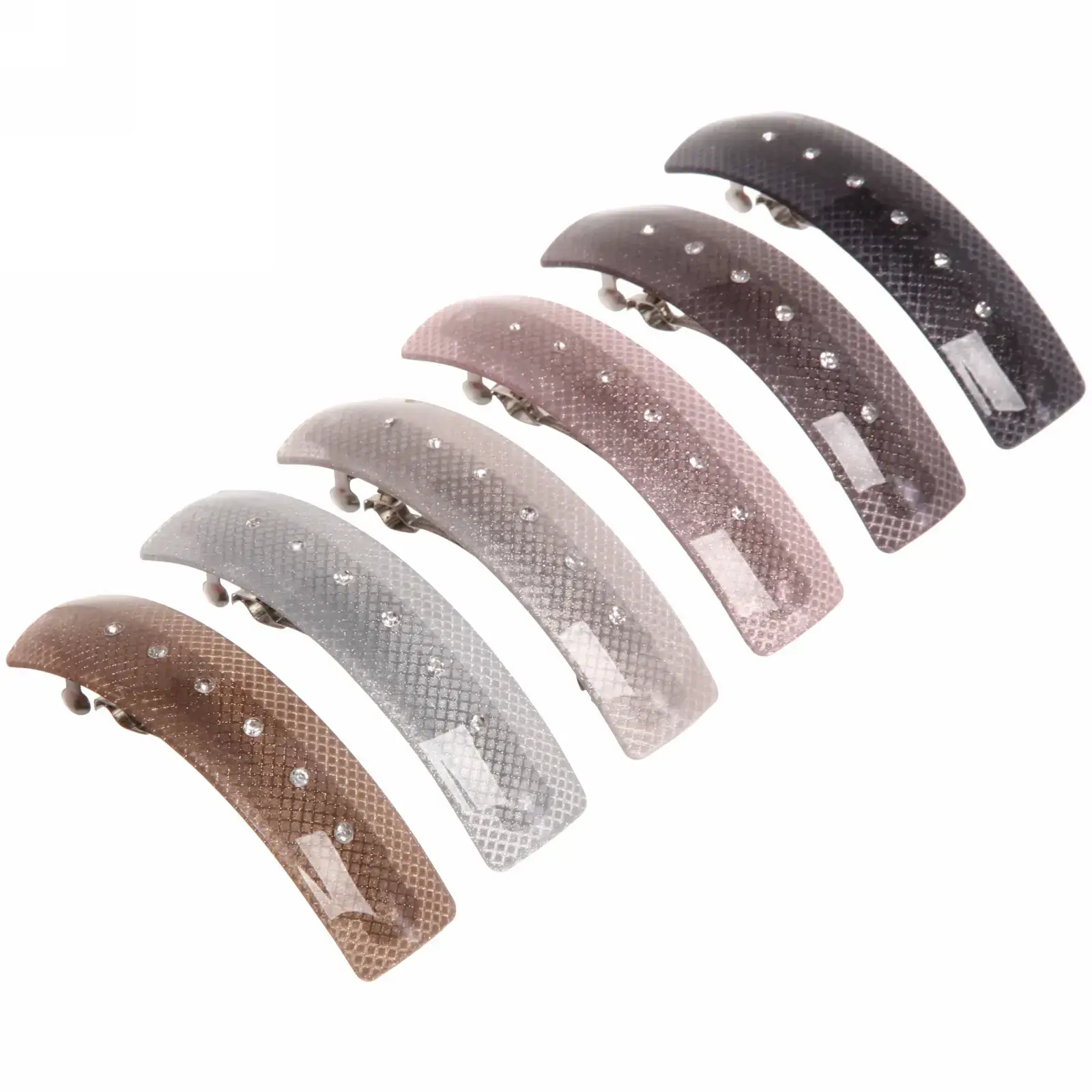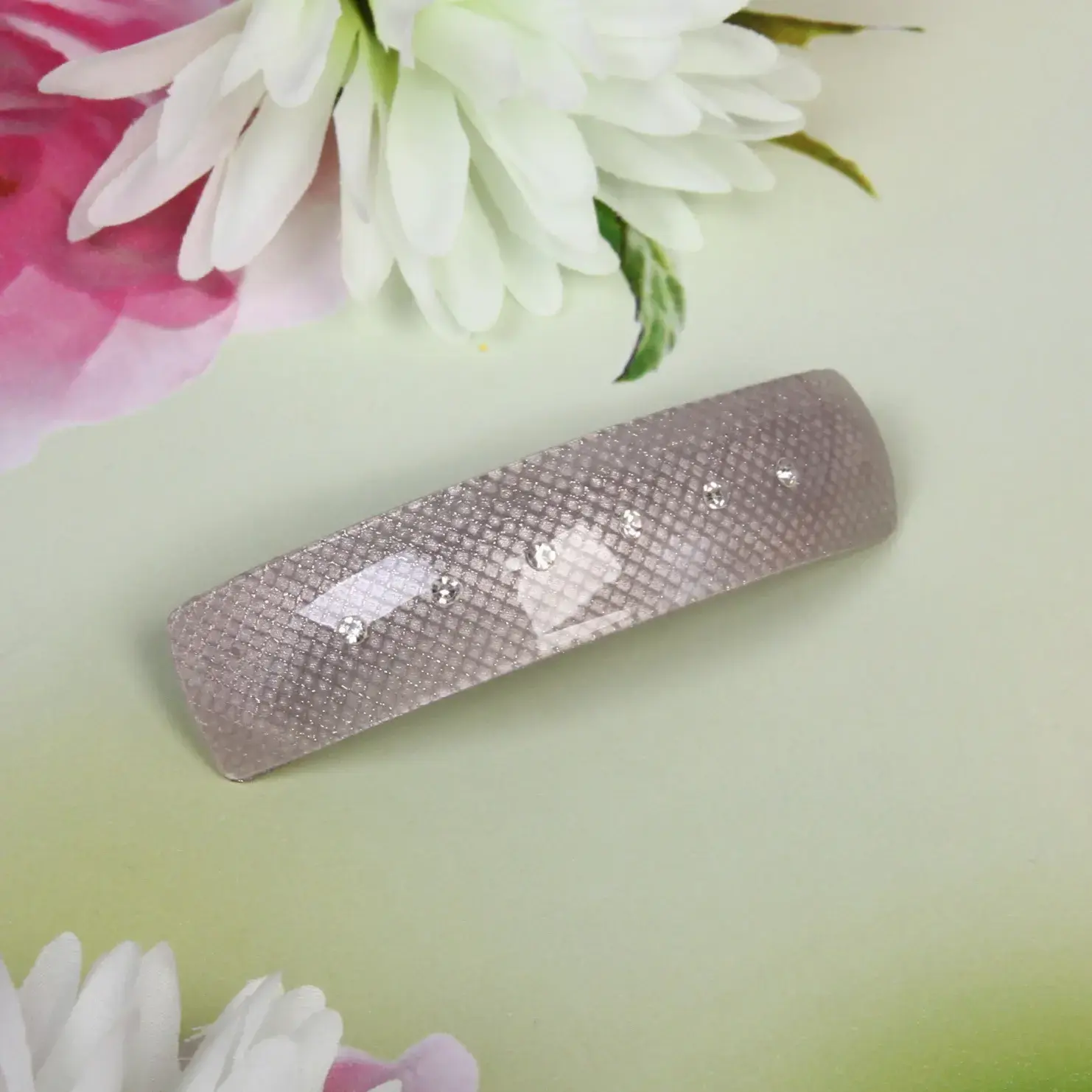 Габариты 10х2.5 см обеспечивают надёжное крепление без выступающих элементов. Внутренние зубцы с насечками предотвращают соскальзывание волос. Сочетание металла в механизме и высококачественного пластика в декор-элементах гарантирует долгий срок службы.