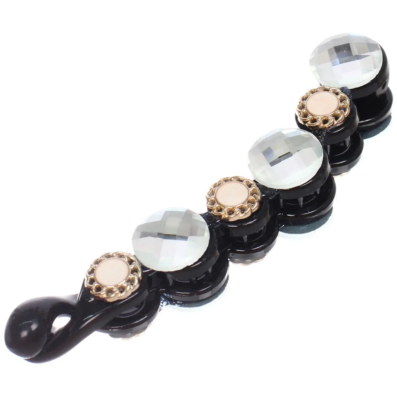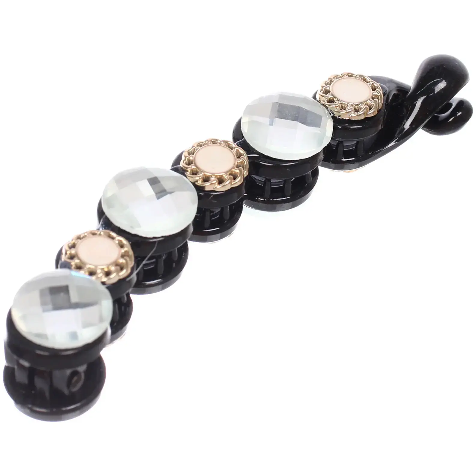 Преимущества заколки «PREMIUM» заключаются в её долговечности и высоком качестве материалов. Изготовленная из прочного пластика, она устойчива к повреждениям и легко очищается. Декор из прозрачных и светло-кремовых камней придает ей уникальный вид, а гладкая поверхность обеспечивает легкость в использовании.