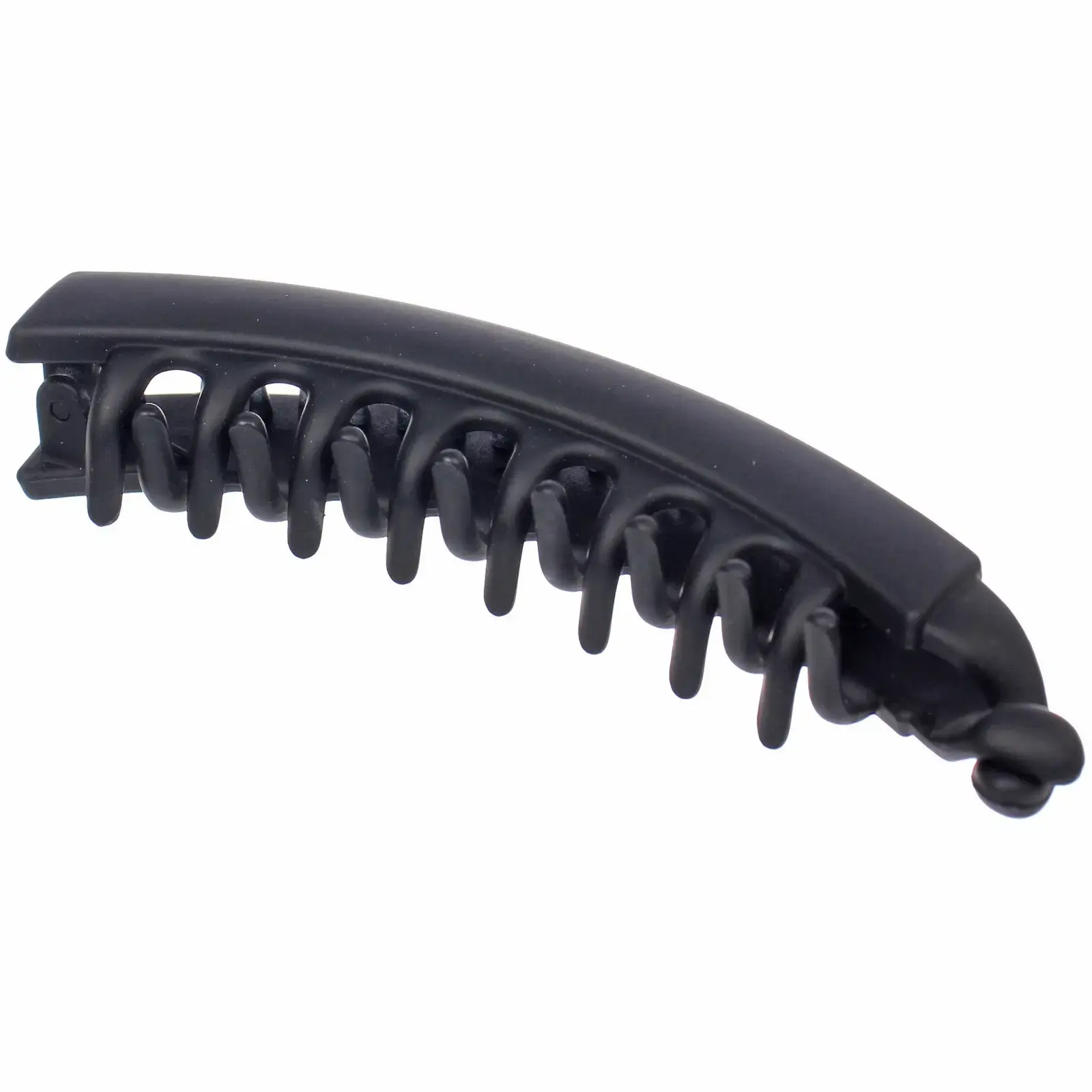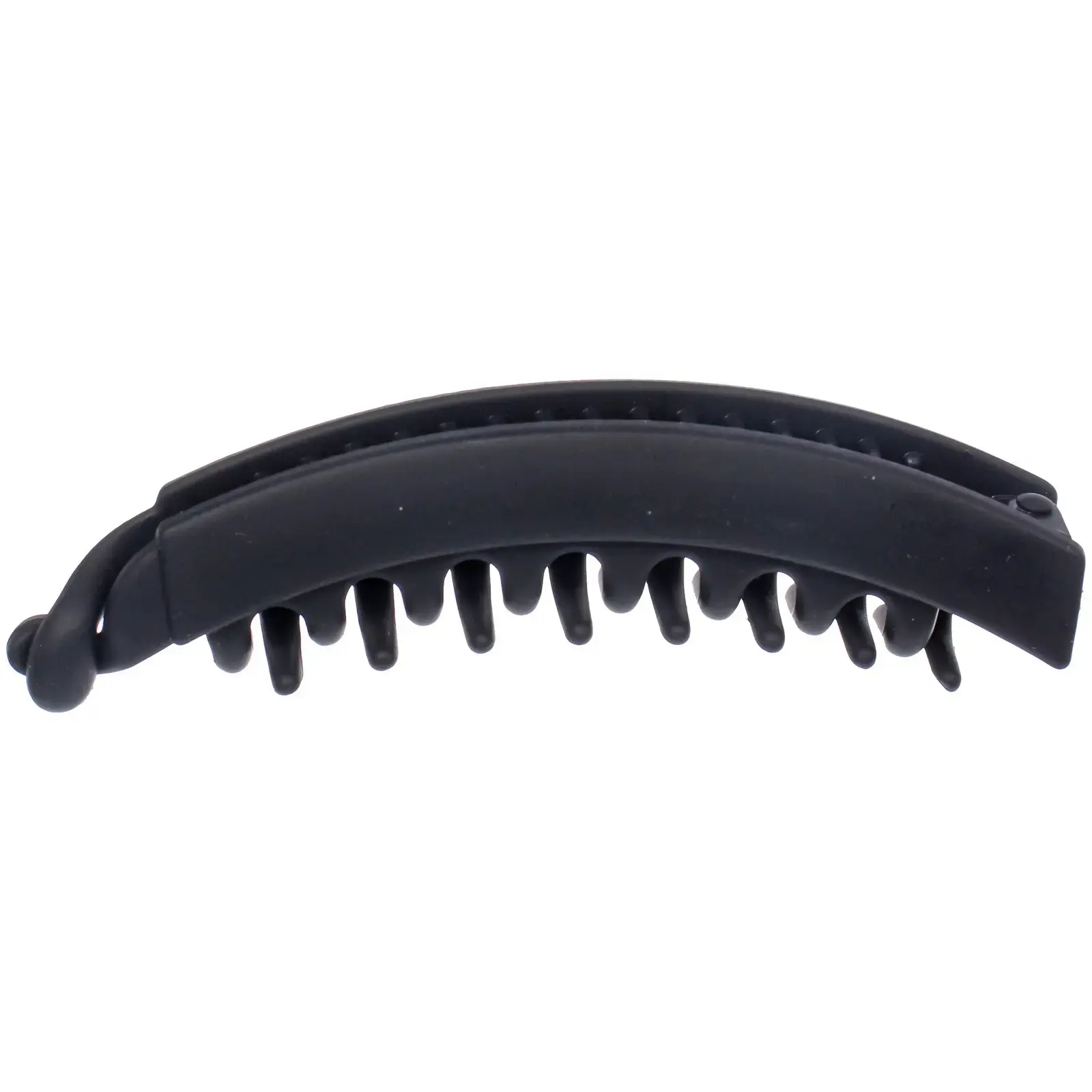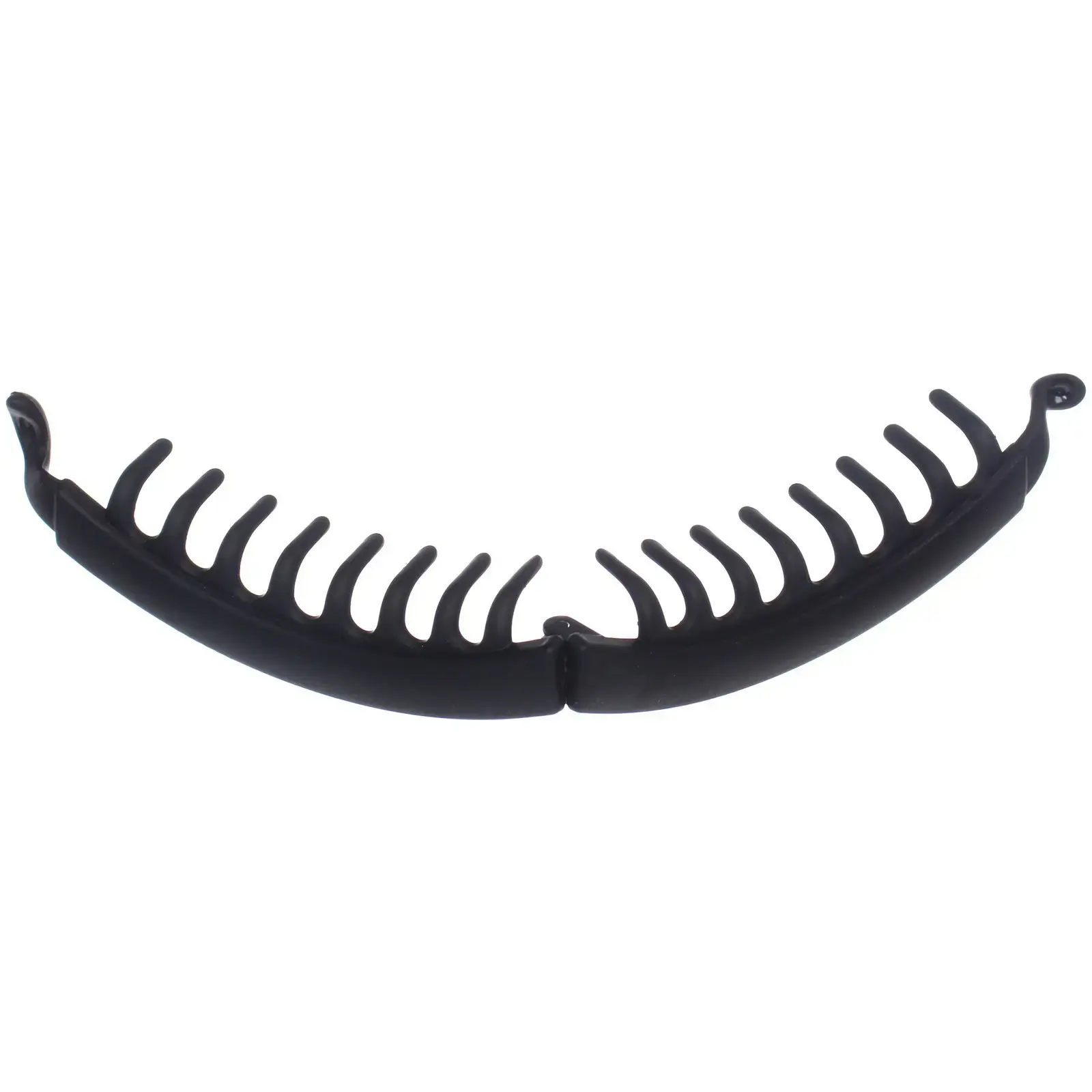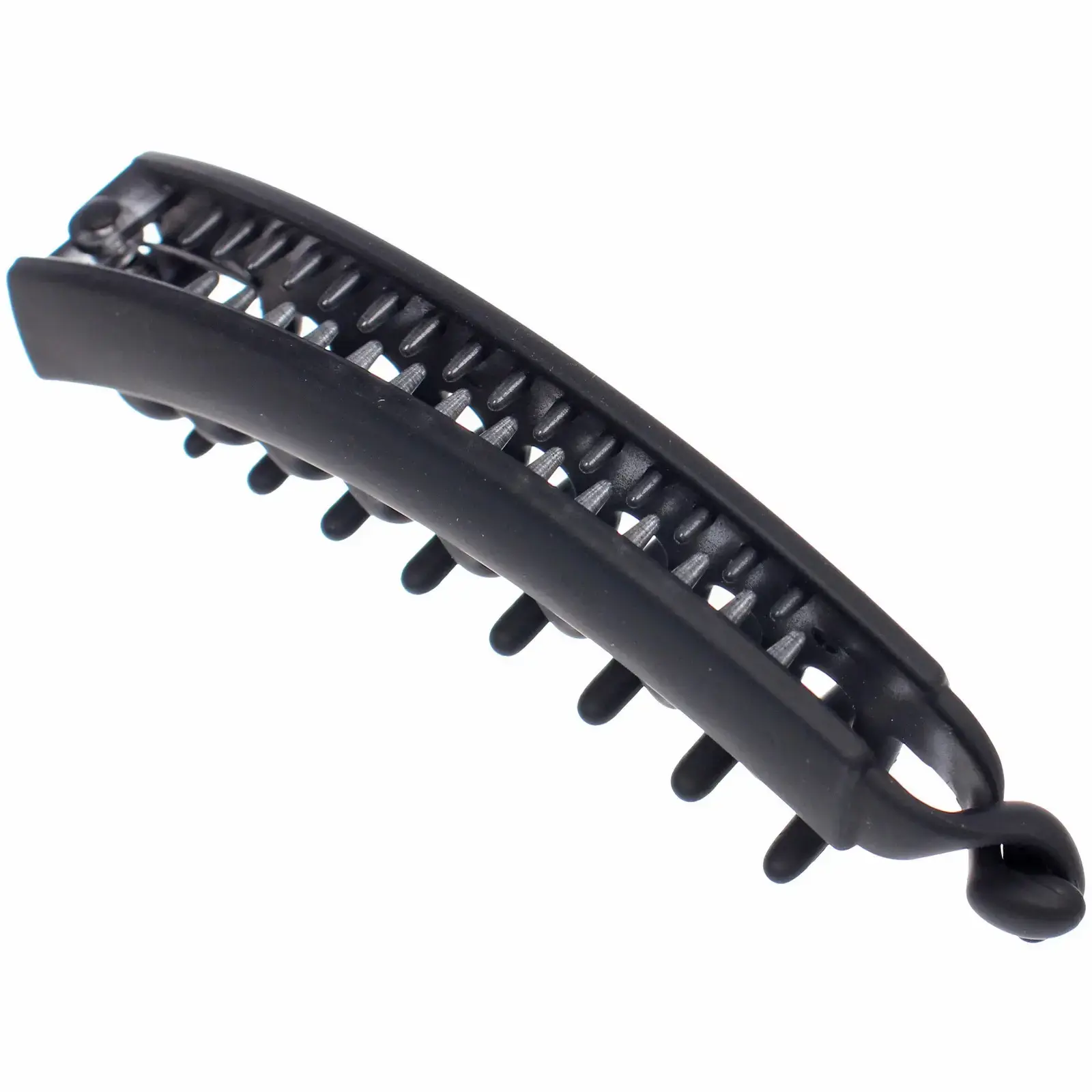 Заколка имеет длину 10 см и выполнена из прочного пластика, что гарантирует ее устойчивость к повреждениям и износу. Благодаря изогнутой форме и зубцам, заколка надежно удерживает волосы на месте, не повреждая их. Она идеально подходит для всех типов волос, будь то тонкие или густые, и станет незаменимым помощником в вашем ежедневном уходе за прической.
