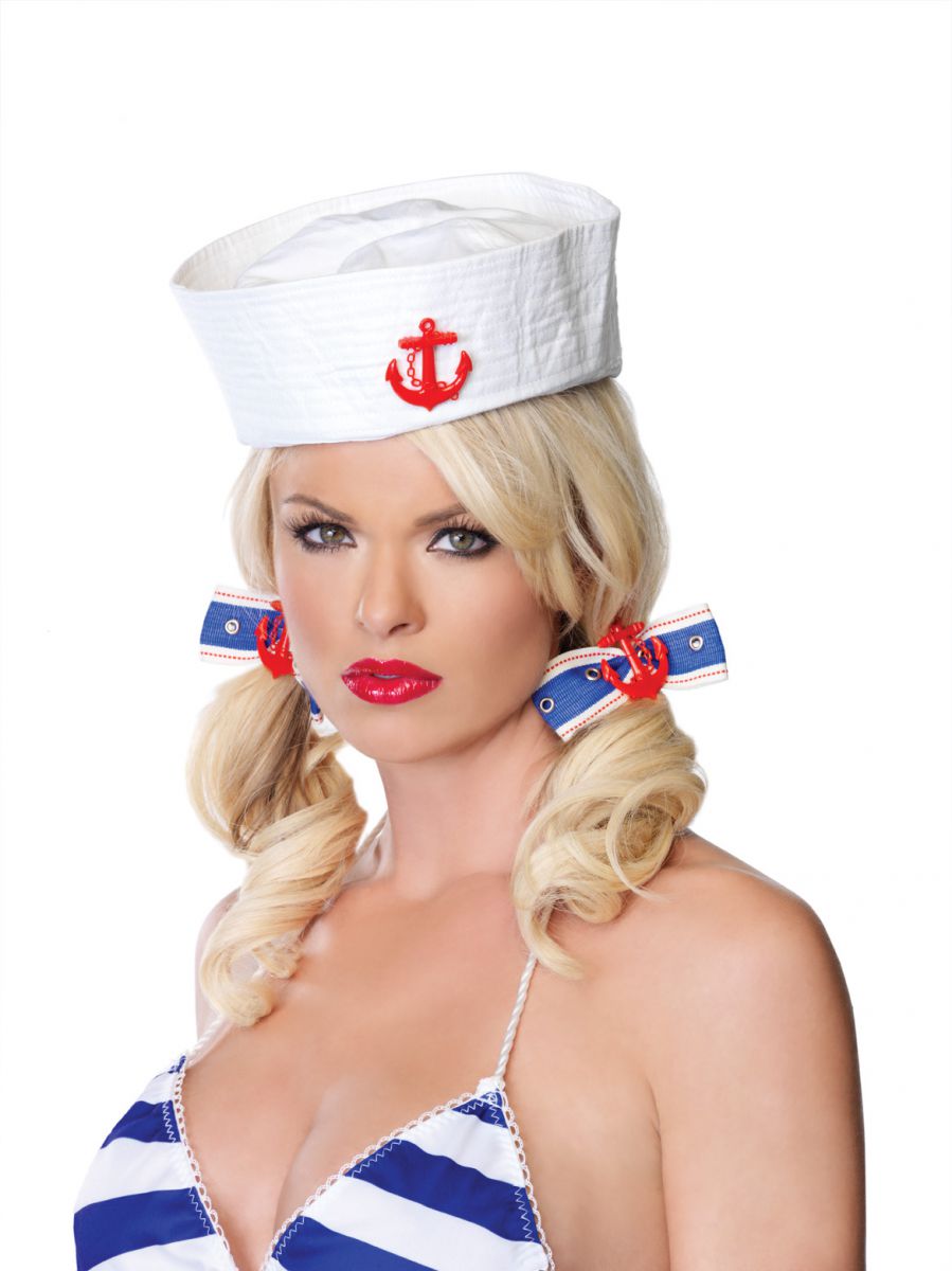 - Яркий дизайн: Заколки выполнены в виде банта из двухцветной ленты – синей с белыми деталями и белой с красной окантовкой. В центре каждого банта расположен объемный декоративный якорь красного цвета.