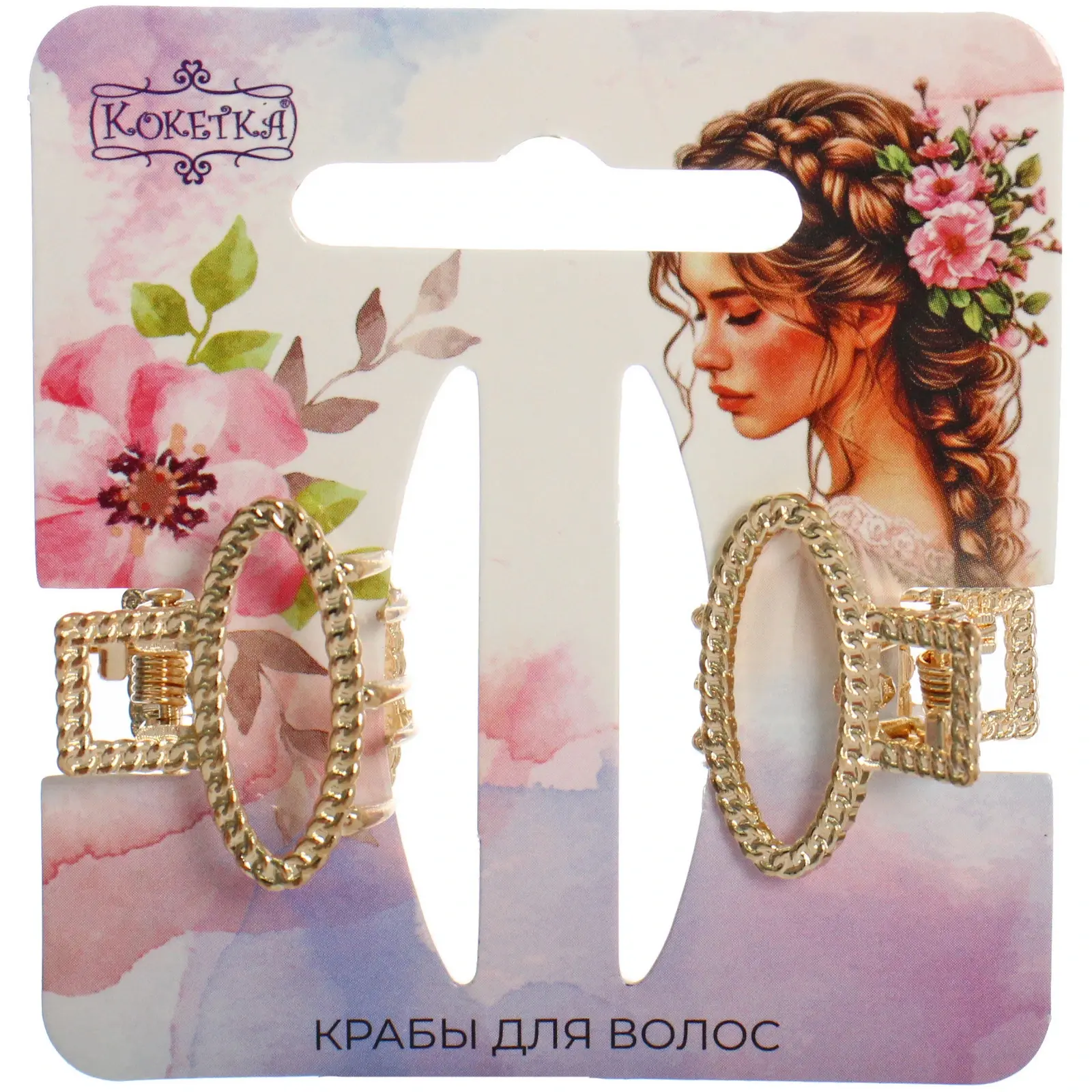 Заколка-краб 'AKS - DesignPRO' овал 2 шт, цвет золото/хром, металл 2.5*2см