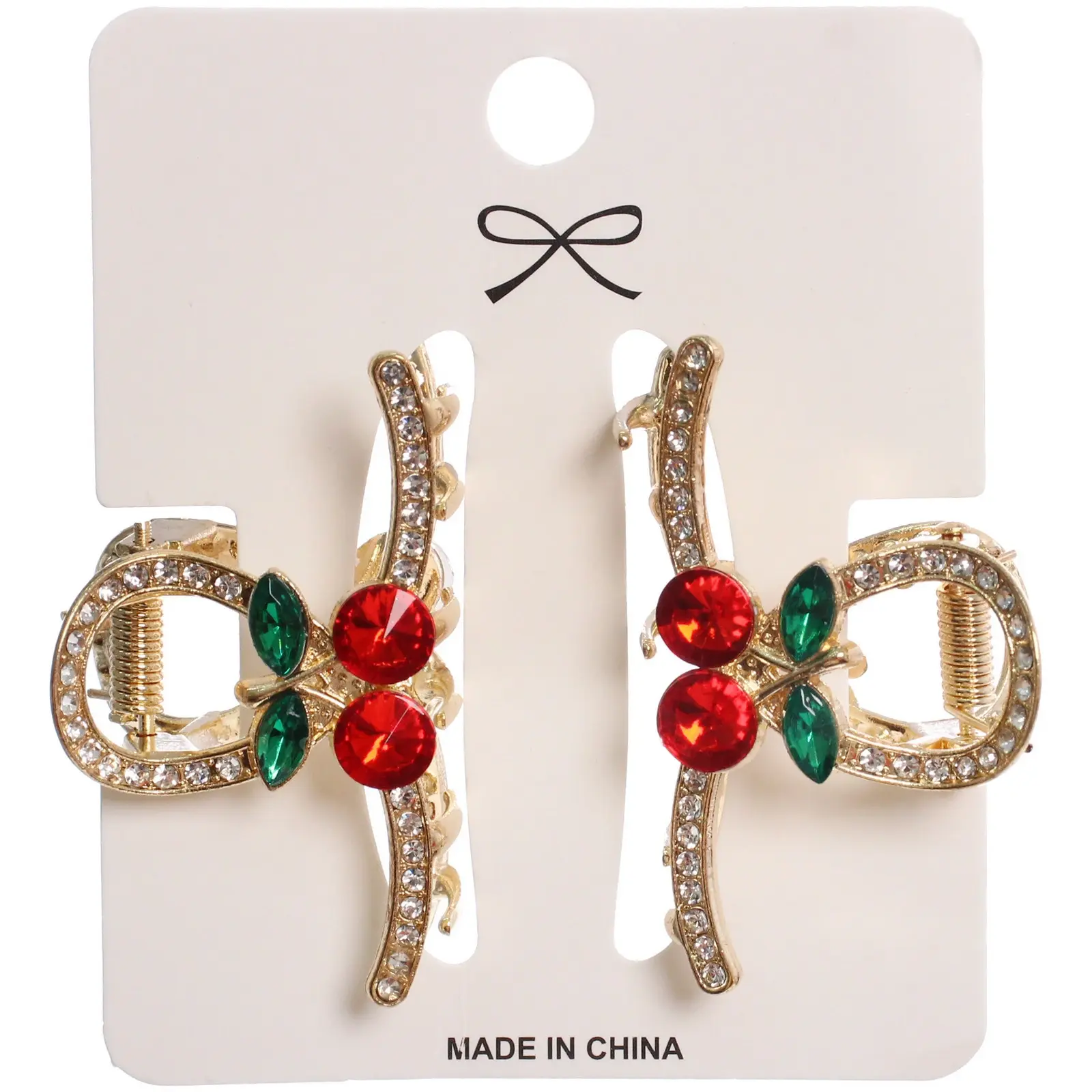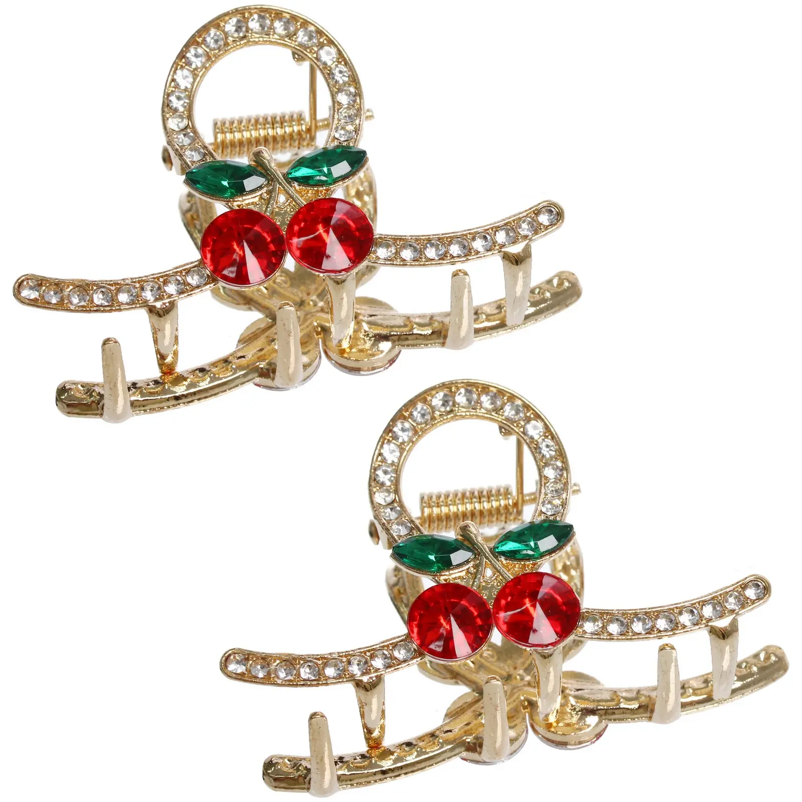 Заколка-краб «AKS - DesignPRO», вишенки, цвет микс золото/хром, набор 2 шт., 5.5*3см, металл