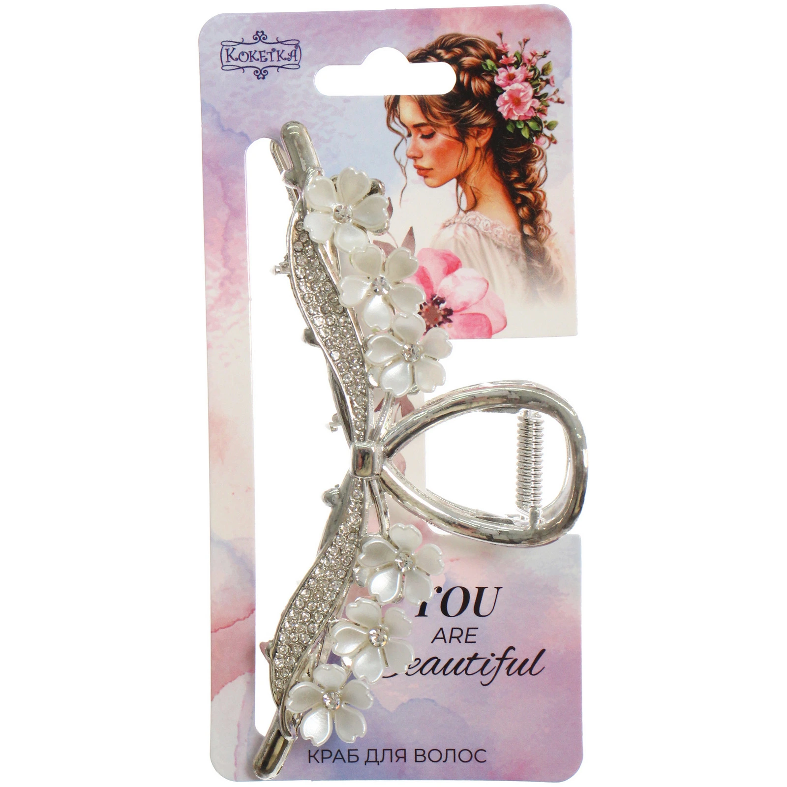 Заколка-краб 'AKS - DesignPRO' станет вашим надежным помощником в создании стильных причесок и придаст образу особое очарование благодаря изысканному декору с цветами сакуры.