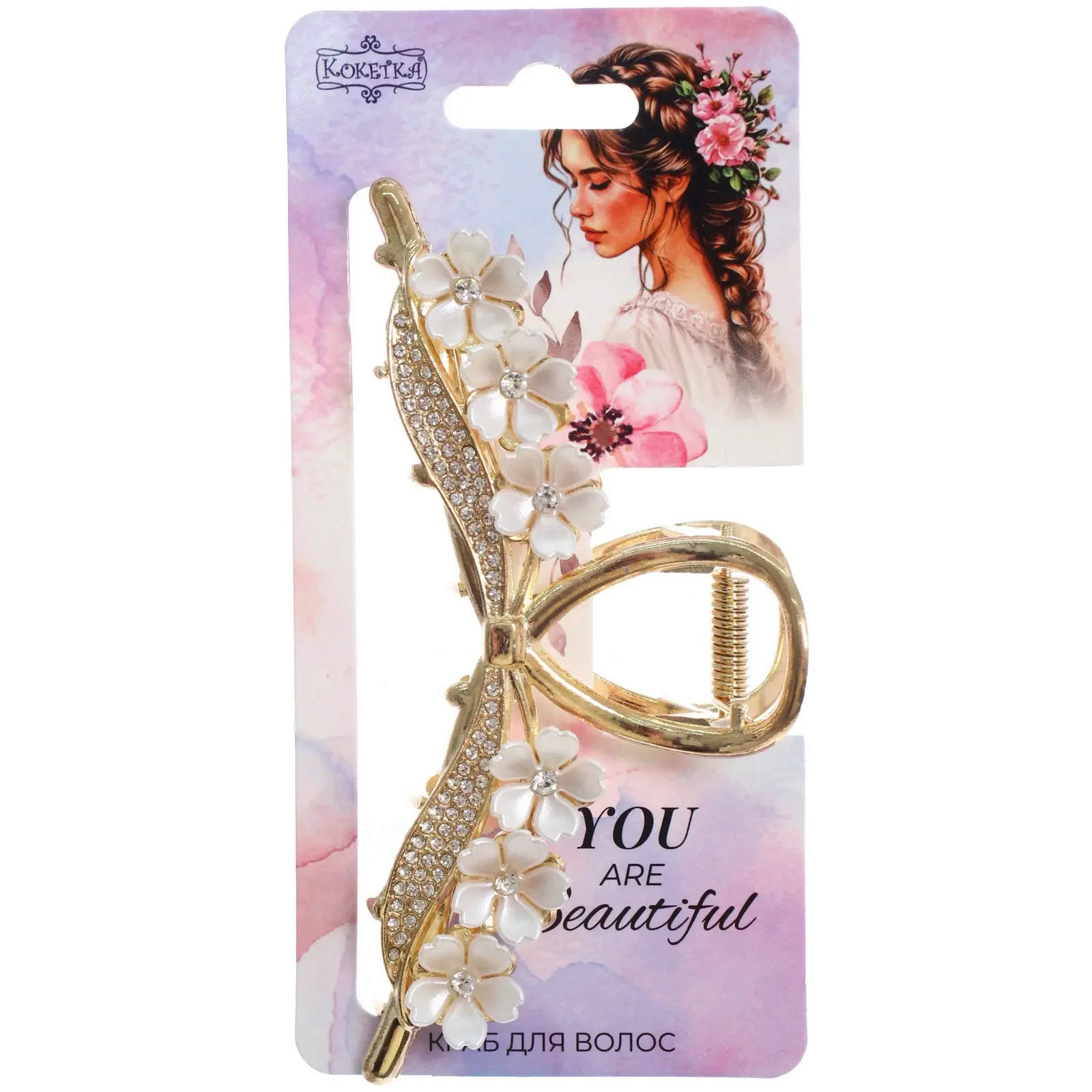 Металлическая основа обеспечивает надежную фиксацию прически в течение всего дня. Блестящие кристаллы и перламутровые элементы добавляют роскоши вашему образу, а классическое сочетание золотого и хромового цветов делает аксессуар универсальным.