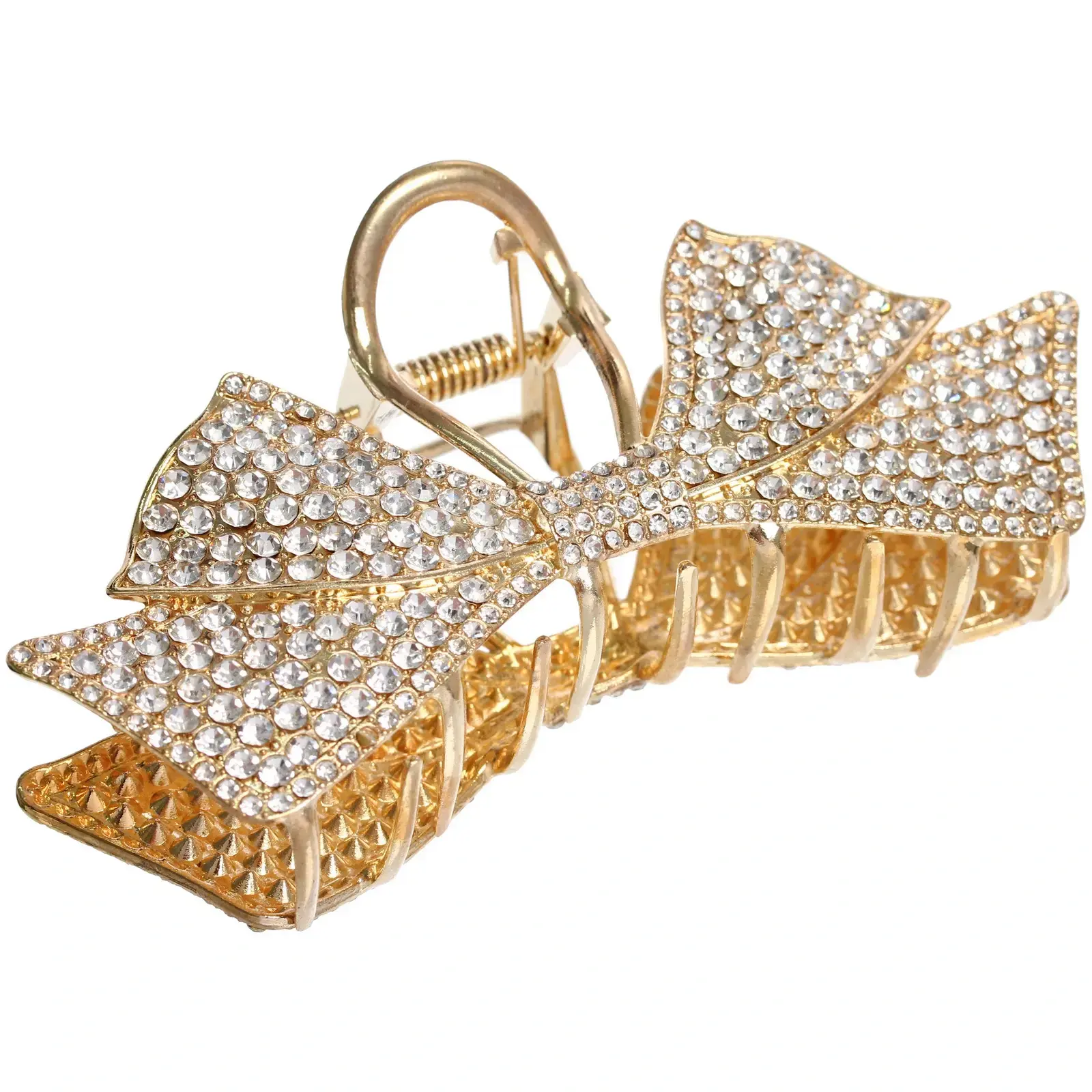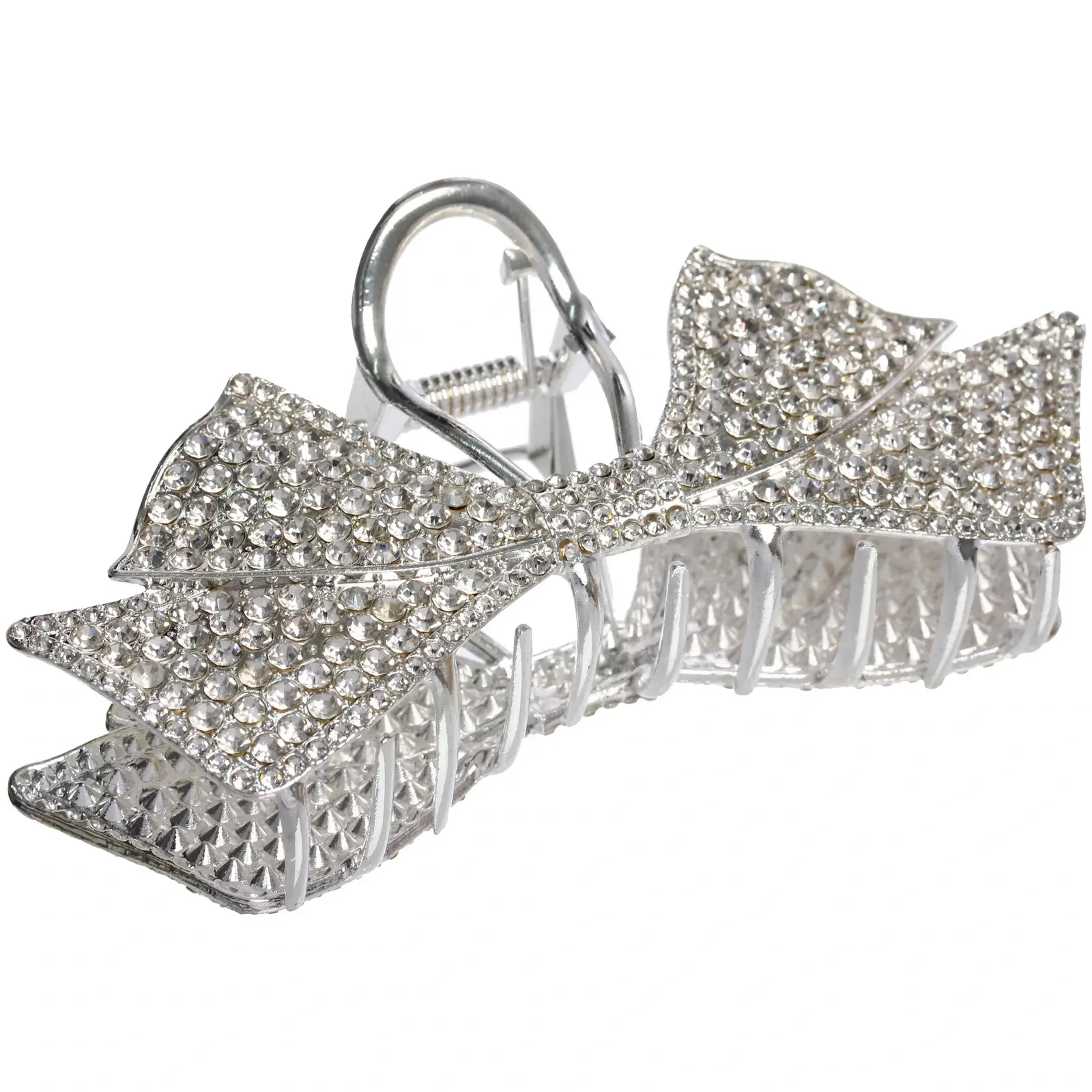 Заколка выполнена из прочного металла с элегантным золотистым и хромированным покрытием, устойчивым к царапинам и потускнению. Декоративный бантик украшен мерцающими камнями, которые добавляют нотку гламура в ваш образ.
