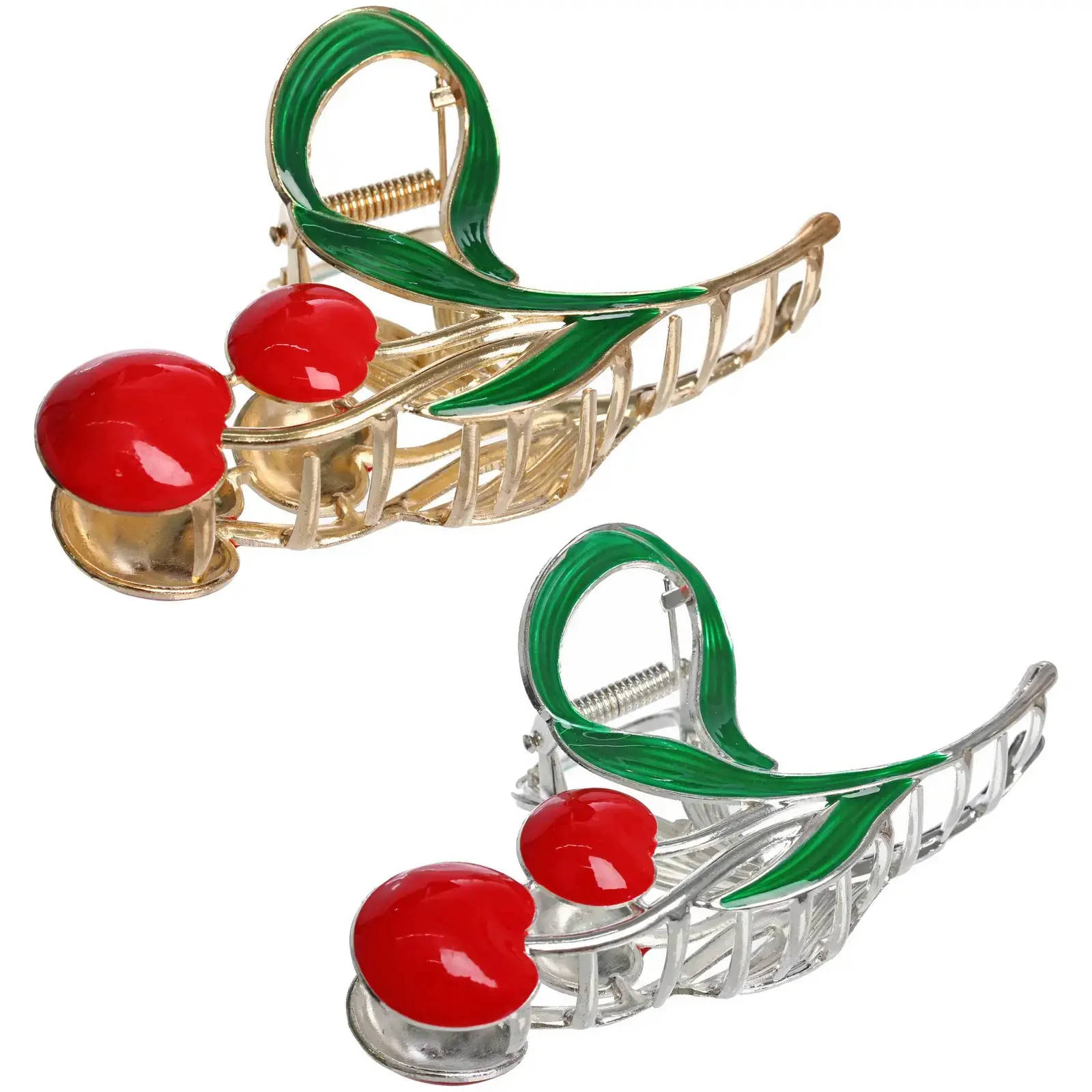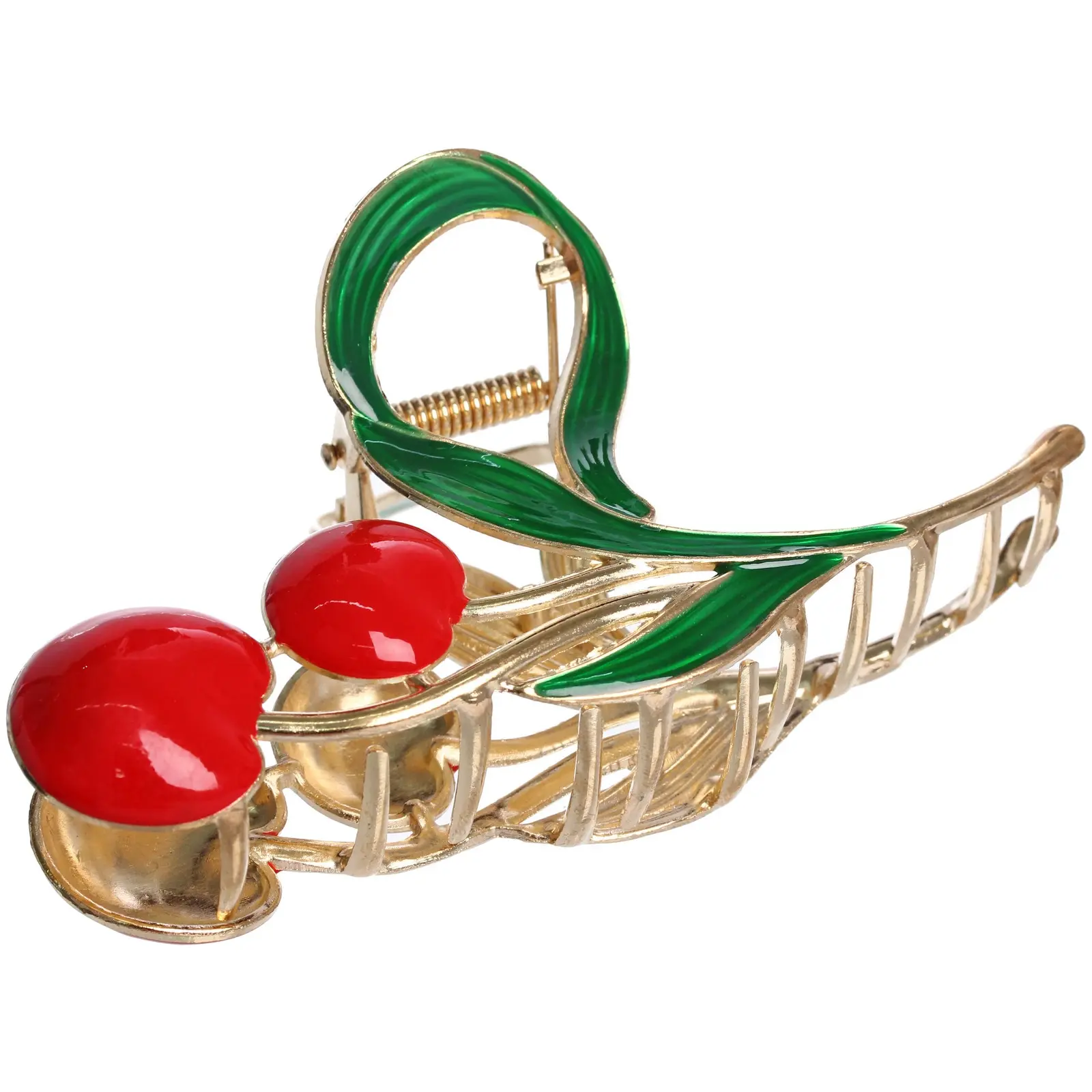 Заколка-краб "AKS - DesignPRO" с вишенками, цвет микс золото/хром, 1 штука, 11*5.7см