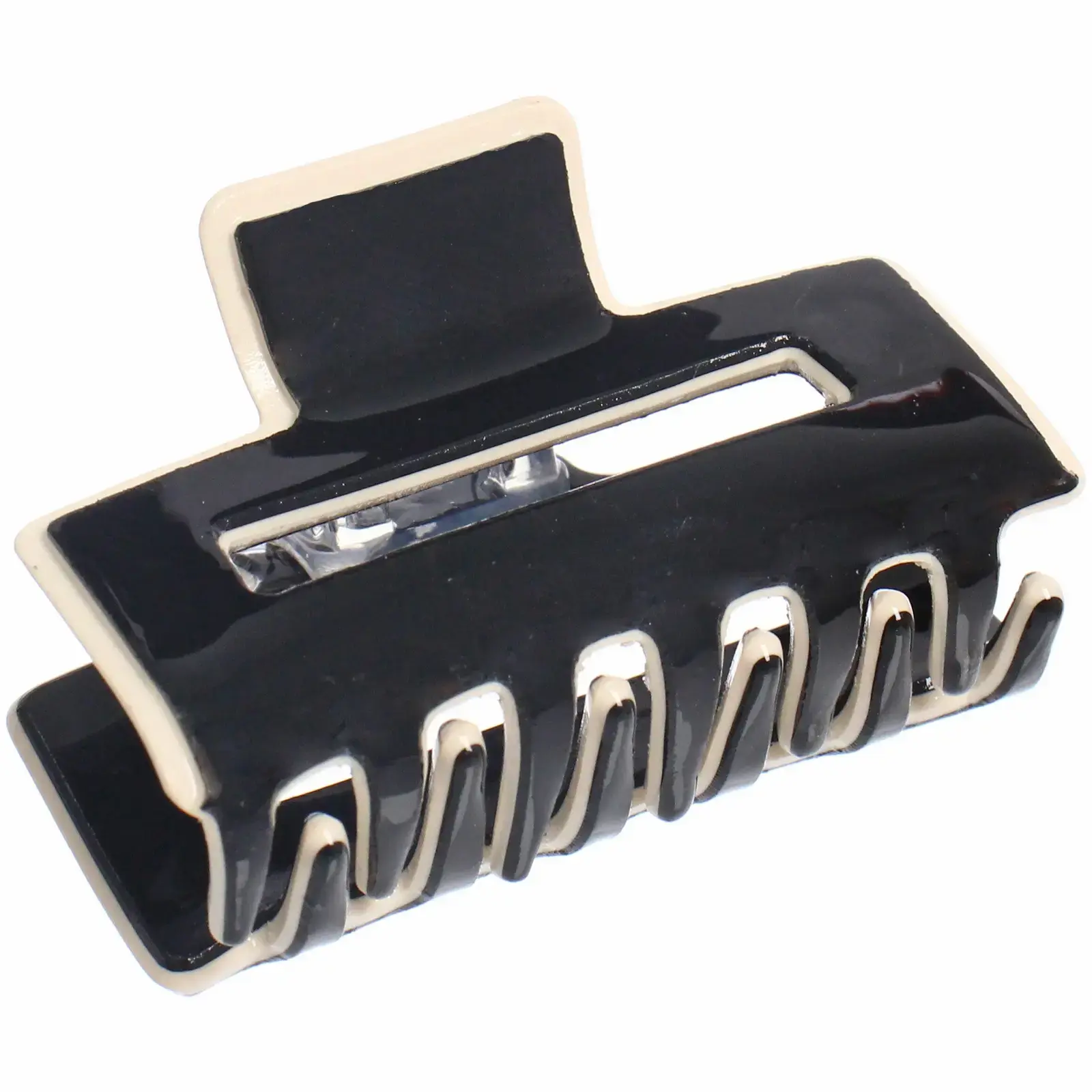Стильная заколка-краб станет незаменимым аксессуаром в создании элегантных причесок. Удобная конструкция и классический черный цвет позволяют использовать изделие в любой ситуации – от повседневной носки до деловых встреч.