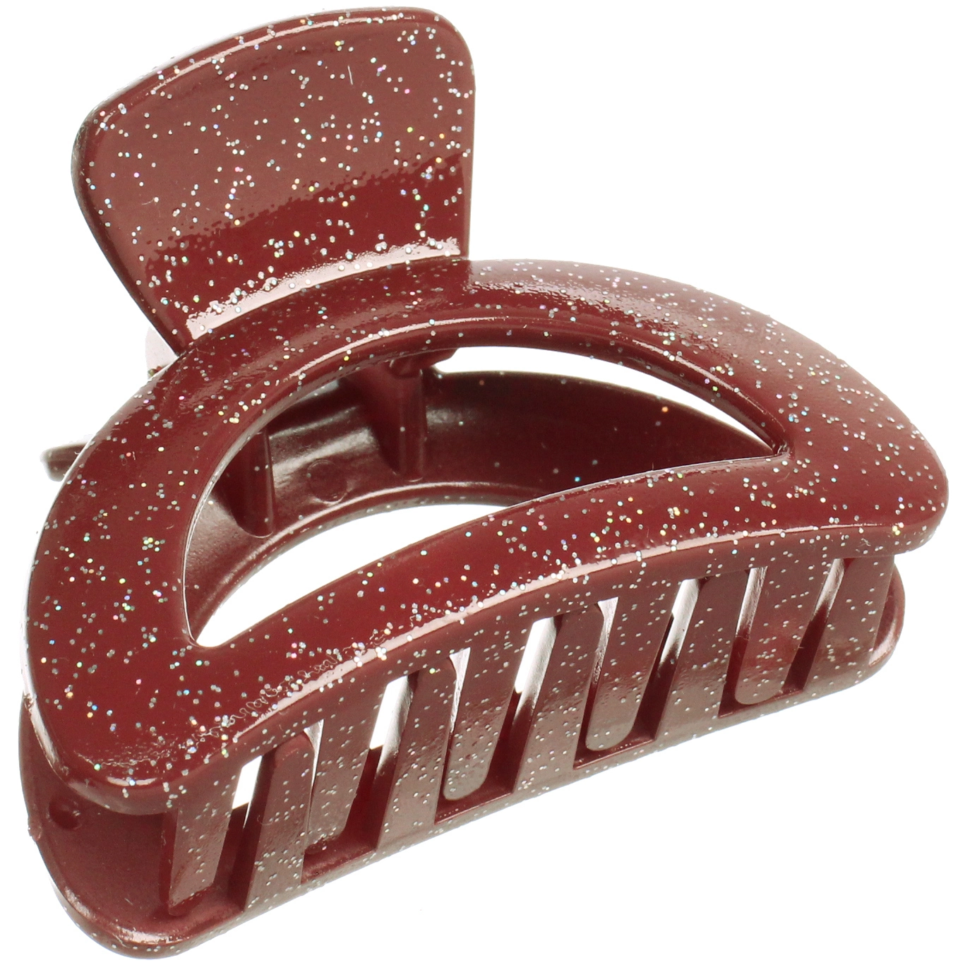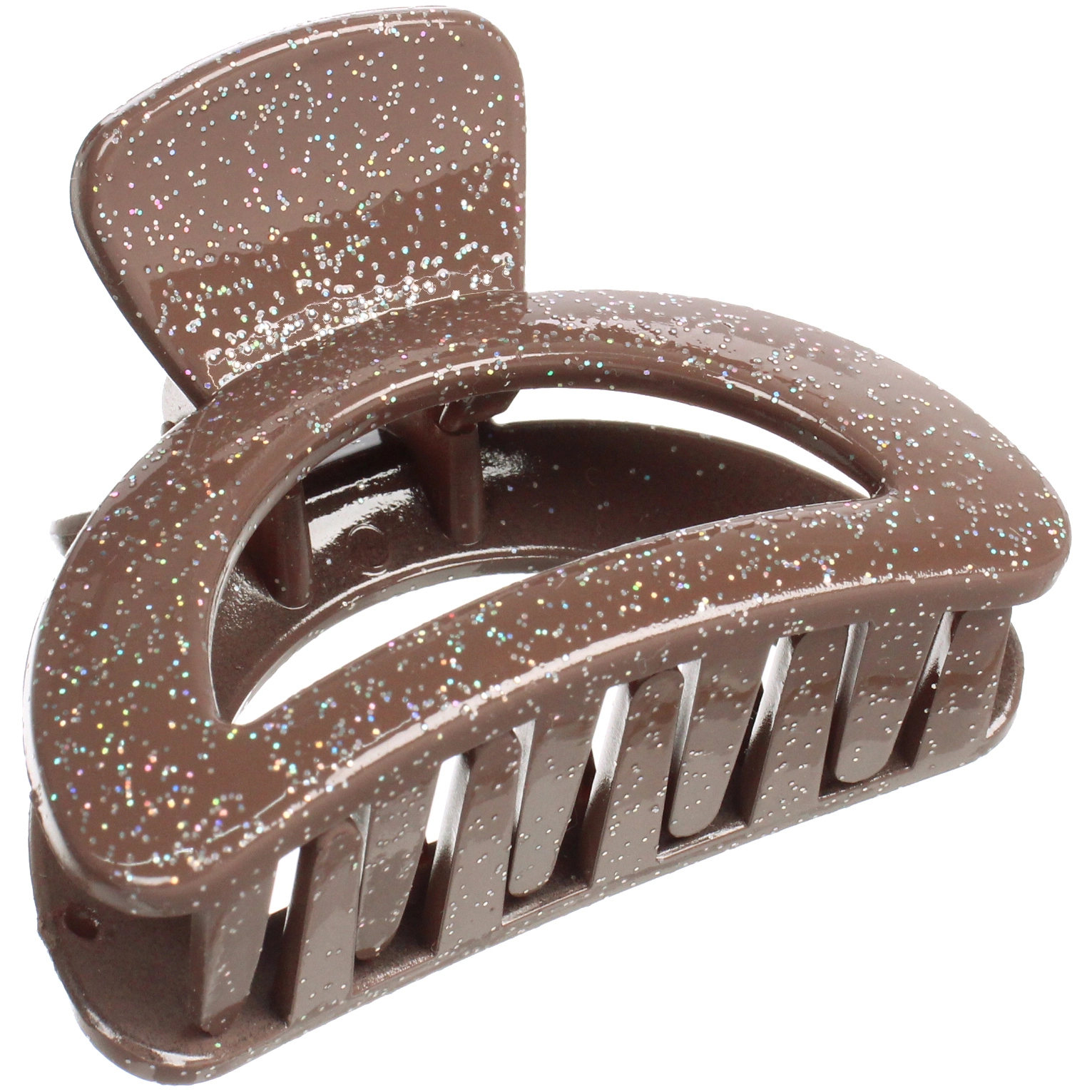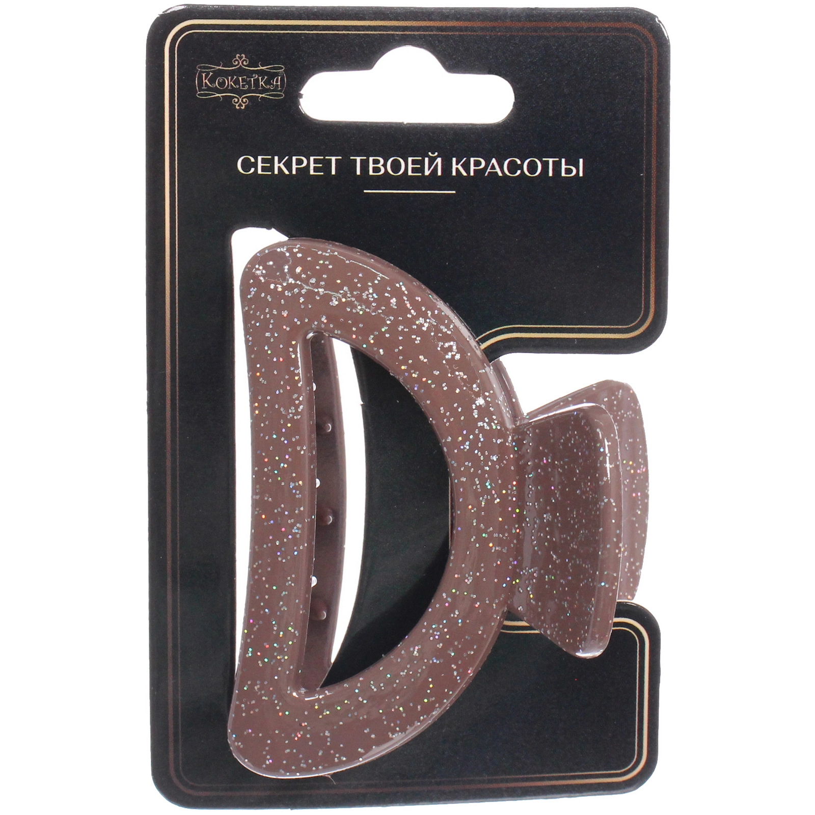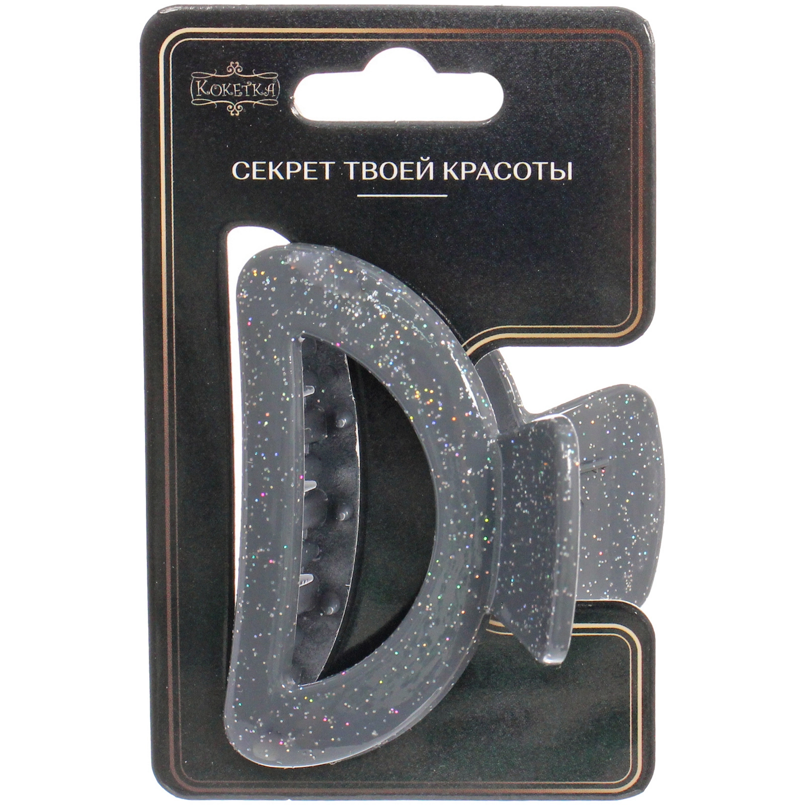 Изделие выполнено из прочного и легкого пластика, который устойчив к ежедневному использованию. Особенностью модели является декор в виде мелкого глиттера (блесток), распределенного по всей поверхности. Мерцающие частицы красиво переливаются при любом освещении, добавляя образу изысканности. Гладкие зубцы бережно удерживают волосы, не травмируя их структуру и не вызывая чувства стянутости кожи головы.