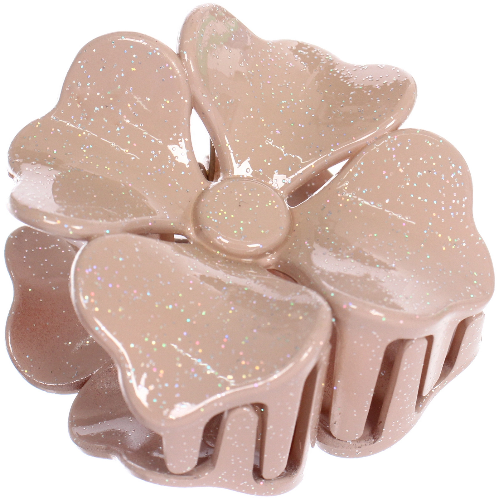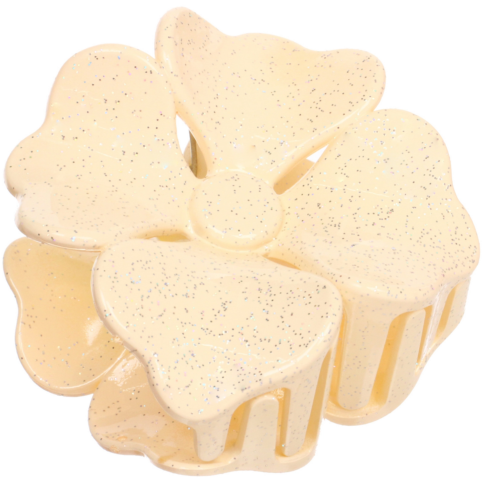 Заколка-краб для волос в форме нежного цветка помогает быстро собрать прическу и сохранить аккуратный вид в течение дня. Глянцевая поверхность с деликатными блестками добавляет образу мягкий акцент и делает аксессуар уместным как для повседневной носки, так и для особых случаев.