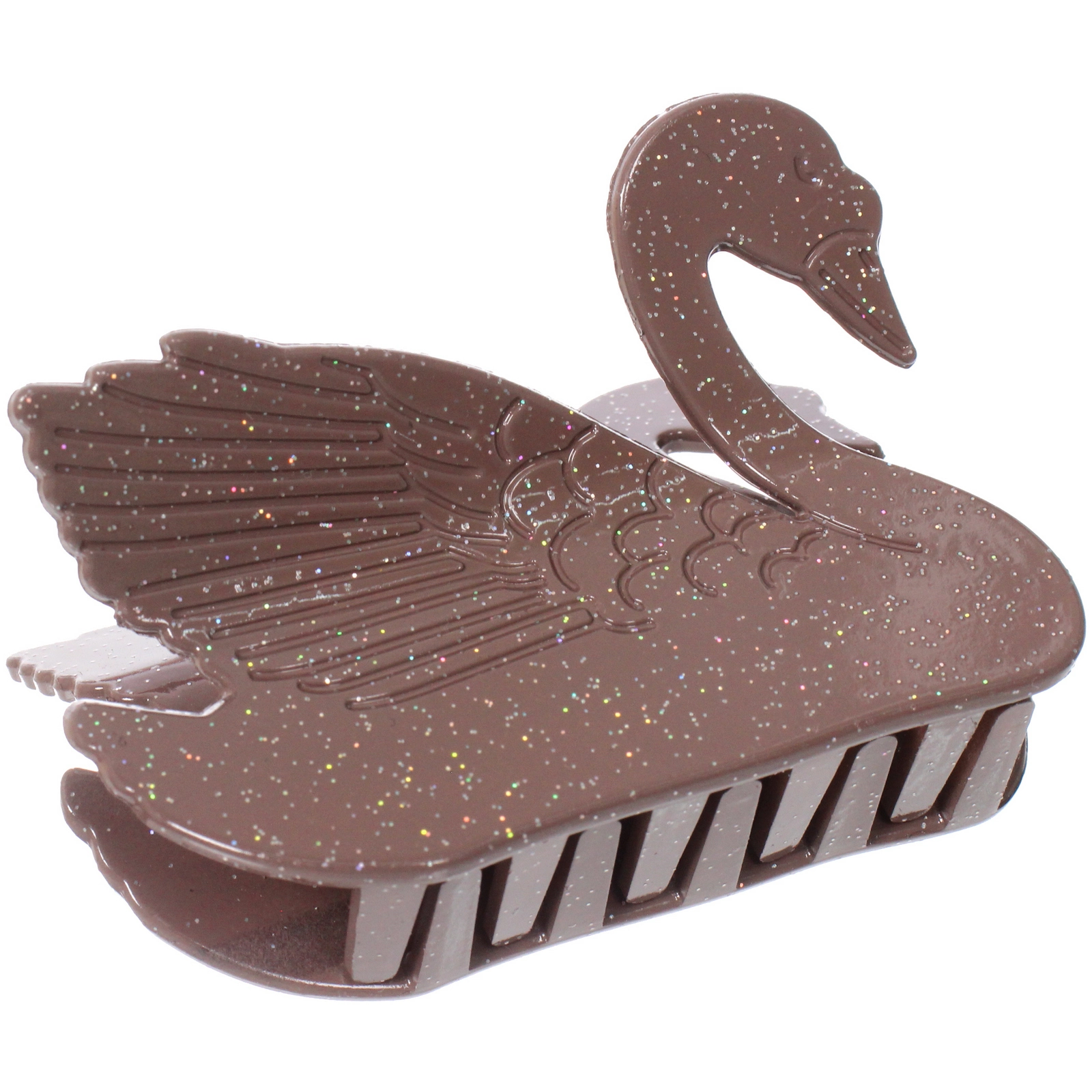 Заколка-краб «AKS - VIENTO» в форме изящного лебедя помогает быстро собрать волосы и добавить образу аккуратности и шарма. Благодаря удобному механизму зажима аксессуар надежно фиксирует пряди, сохраняя комфорт в течение всего дня. Глянцевая поверхность с деликатными блестками придает прическе легкий акцент и делает даже повседневную укладку более выразительной.