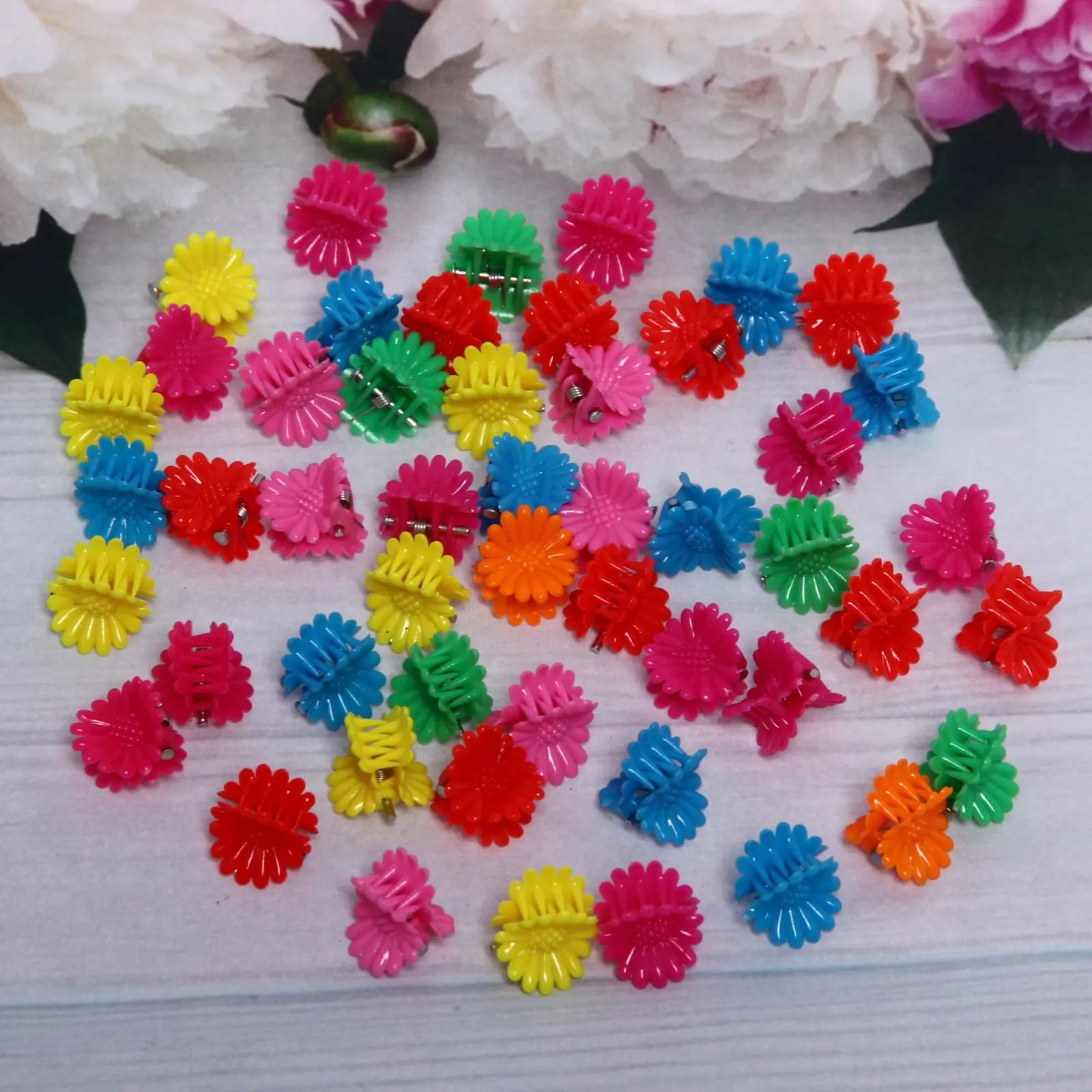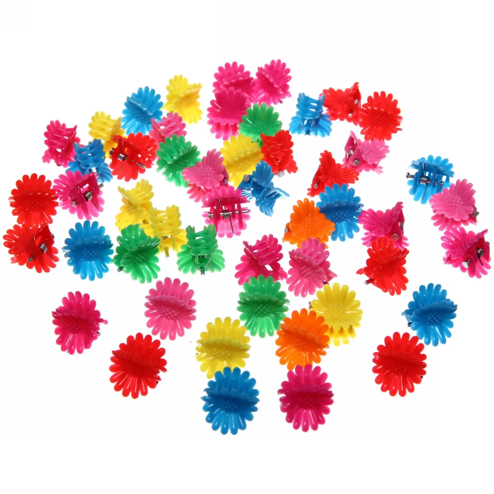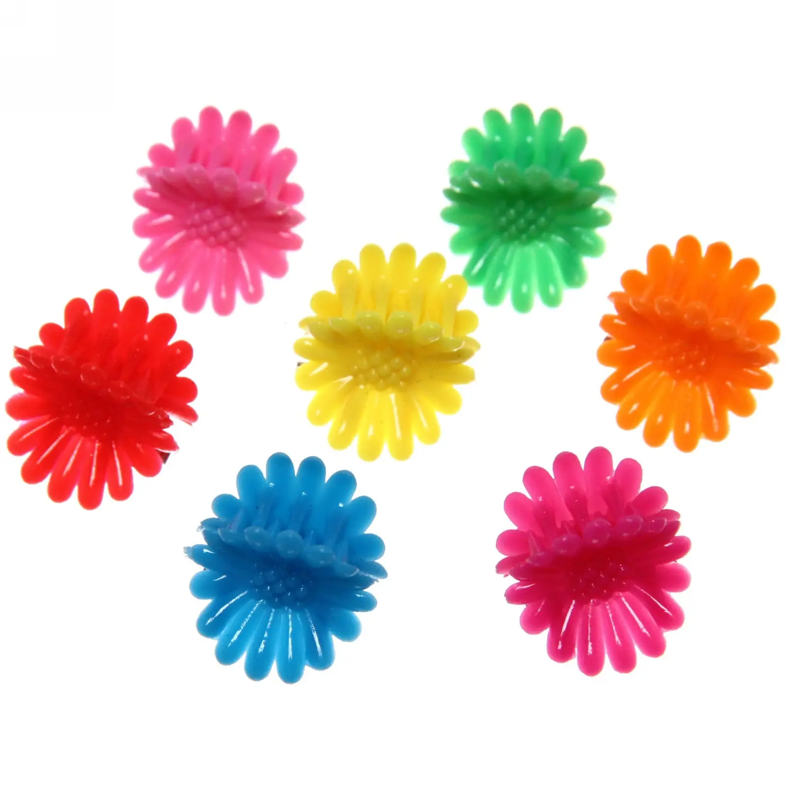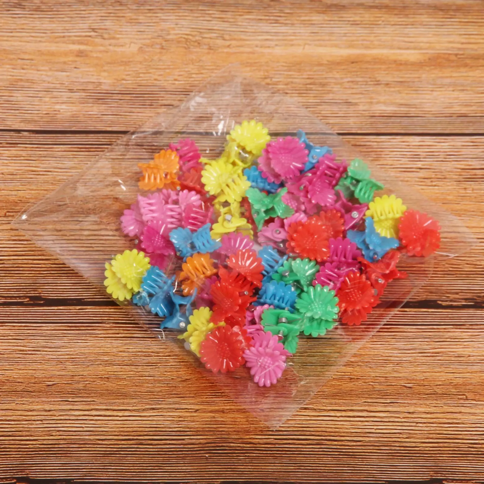 Заколки изготовлены из качественного пластика, безопасного для детских волос. Форма в виде ромашек добавляет игривости образу. Цветовая гамма включает красный, розовый, желтый, зеленый, оранжевый и синий оттенки.