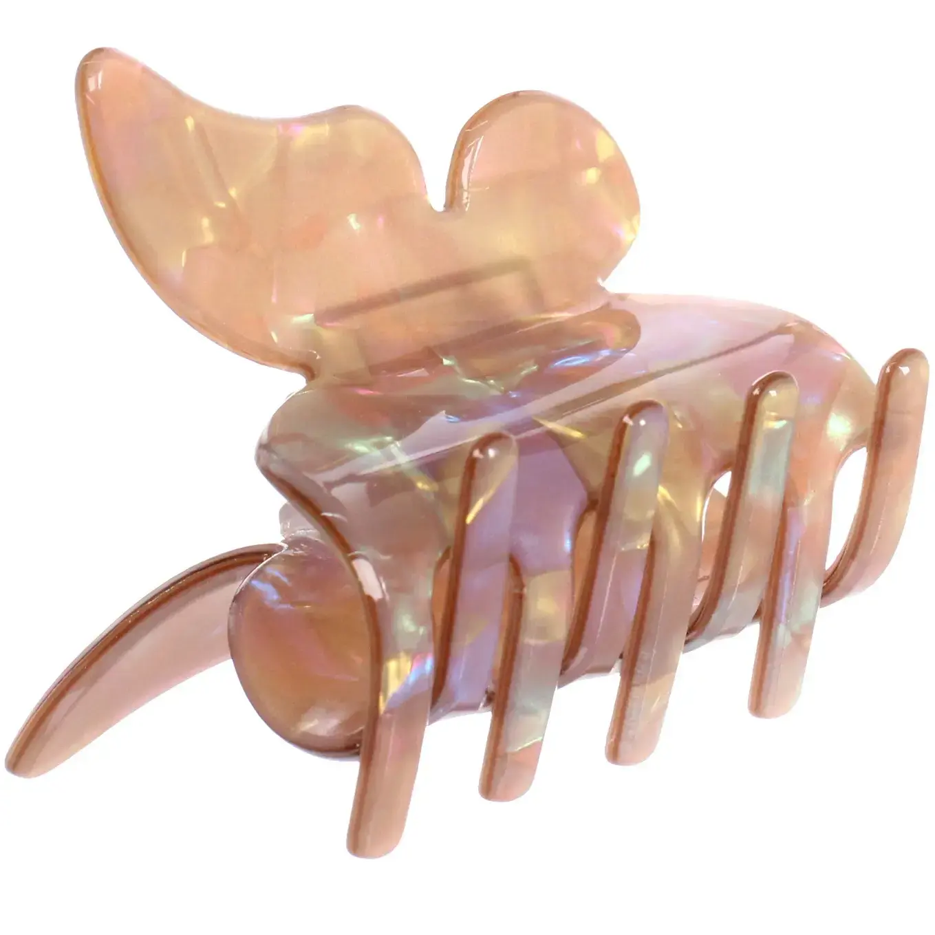 Заколка выполнена в шести различных цветах: розовом, персиковом, белом, голубом, светло-розовом и светло-голубом, что позволяет вам выбрать именно тот оттенок, который вам нравится. Каждый цвет имеет свой уникальный перламутровый эффект, который придает заколке легкость и изящество. Заколка подходит для создания как повседневных, так и вечерних причесок, делая ваш образ завершенным и стильным.