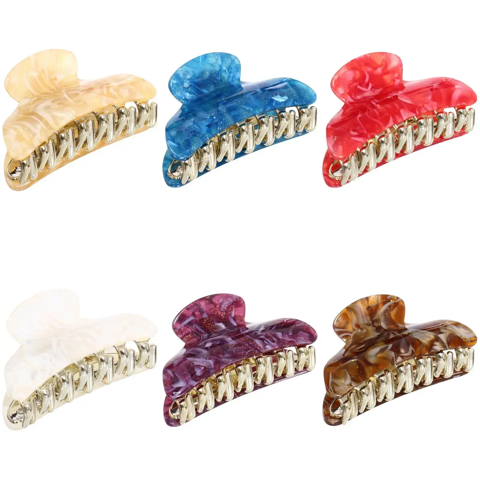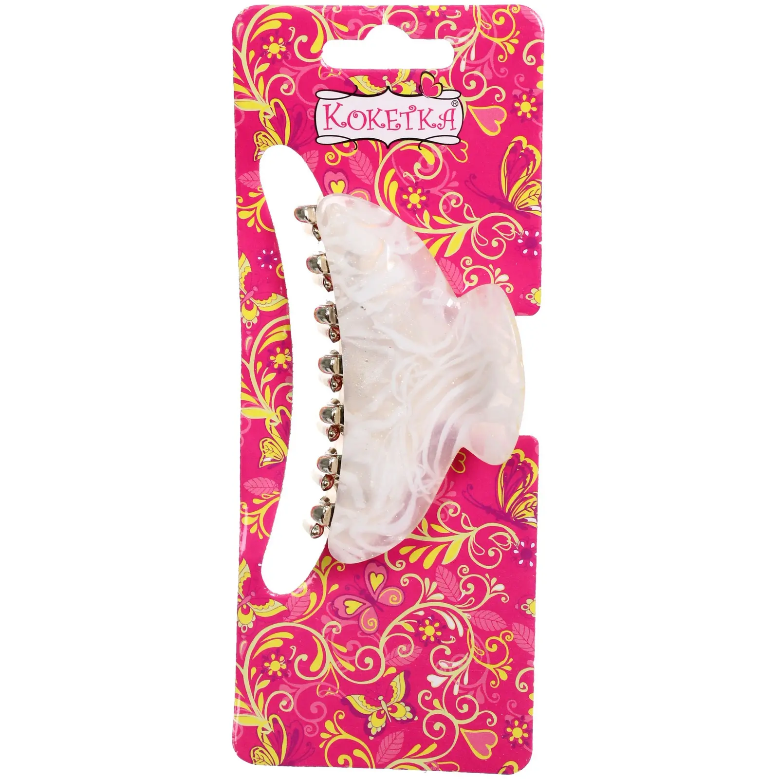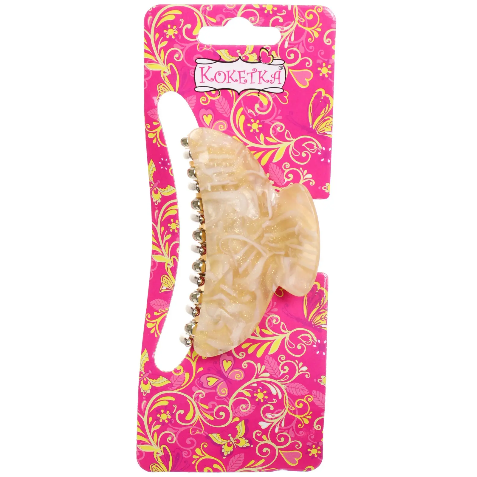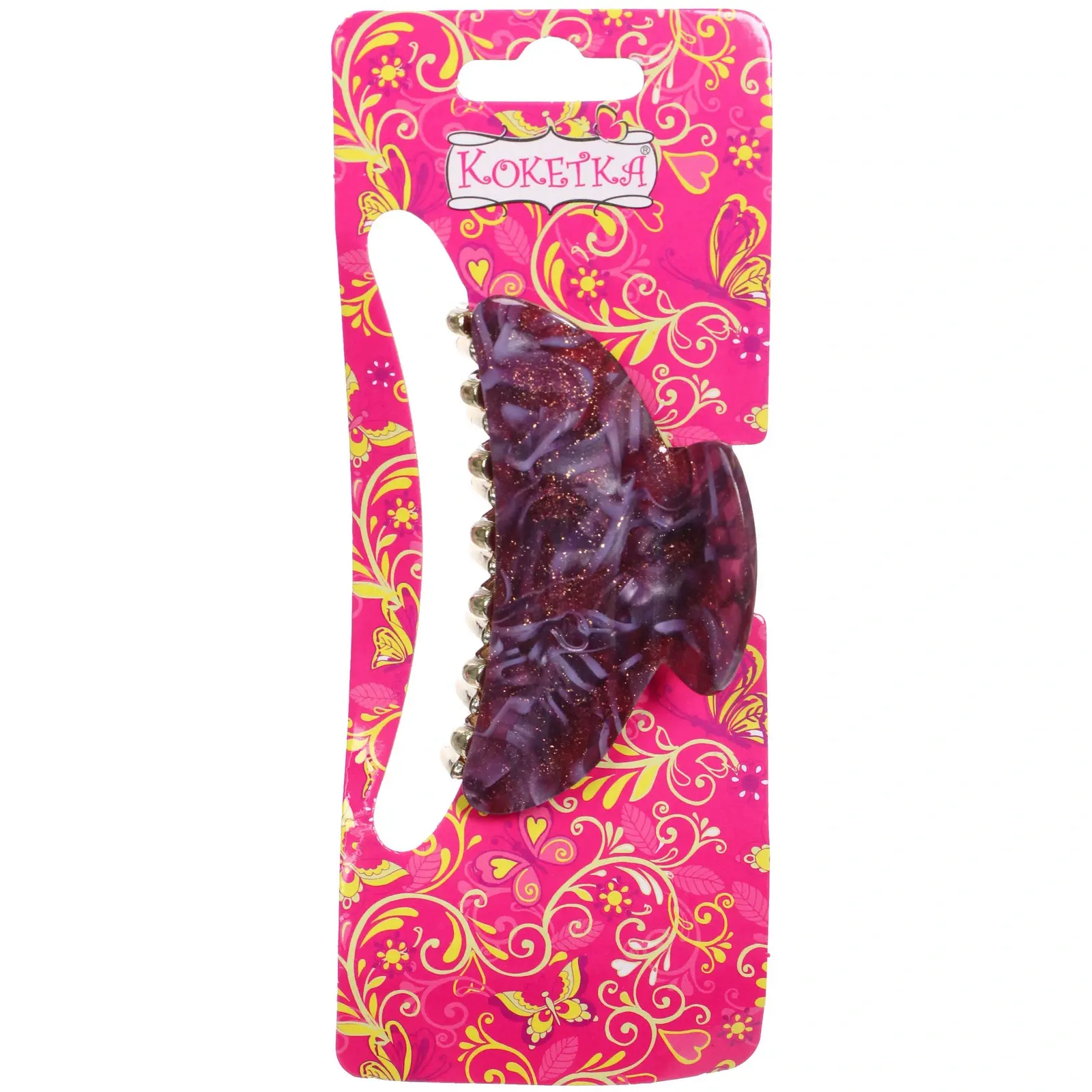 Заколка выполнена из качественных материалов: прочного пластика и металла, что гарантирует долговечность и надежность. Полупрозрачные цвета с характерными узорами добавляют изюминку и делают заколку стильным аксессуаром. Удобная форма с закругленными краями обеспечивает комфортное ношение, не травмируя кожу головы.