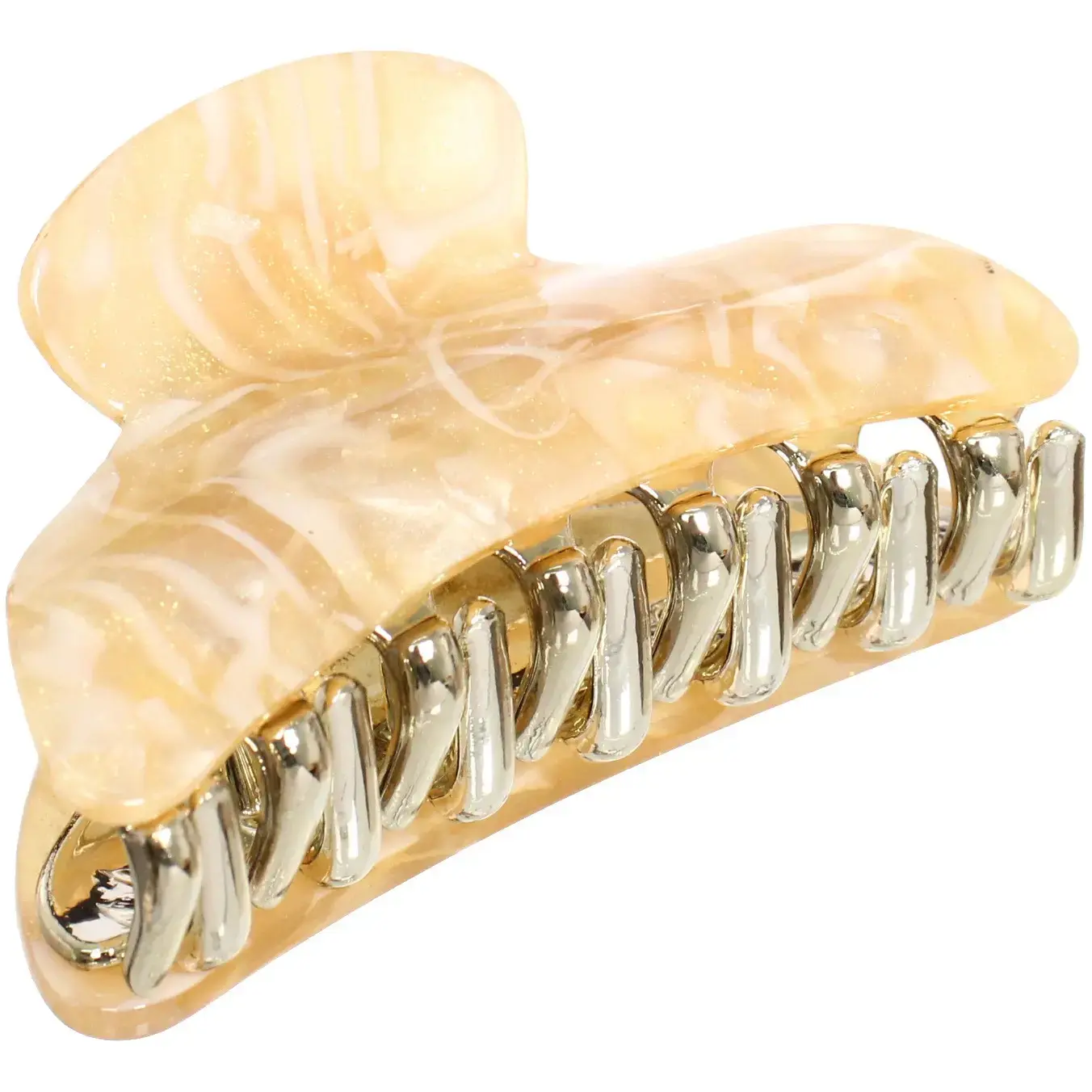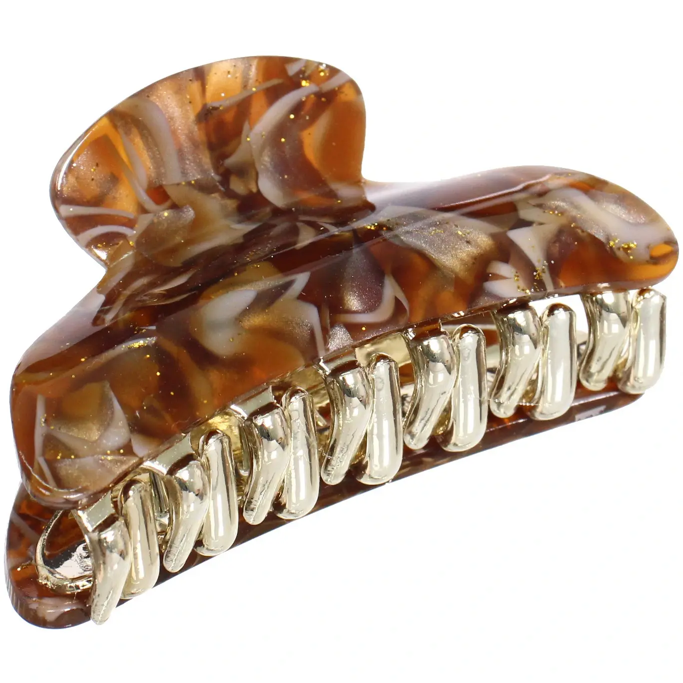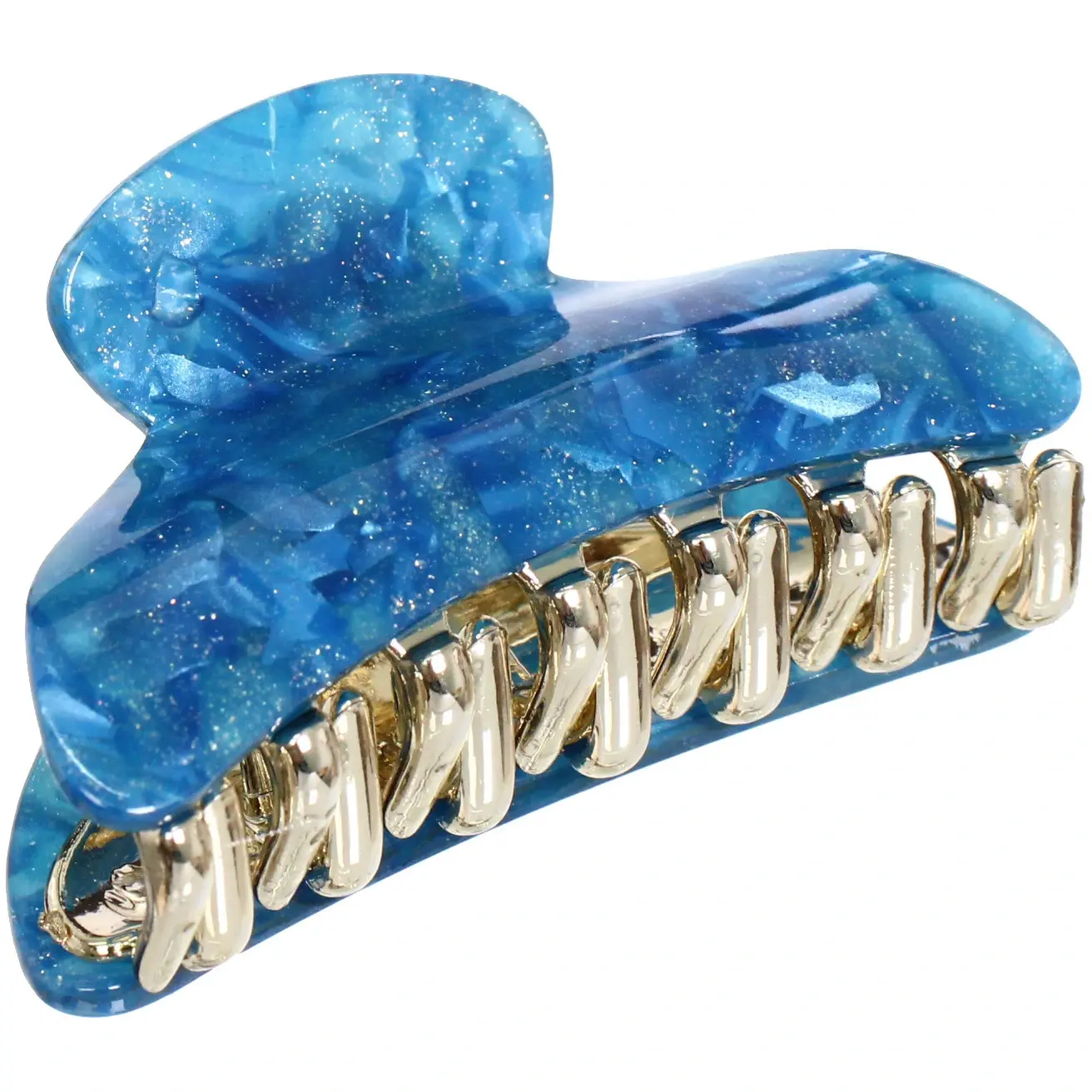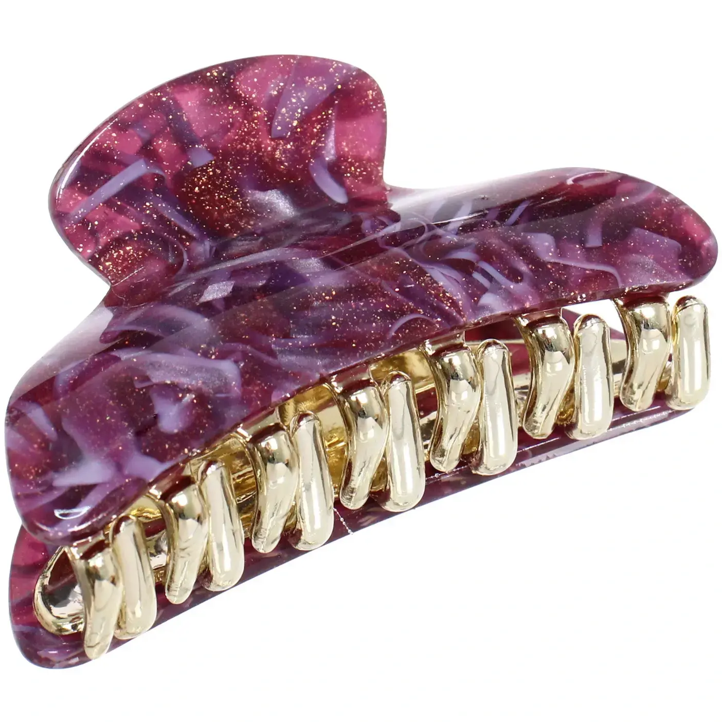 Заколка выполнена из качественных материалов: прочного пластика и металла, что гарантирует долговечность и надежность. Полупрозрачные цвета с характерными узорами добавляют изюминку и делают заколку стильным аксессуаром. Удобная форма с закругленными краями обеспечивает комфортное ношение, не травмируя кожу головы.