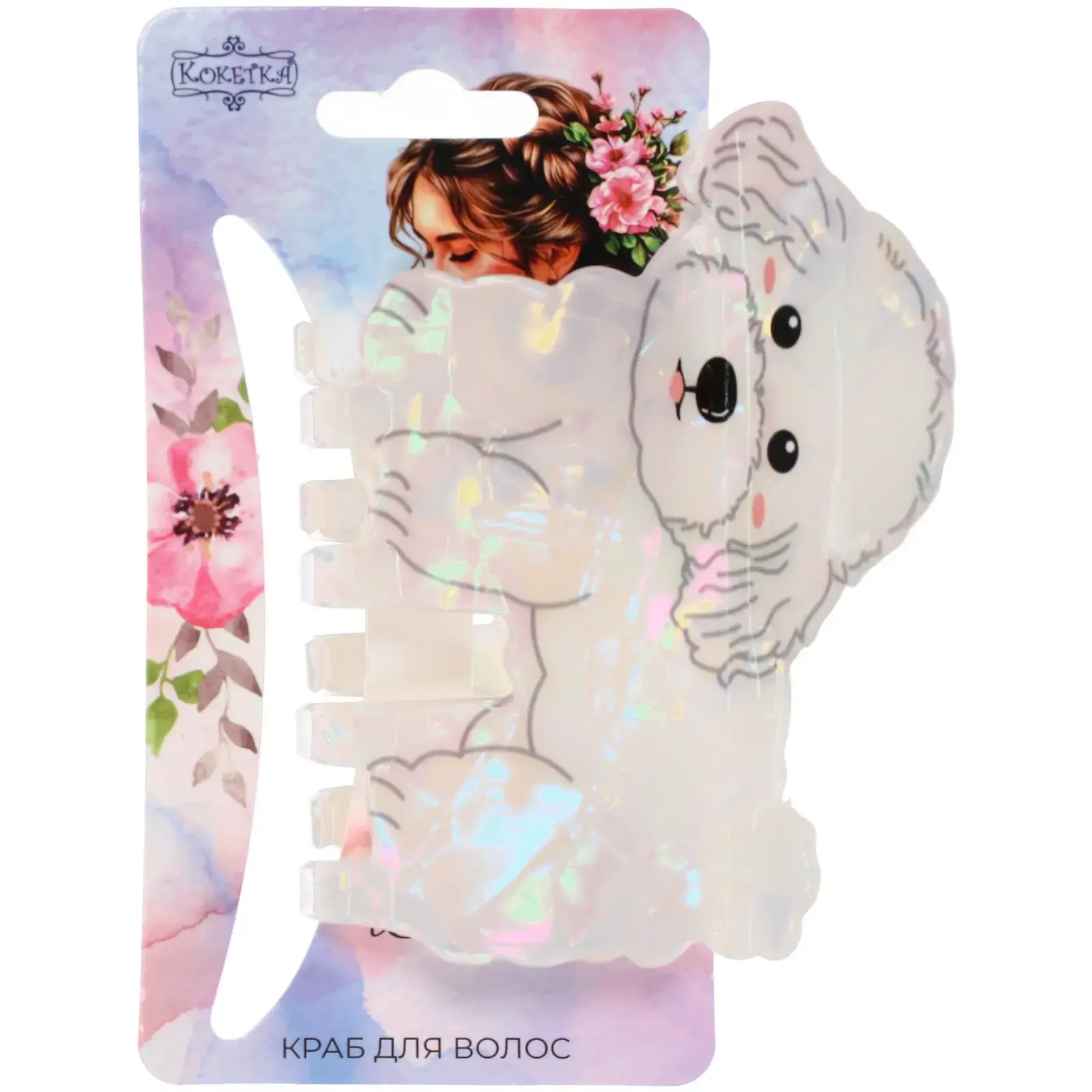 Размер заколки — 9×6.5 см, материал — пластик с глянцевой и полупрозрачной текстурой. Отгружается один товар, цвет определяется как белый с перламутровым эффектом. Такой аксессуар станет отличным выбором для тех, кто ценит сочетание функциональности и оригинального дизайна.