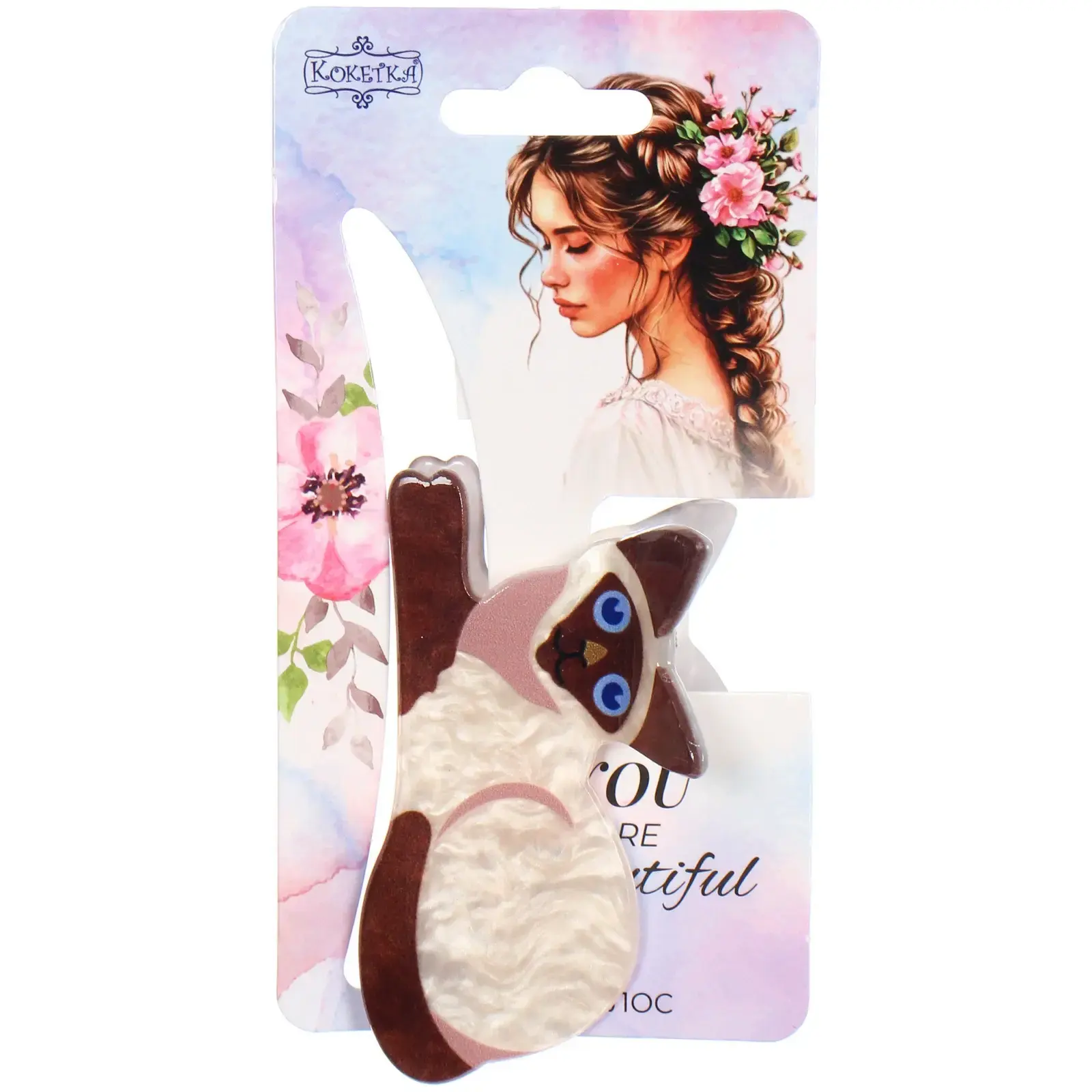 Эта заколка-краб «хвостики-косички» в виде забавной кошечки Даны — идеальный аксессуар для тех, кто ценит удобство, аккуратность и изысканный внешний вид волос. Оригинальный мультяшный дизайн в нежных бежевых и коричневых тонах добавит образу яркую деталь, а компактный размер 7х4 см делает её удобной для повседневного использования.