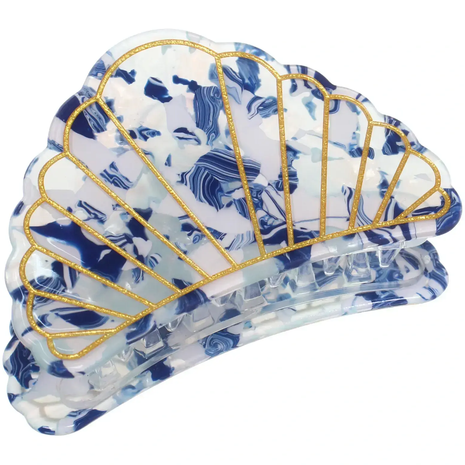 Преимущества данной заколки — это не только оригинальный дизайн и яркий внешний вид, но и длительный срок службы благодаря высококачественным материалам. Элемент в расцветке голубой и белый с эффектом мрамора и перламутра делает её универсальной и сочетающейся с разной одеждой и аксессуарами. Размер 6х3,8 см подходит для разных типов волос, легко держится и не вызывает дискомфорта.