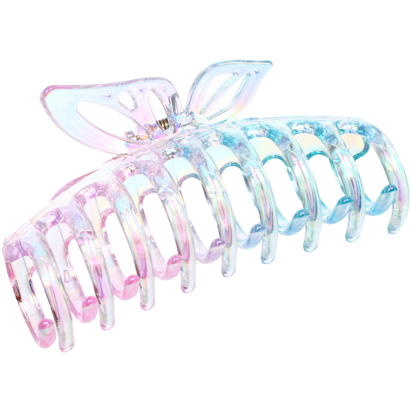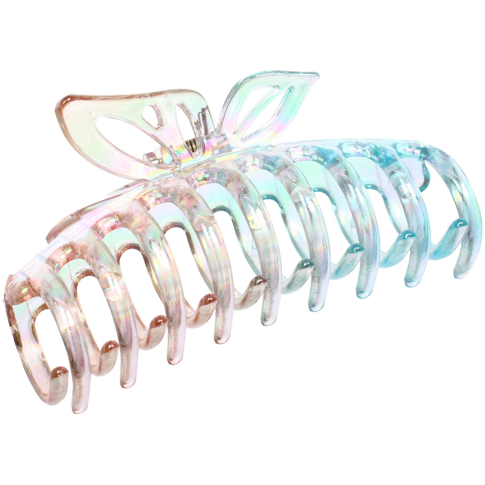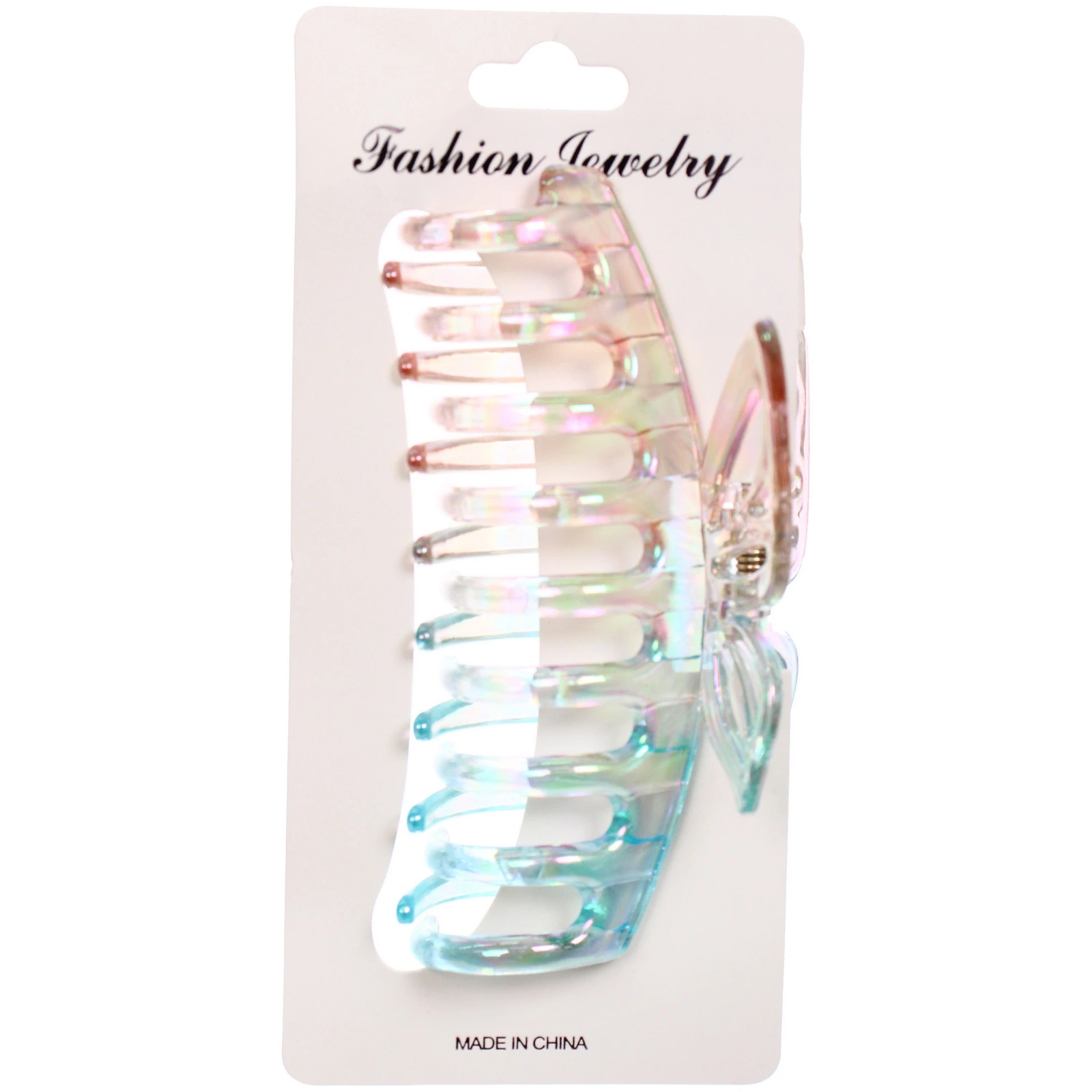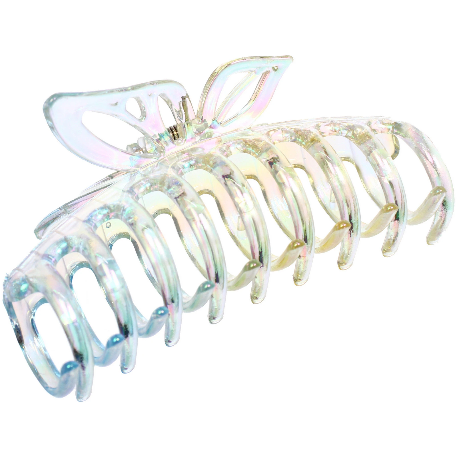 Заколка выполнена из прочного пластика, что гарантирует ее долговечность и надежность. Прозрачный материал с радужным эффектом придает изделию особую привлекательность. Вы можете выбрать один из шести ярких цветов, чтобы подчеркнуть свой стиль и настроение. Заколка легко открывается и закрывается, что делает ее использование простым и удобным.