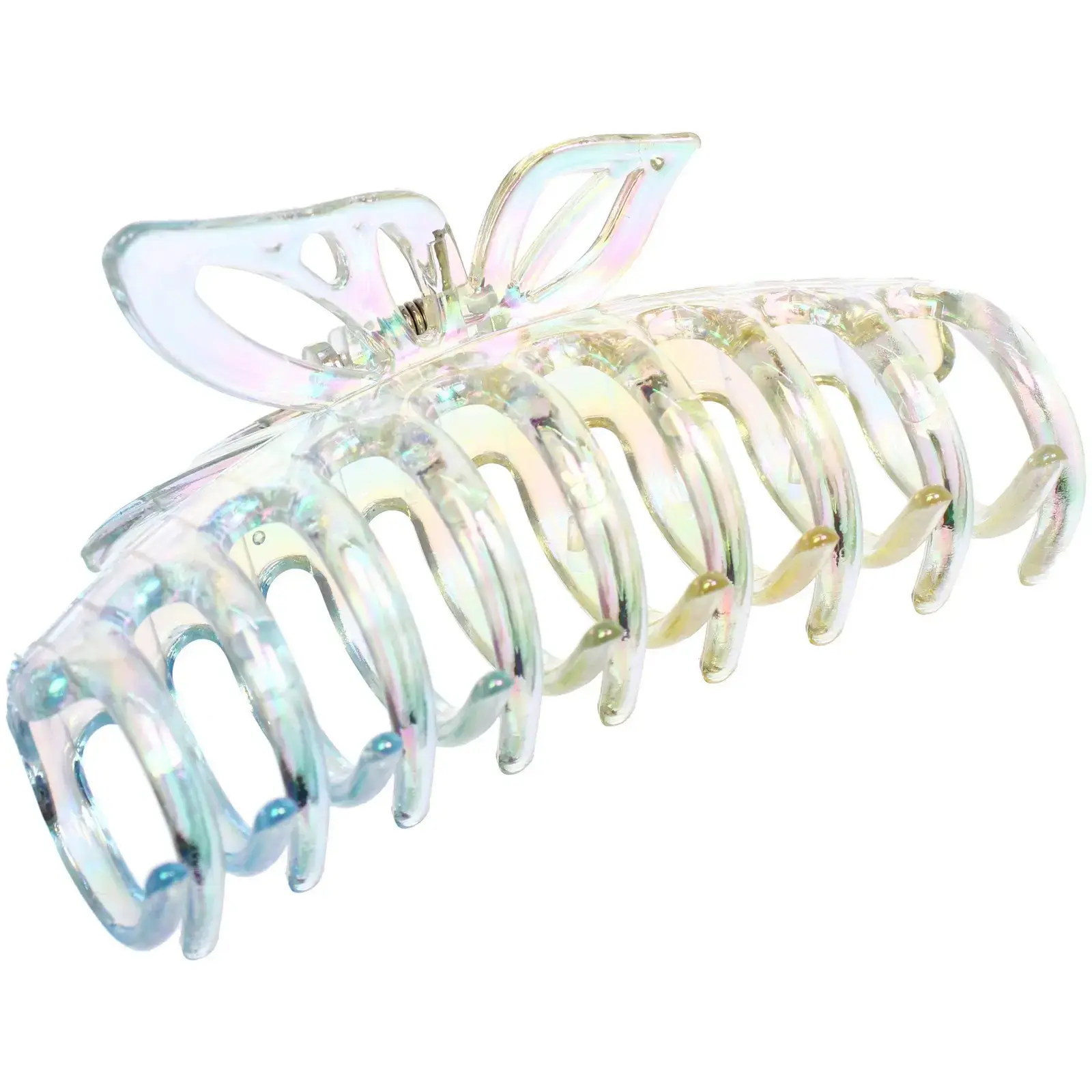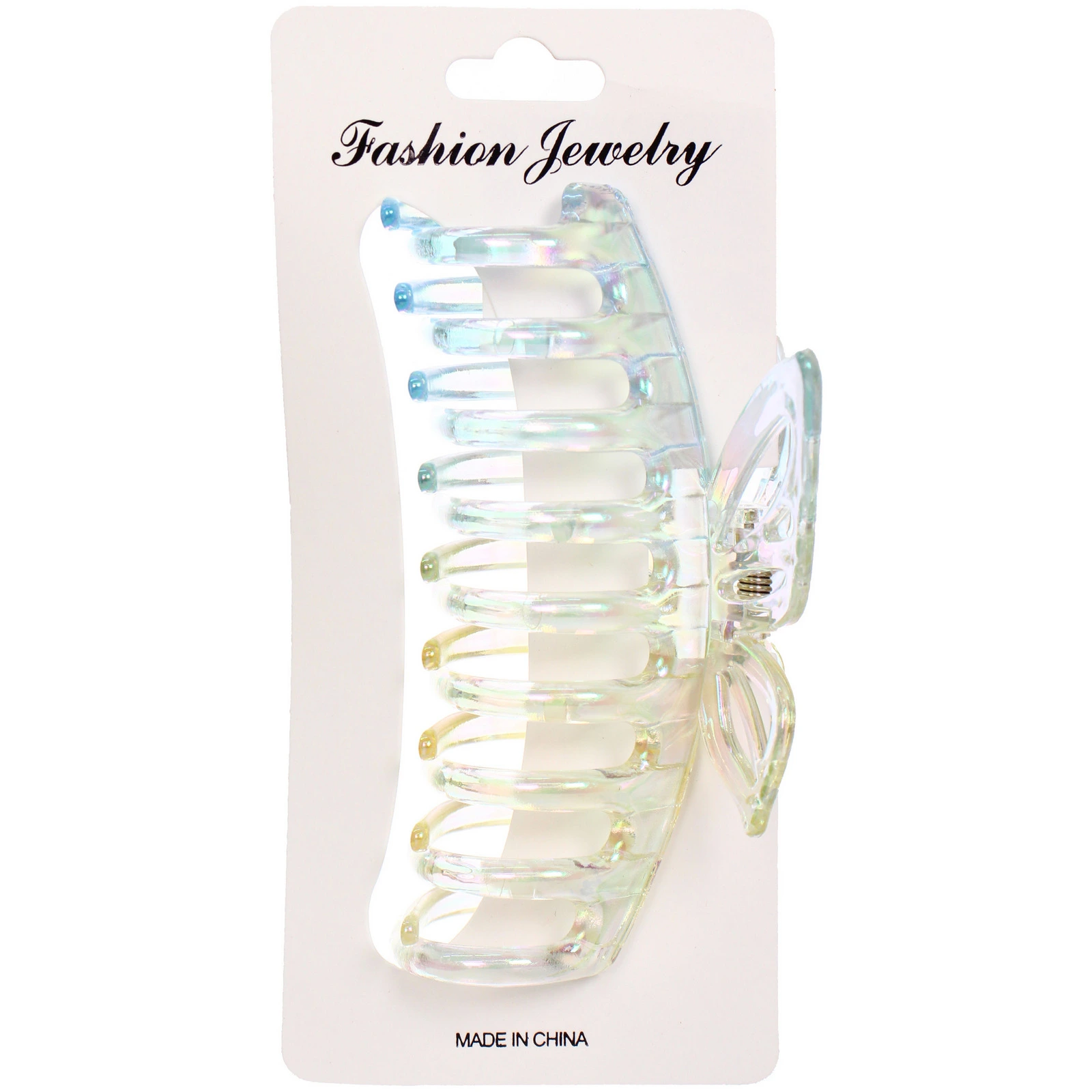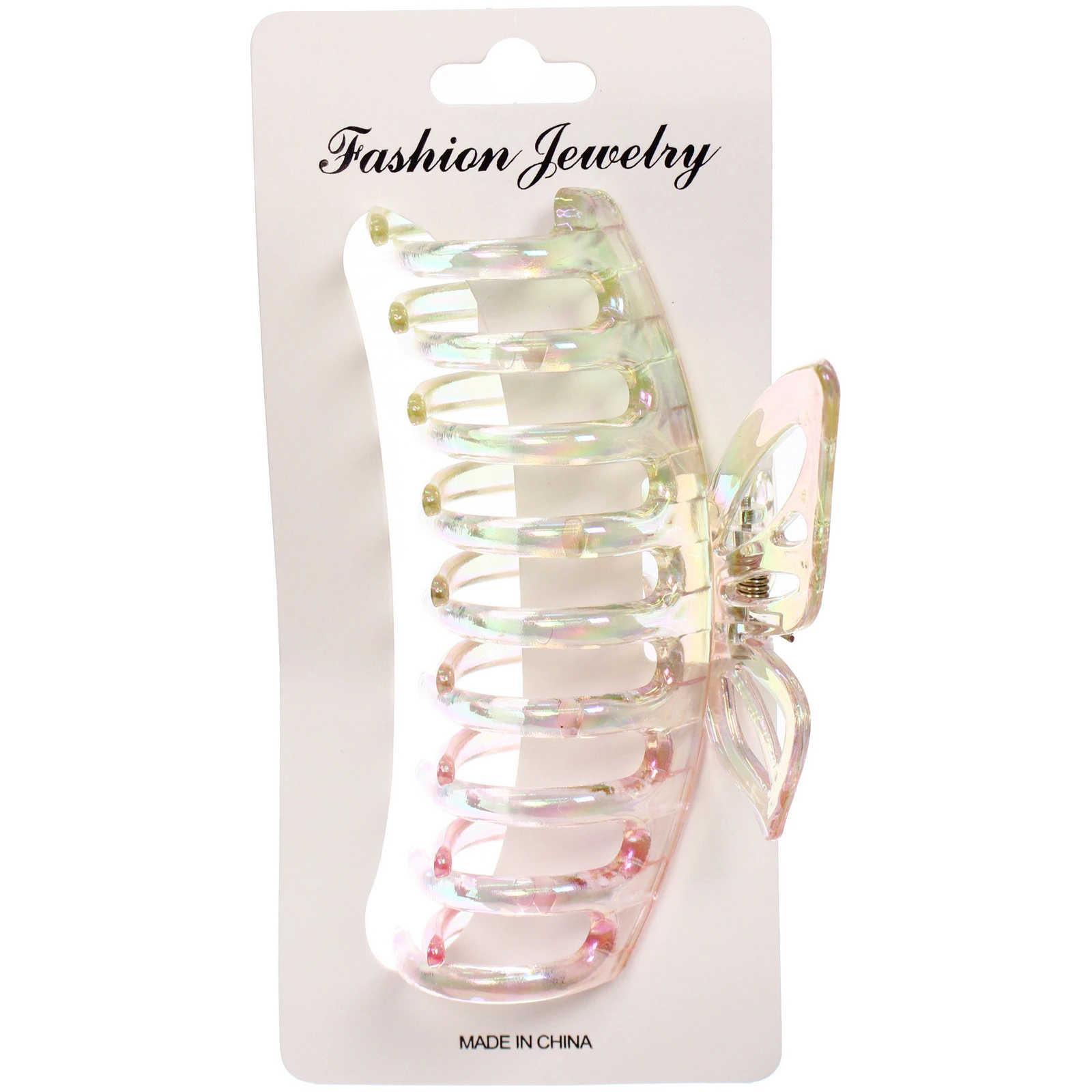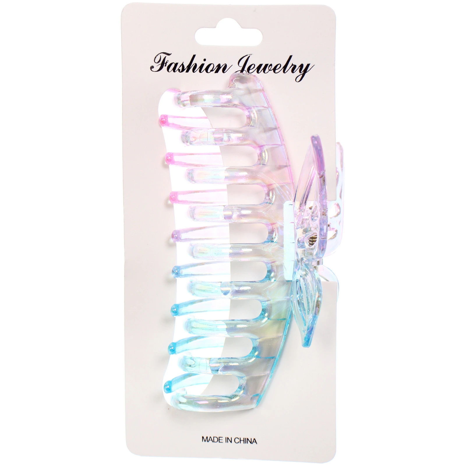 Заколка выполнена из прочного пластика, что гарантирует ее долговечность и надежность. Прозрачный материал с радужным эффектом придает изделию особую привлекательность. Вы можете выбрать один из шести ярких цветов, чтобы подчеркнуть свой стиль и настроение. Заколка легко открывается и закрывается, что делает ее использование простым и удобным.