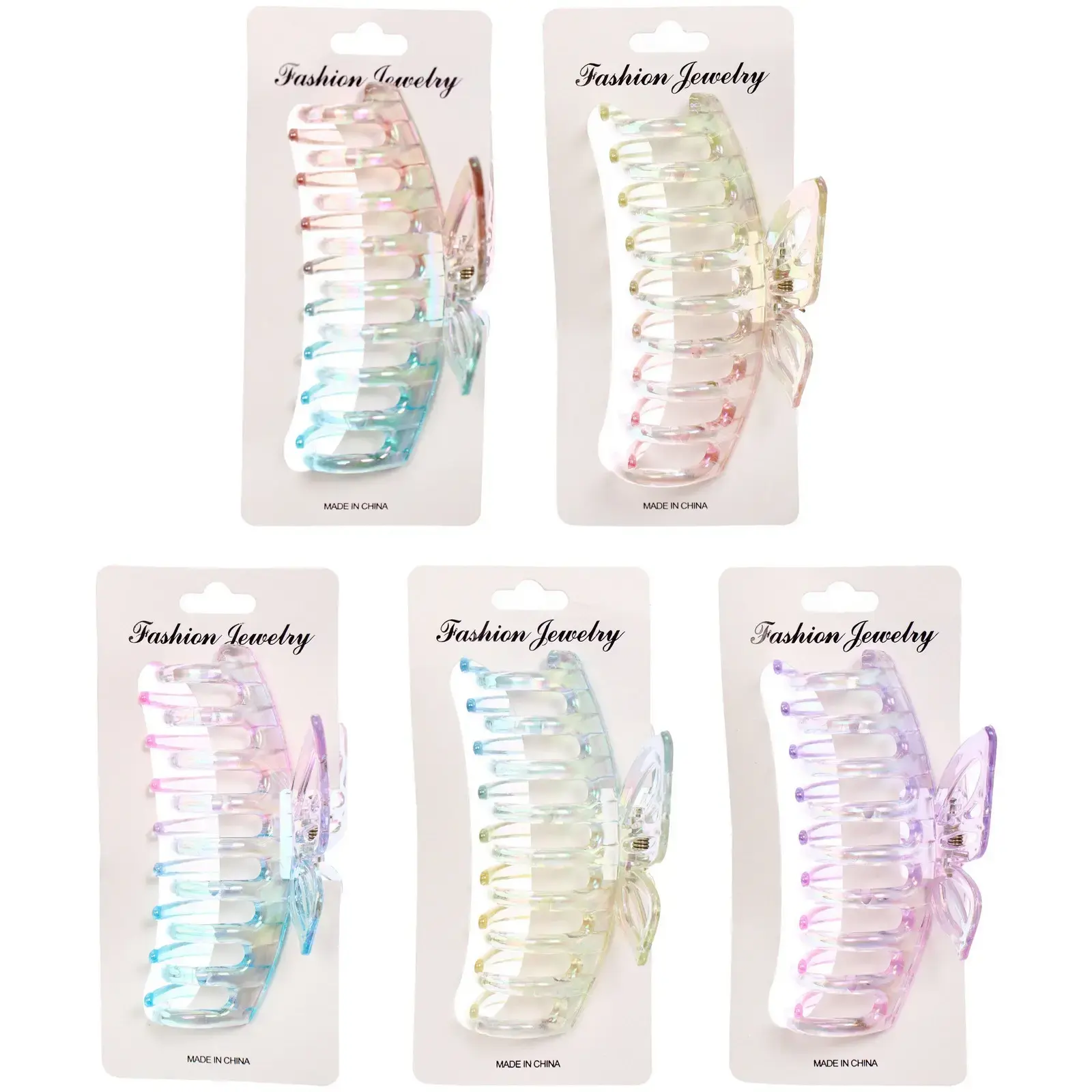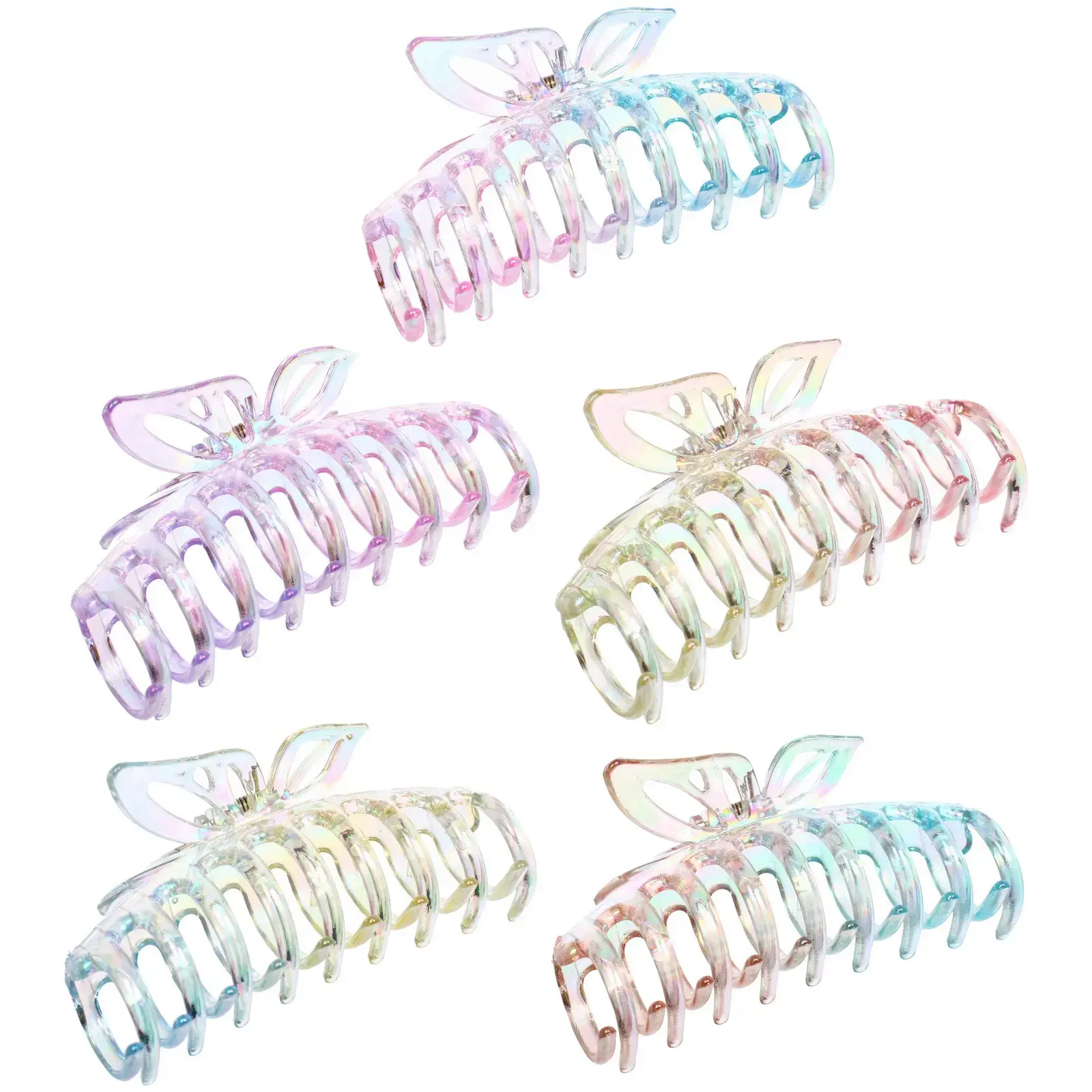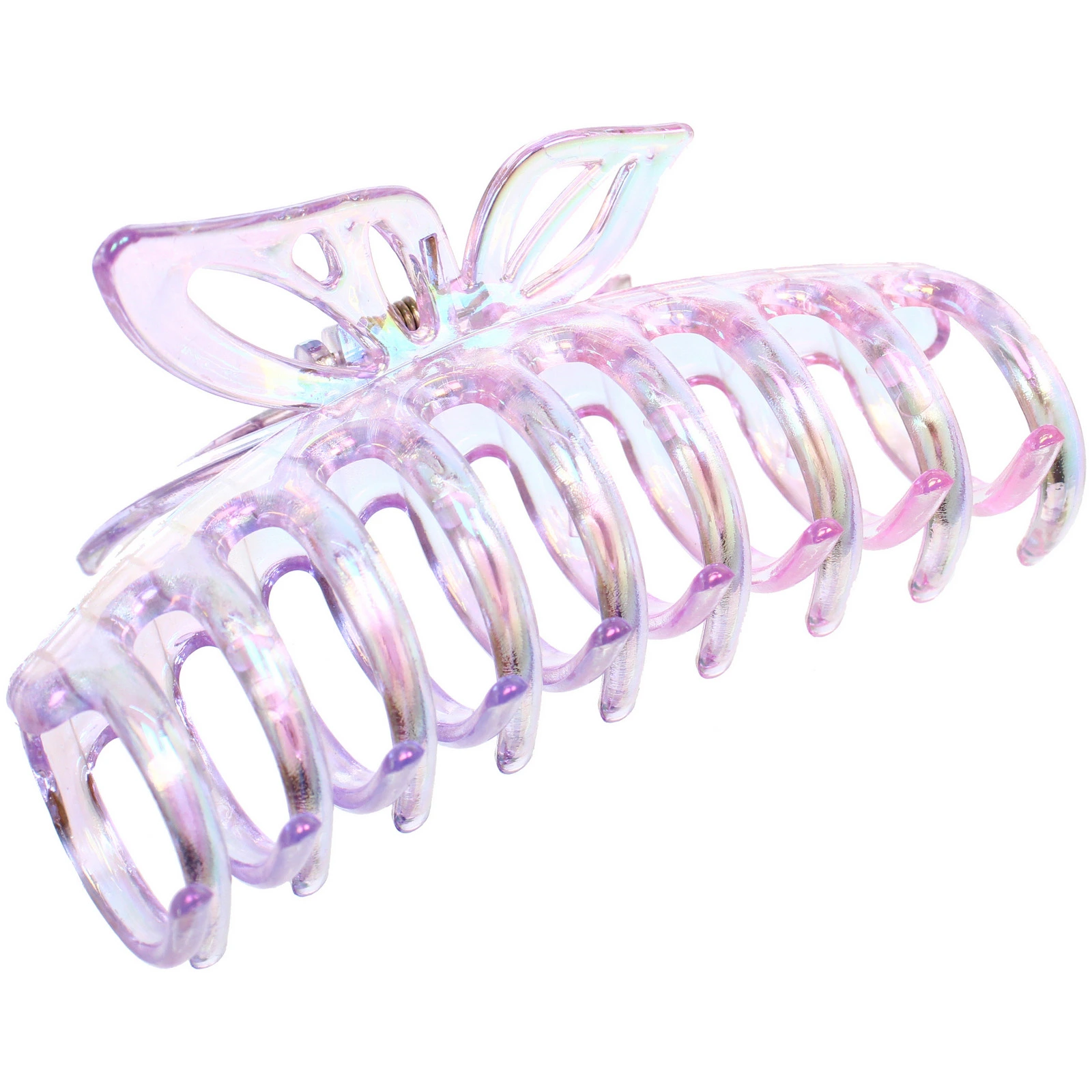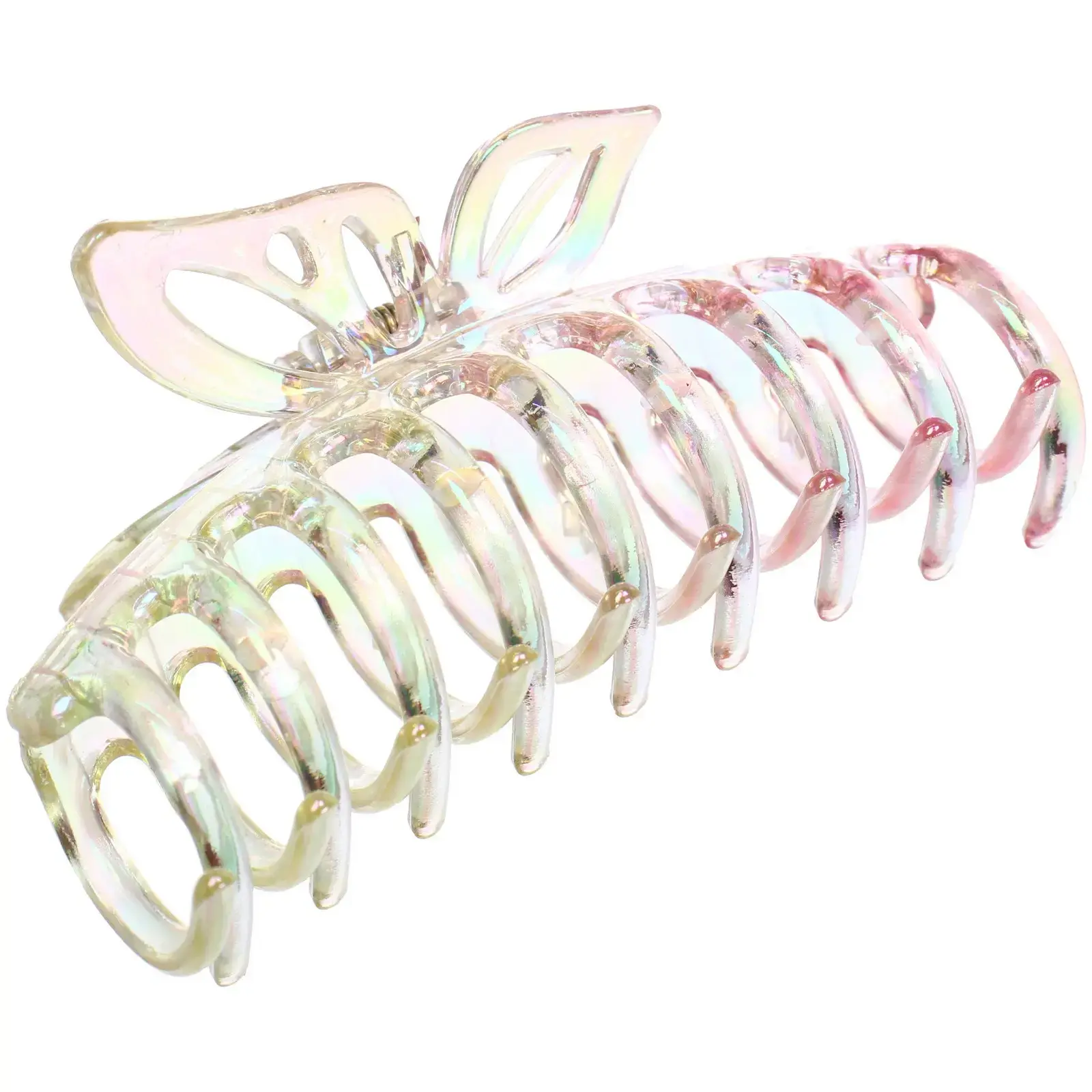 Заколка выполнена из прочного пластика, что гарантирует ее долговечность и надежность. Прозрачный материал с радужным эффектом придает изделию особую привлекательность. Вы можете выбрать один из шести ярких цветов, чтобы подчеркнуть свой стиль и настроение. Заколка легко открывается и закрывается, что делает ее использование простым и удобным.