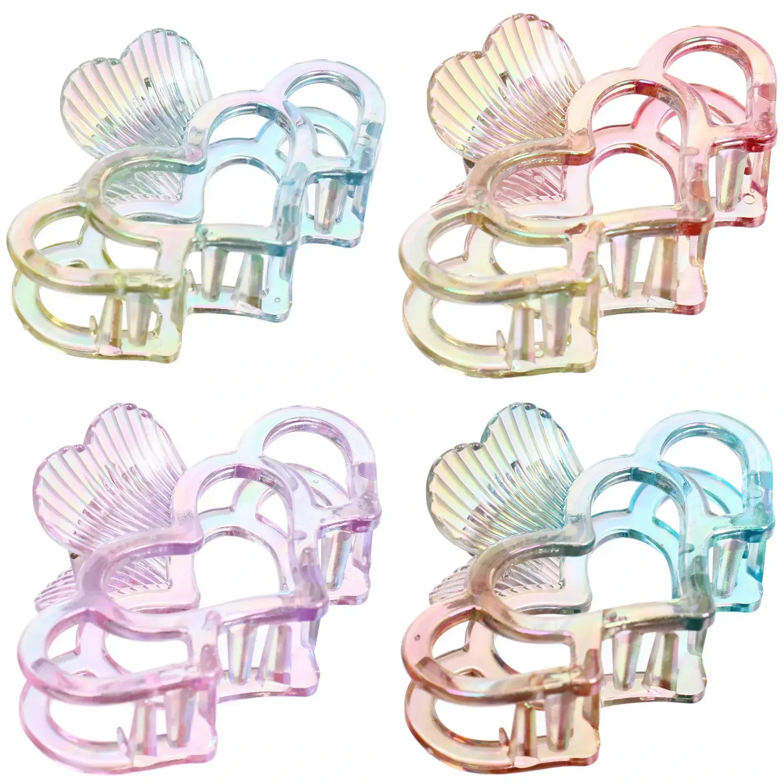 Заколка выполнена из качественного пластика, что делает ее легкой и удобной в использовании. Микс из 6 ярких цветов и форма сердечка добавляют игривости и стиля. Рифленая текстура обеспечивает надежное сцепление с волосами, предотвращая их выскальзывание. Заколка не только функциональна, но и станет стильным аксессуаром, который подчеркнет вашу индивидуальность.
