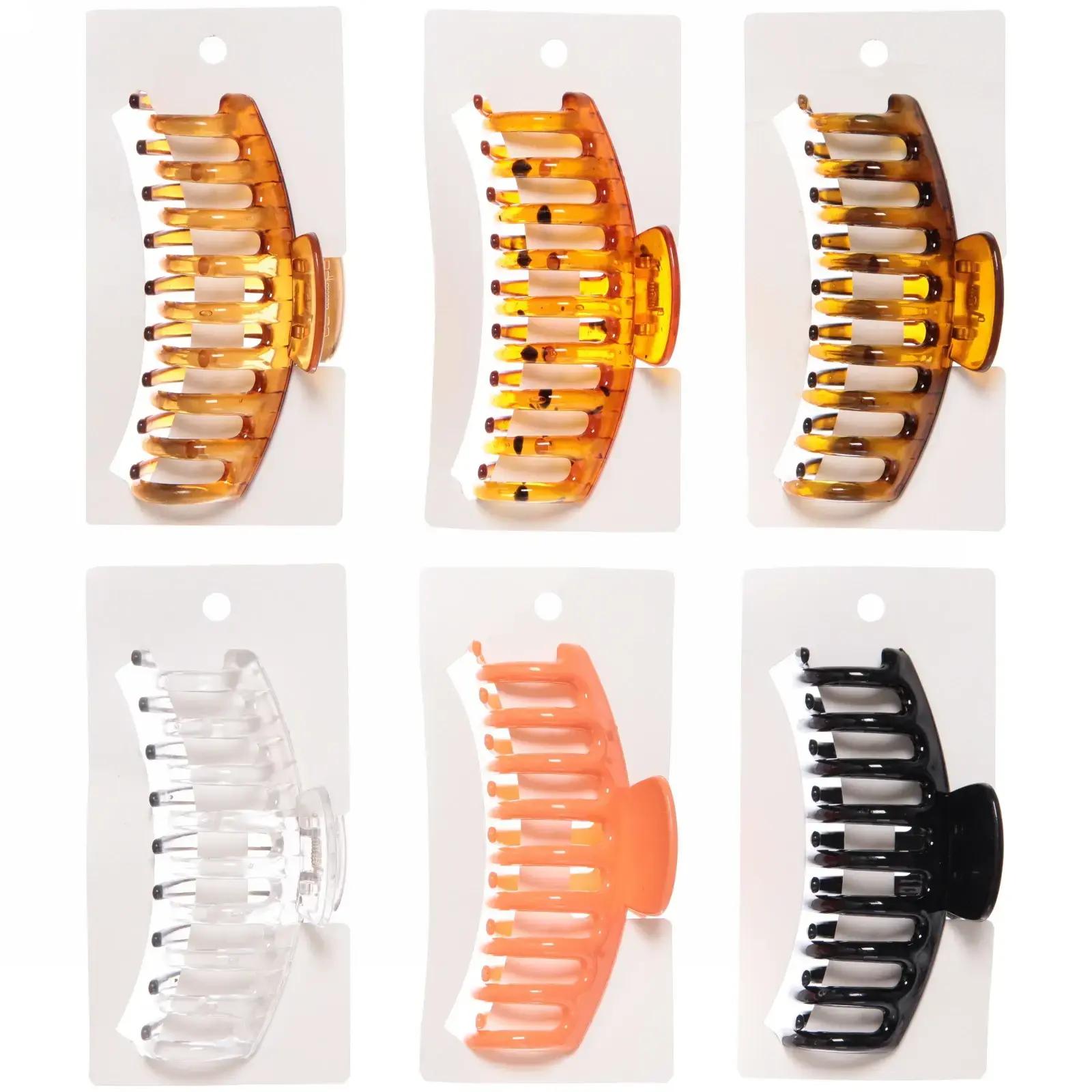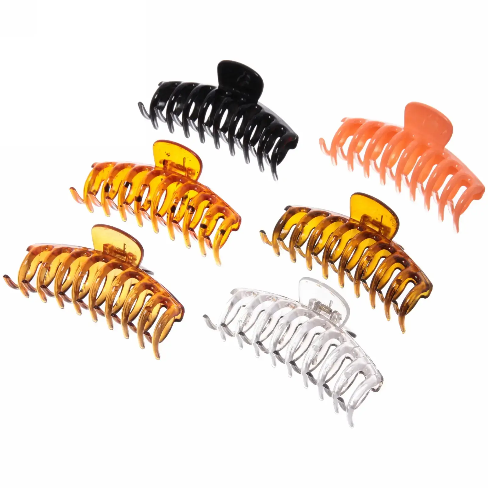 Размер заколки составляет 11х5 см, что делает ее достаточно крупной для удержания значительного объема волос. Микс из шести цветов — черный, оранжевый, два оттенка коричневого и прозрачный — позволяет вам экспериментировать с образами. Заколка подходит для всех типов волос и станет отличным дополнением к вашему арсеналу аксессуаров для укладки.