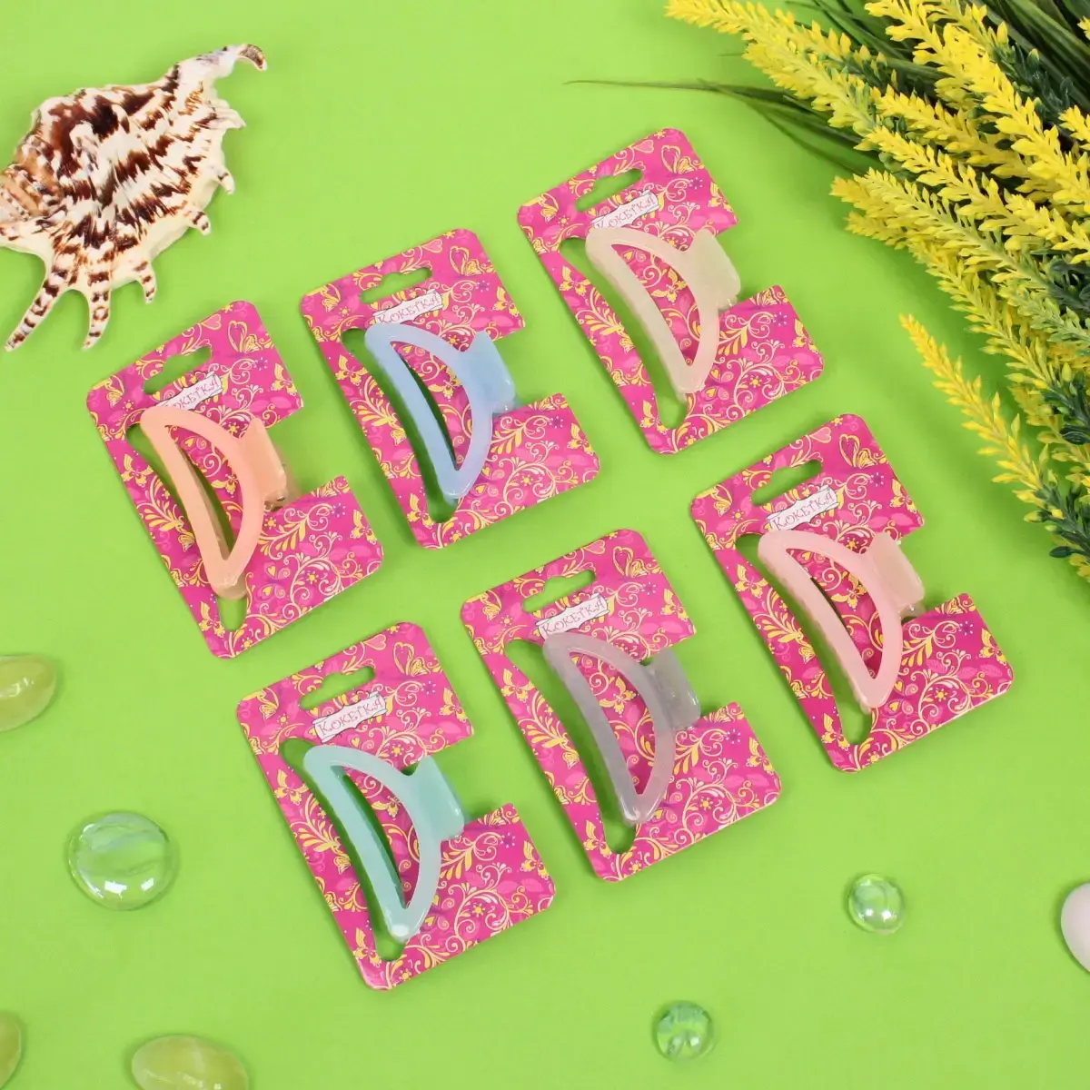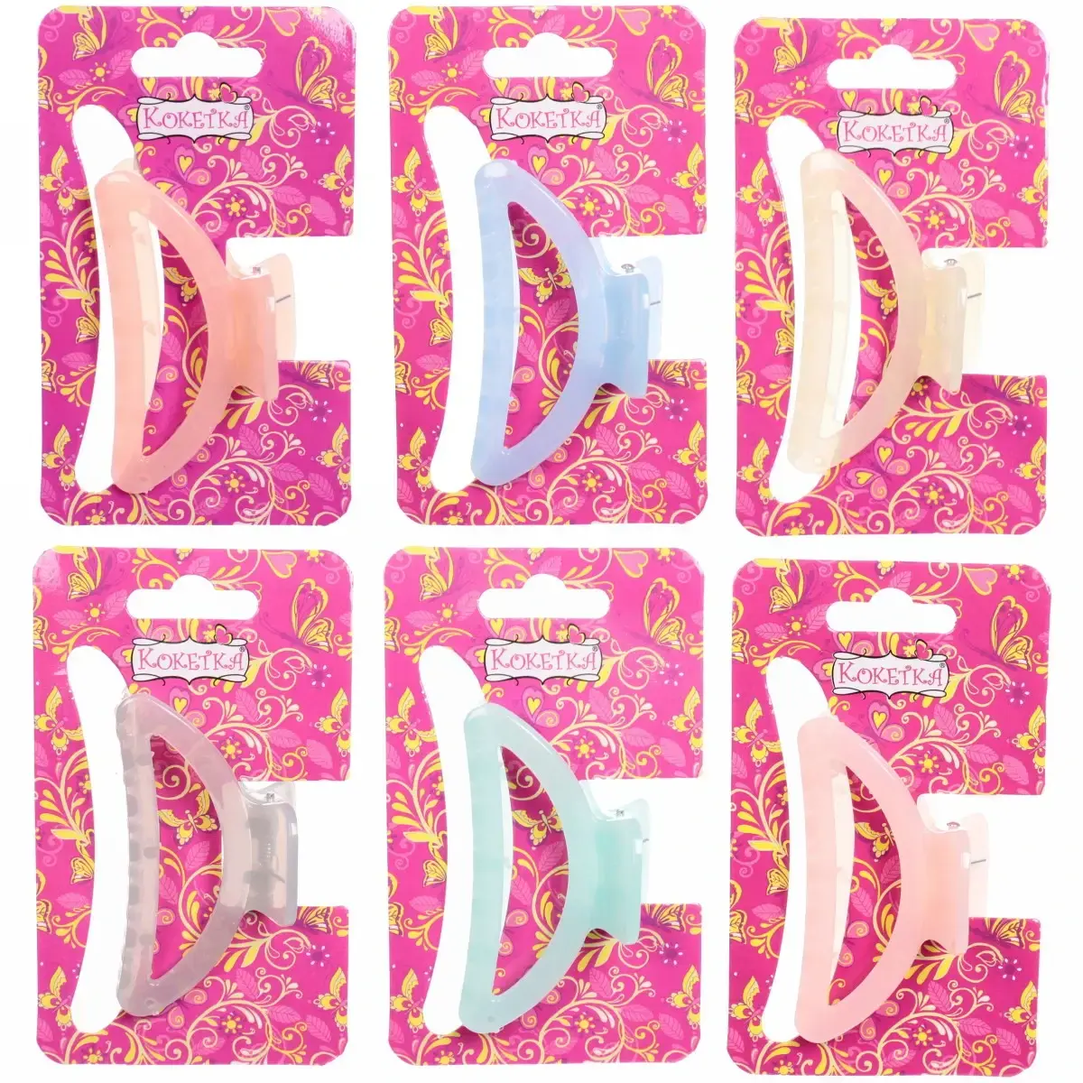 Заколка выполнена в форме трапеции и представлена в шести различных цветах: персиковом, голубом, прозрачном, бежевом, зеленоватом и сером. Это позволяет вам легко комбинировать её с любыми нарядами и стилями. Заколка-краб станет незаменимым аксессуаром в вашем арсенале для укладки волос.
