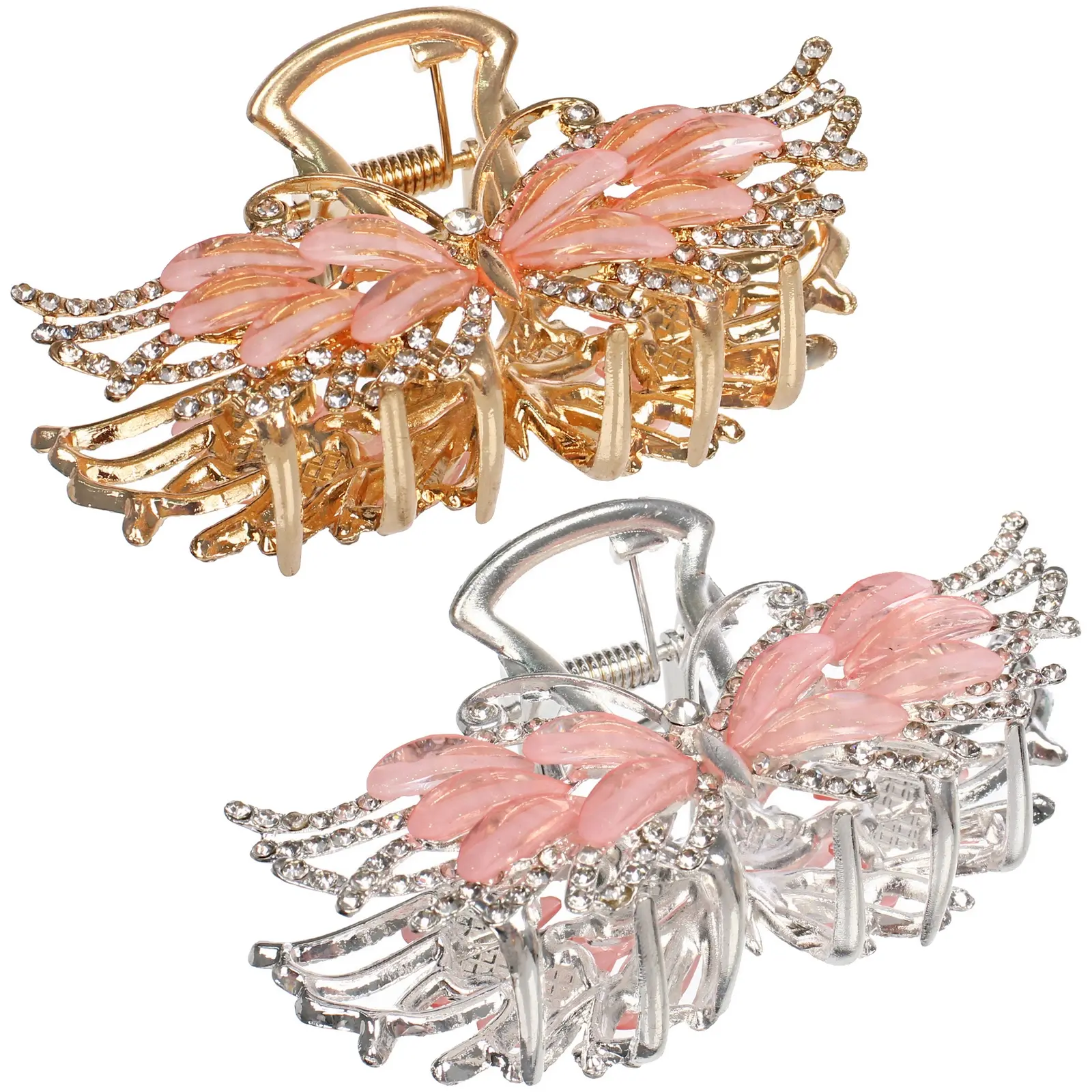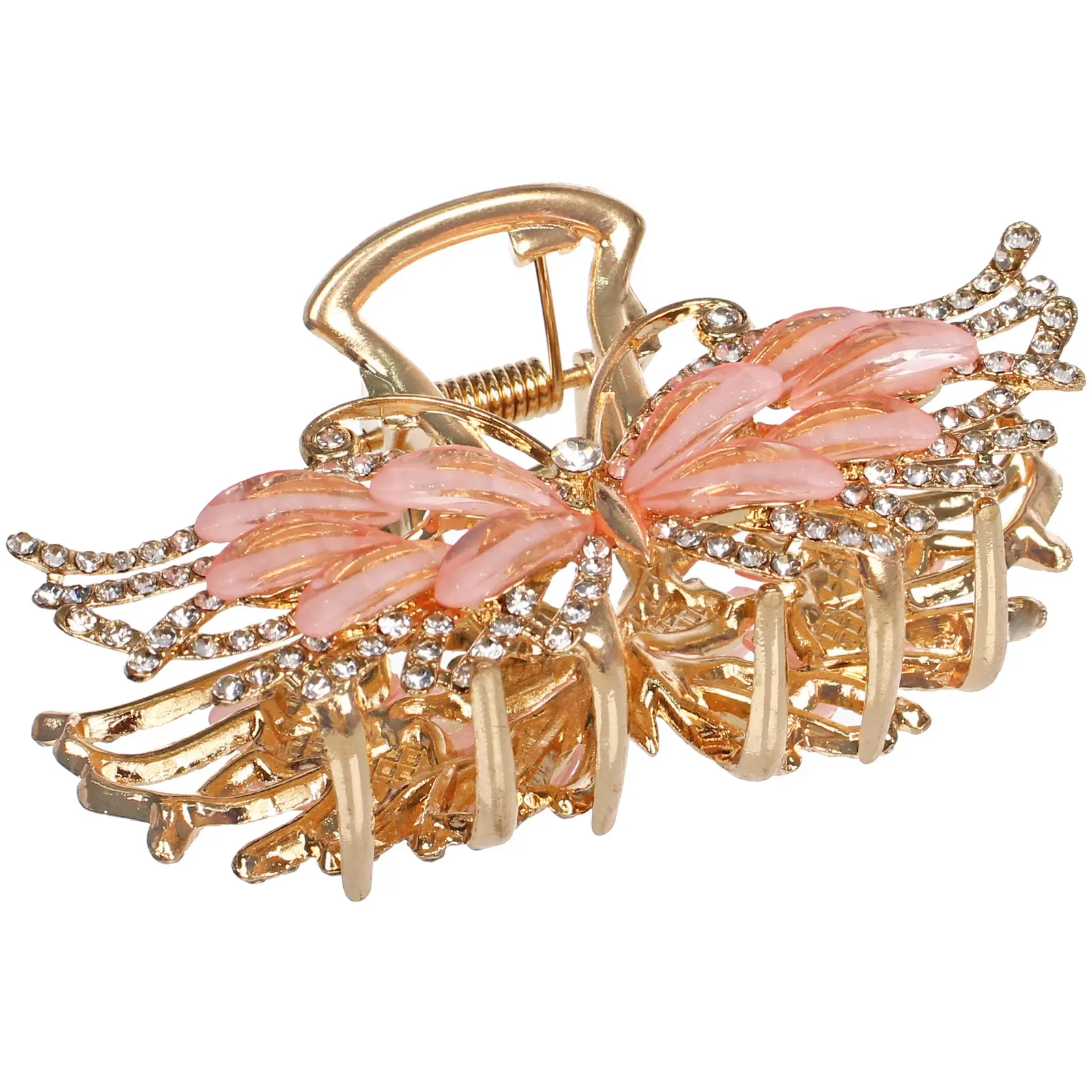 Эта заколка-краб с изящным декором в виде бабочки станет вашим незаменимым помощником для создания аккуратных и романтичных укладок. Надёжный пружинный механизм обеспечивает крепкий захват волос, а элегантный дизайн с розовыми вставками и сияющими стразами добавит образу лёгкости и блеска.
