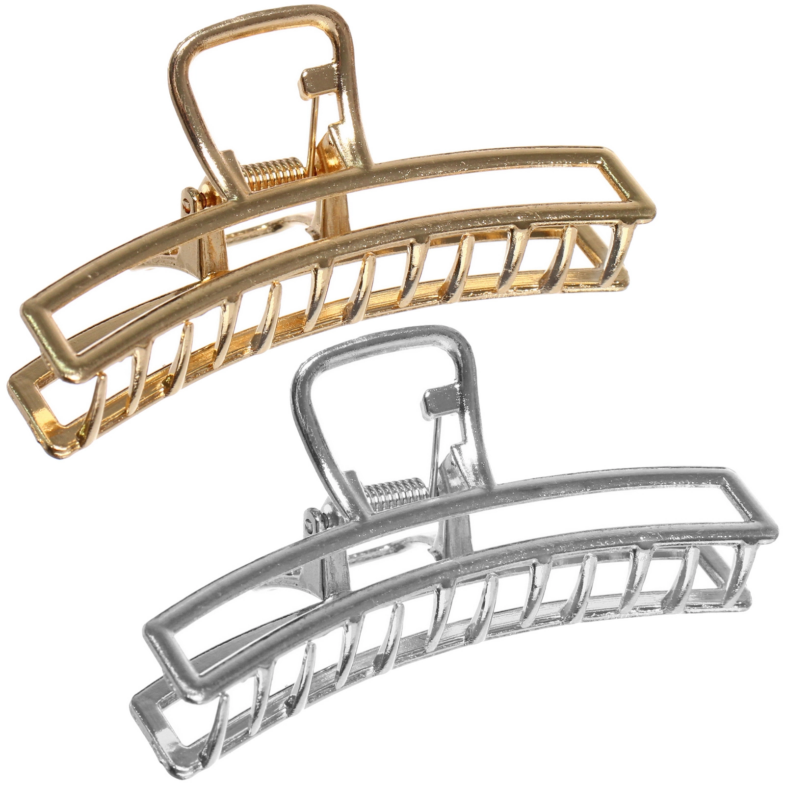 Выбирая эту заколку, вы получаете не только стильный аксессуар, но и практичное решение для повседневного использования. Металлическая конструкция обеспечивает долговечность, а блестящая отделка добавляет изысканности. Два цвета — серебро и золото — позволяют легко сочетать заколку с любым нарядом.