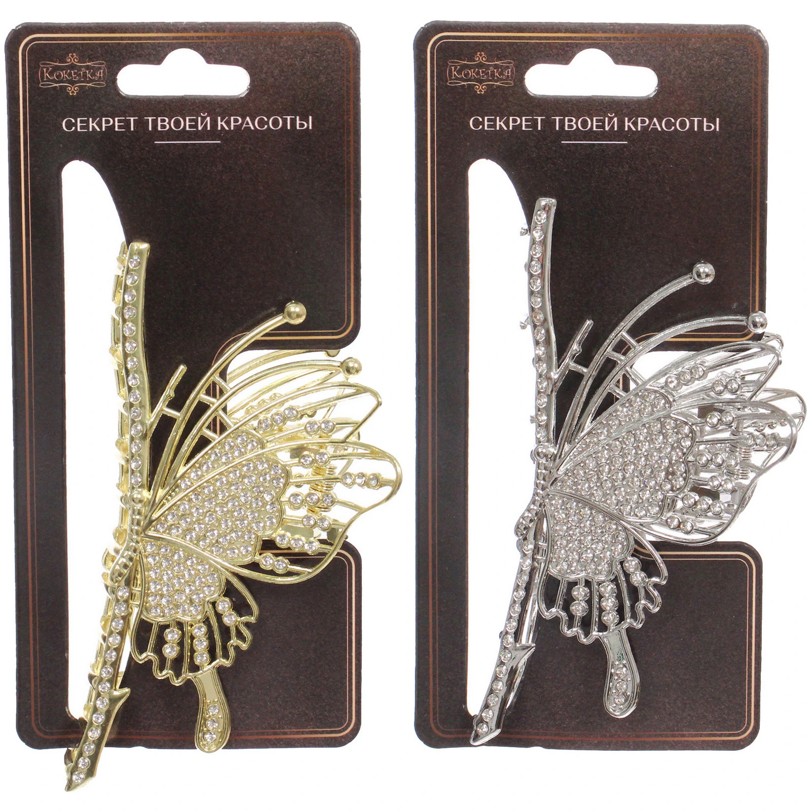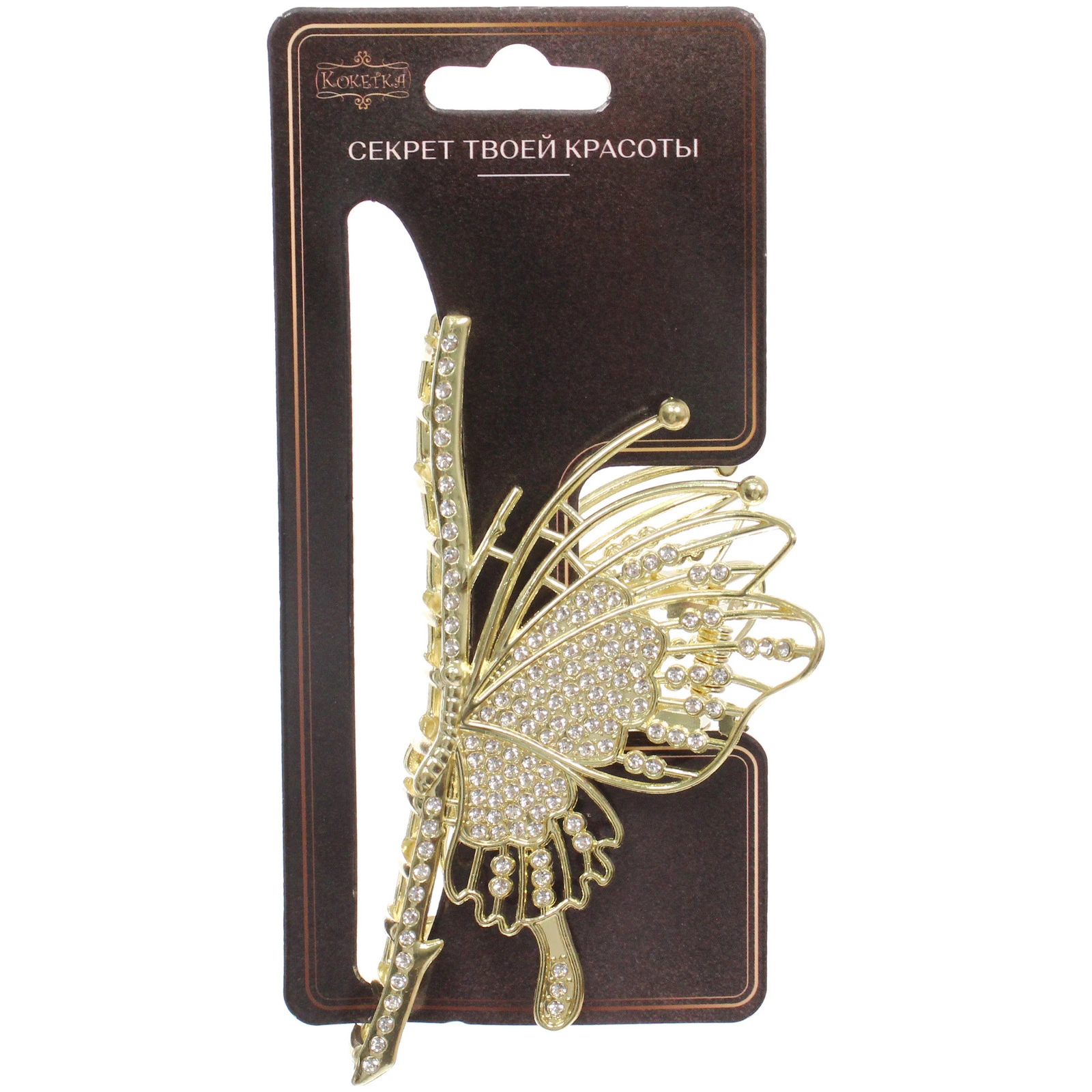 Заколка-краб для волос «PORTOFINO», бабочка, цвет золото и хром, 10*5см