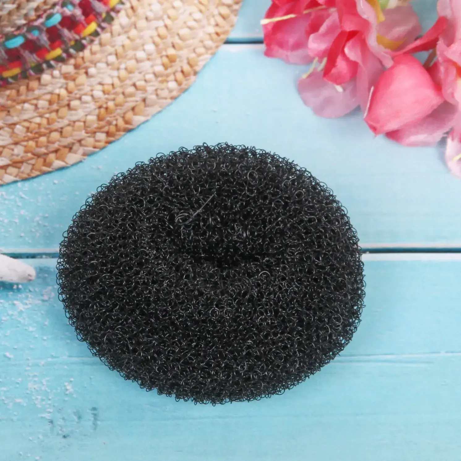 Заколка-валик для создания пучка, черный, d-5,5см, сетка, надежная фиксация, пластик