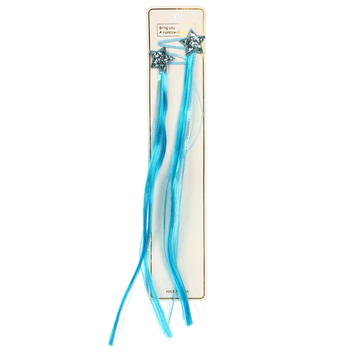 Заколки для волос 2 шт с блестящими звездами, пластик, длина 30 см, голубой/синий