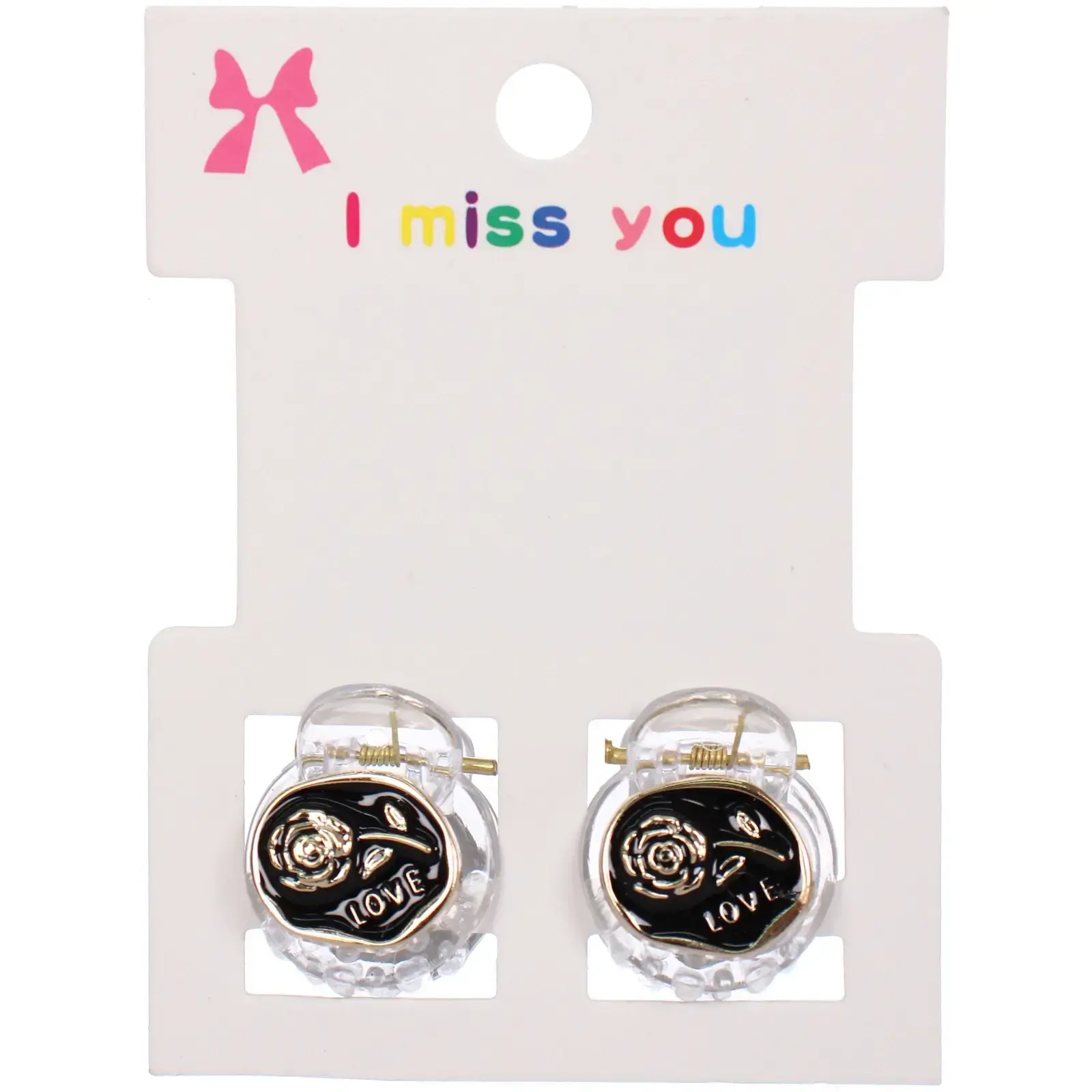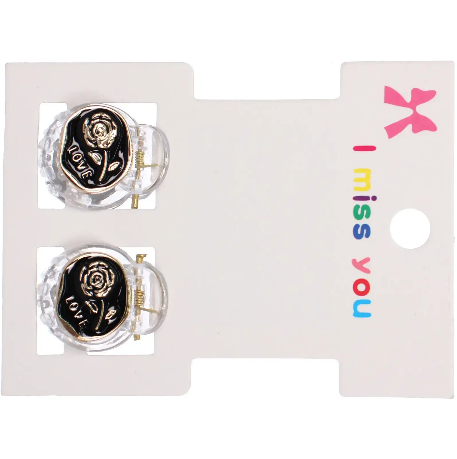 Серьги «ТАРТИ ТАН» с розой, черные с золотым, металл/пластик, рисунок LOVE, 1 пара, 2см