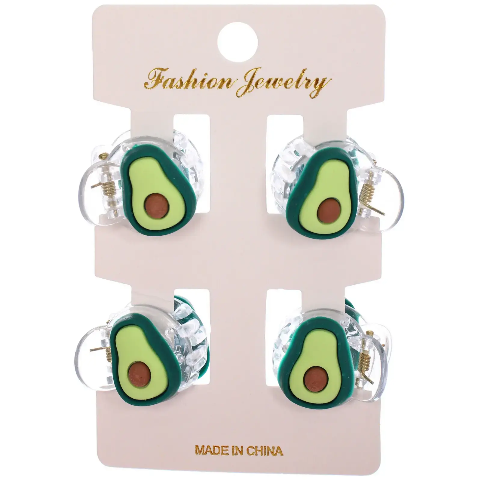 В комплект входят четыре заколки, каждая из которых имеет размер 2 см. Заколки выполнены из металла и пластика, что обеспечивает их долговечность и надежность. Цвета заколок: зеленый, светло-зеленый и коричневый, имитирующие натуральный авокадо. Упаковка выглядит аккуратно и подходит для розничной продажи, что делает их отличным подарком для девочек.